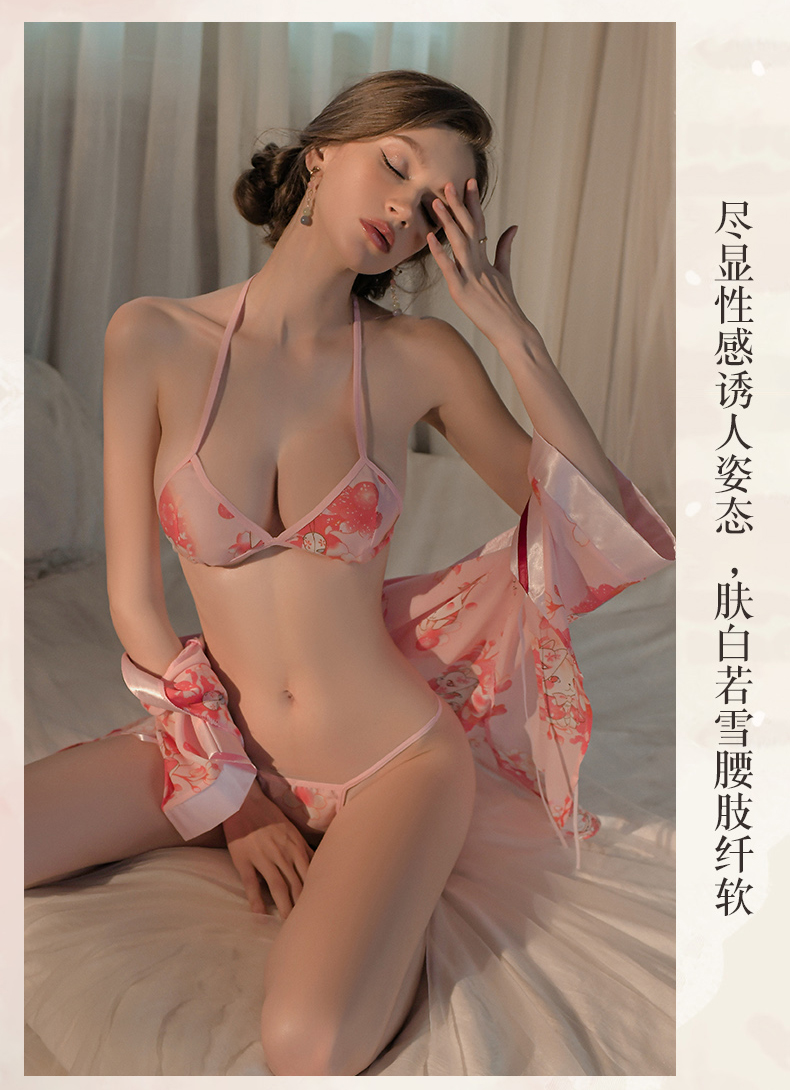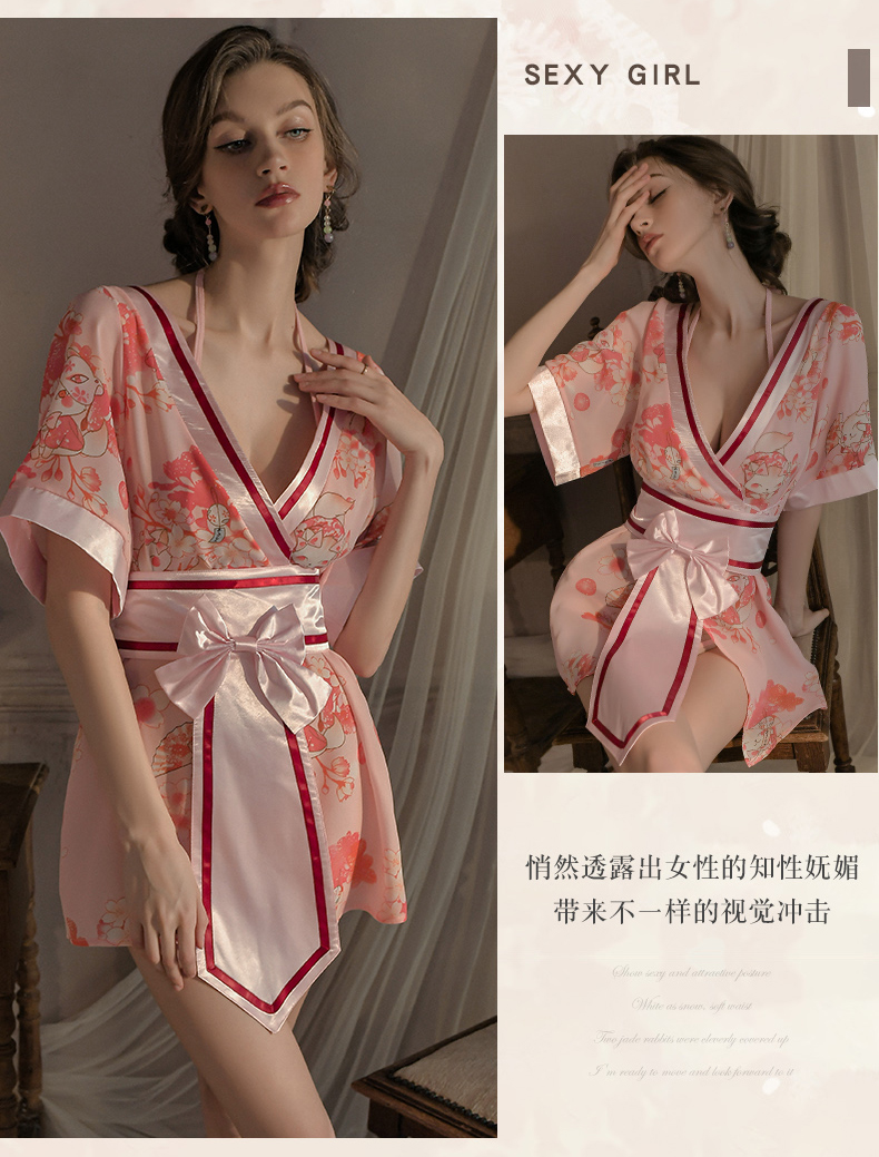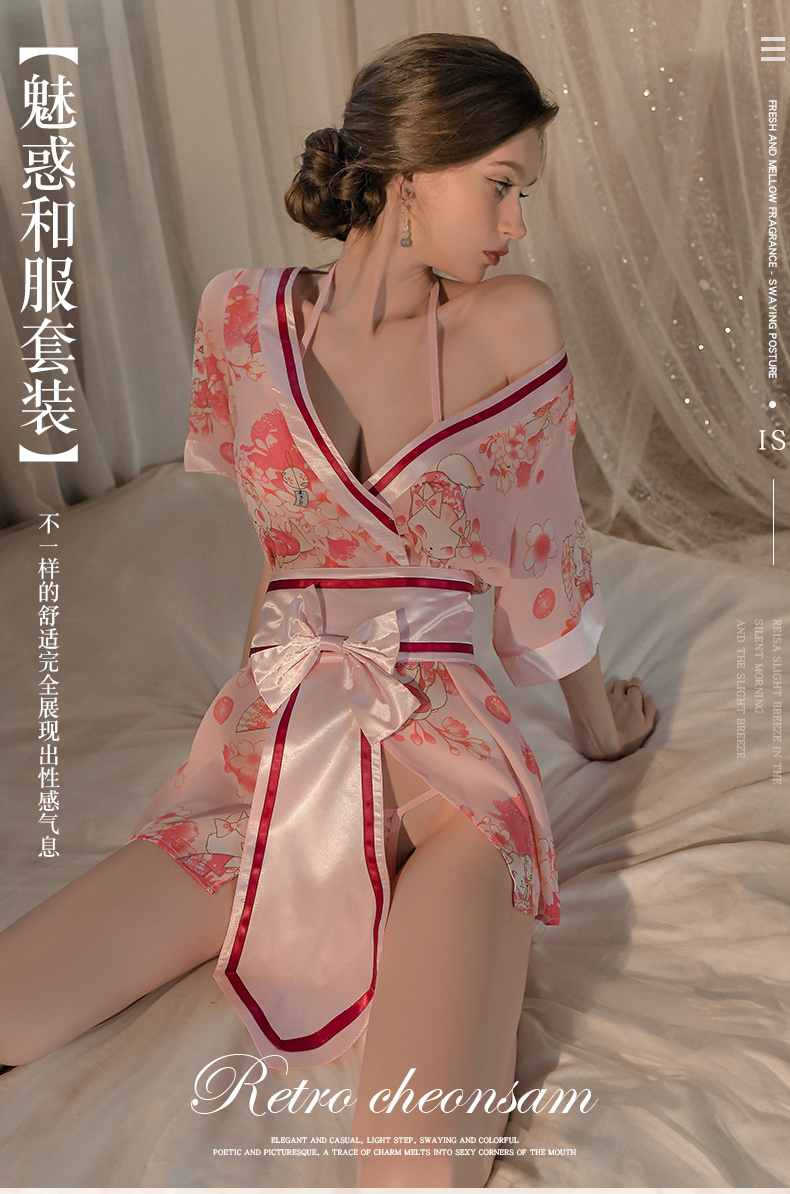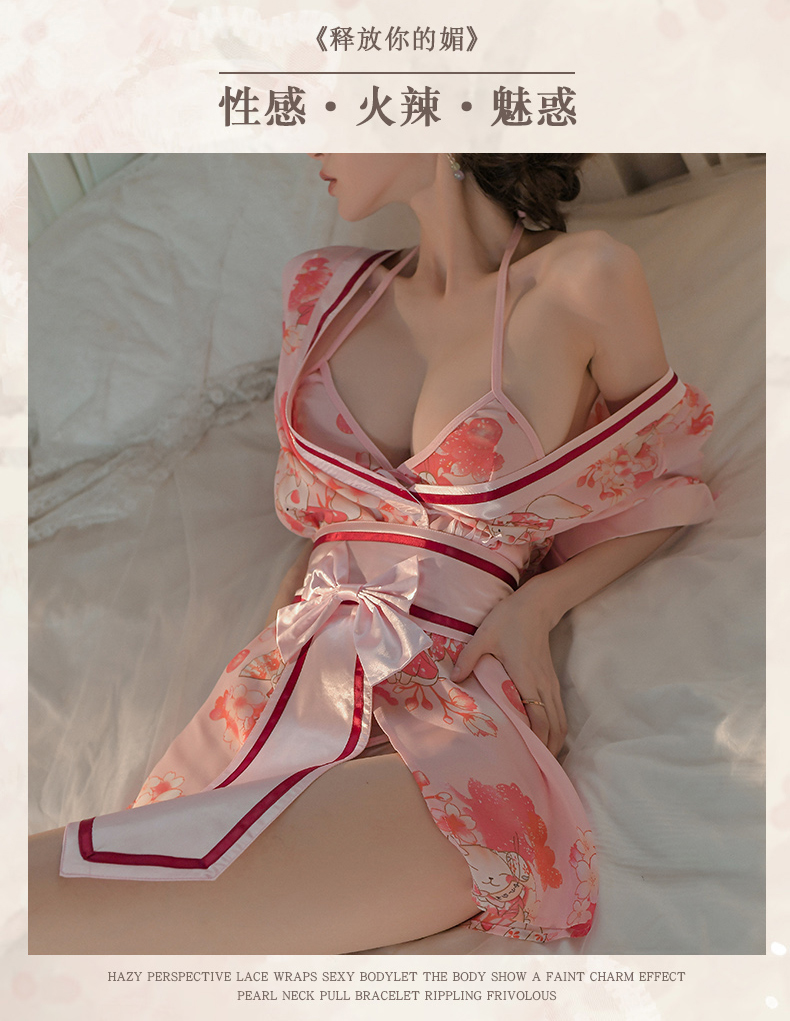 【性感制服】魅惑和服套装 外套+腰封+文胸+T裤 纯欲诱惑性感甜美情趣内衣制服睡裙睡衣6909