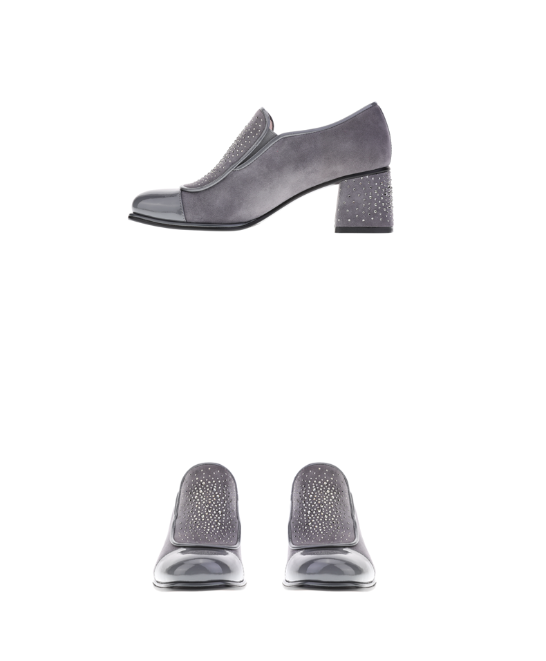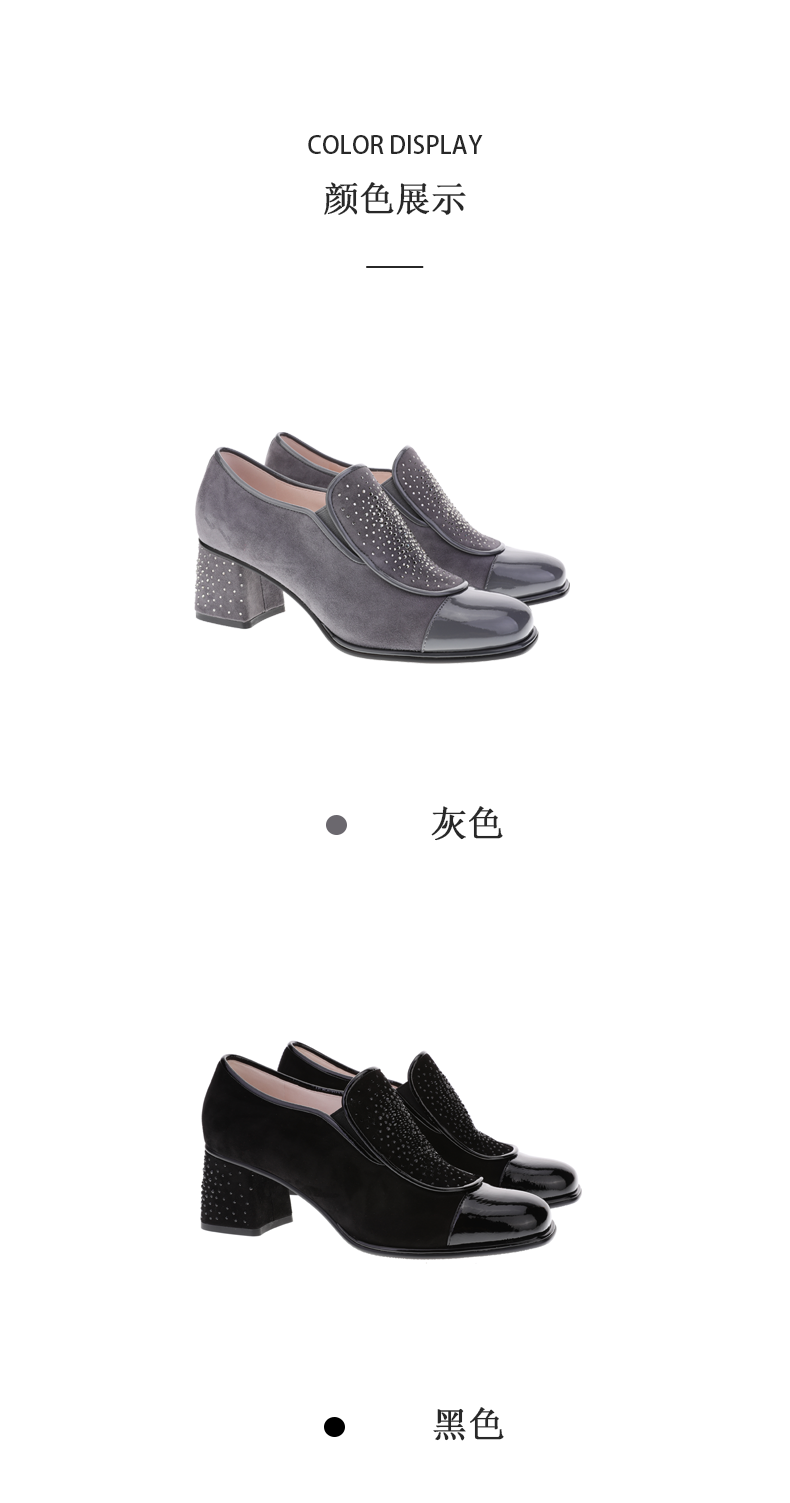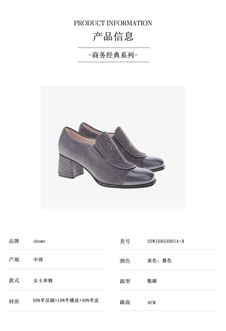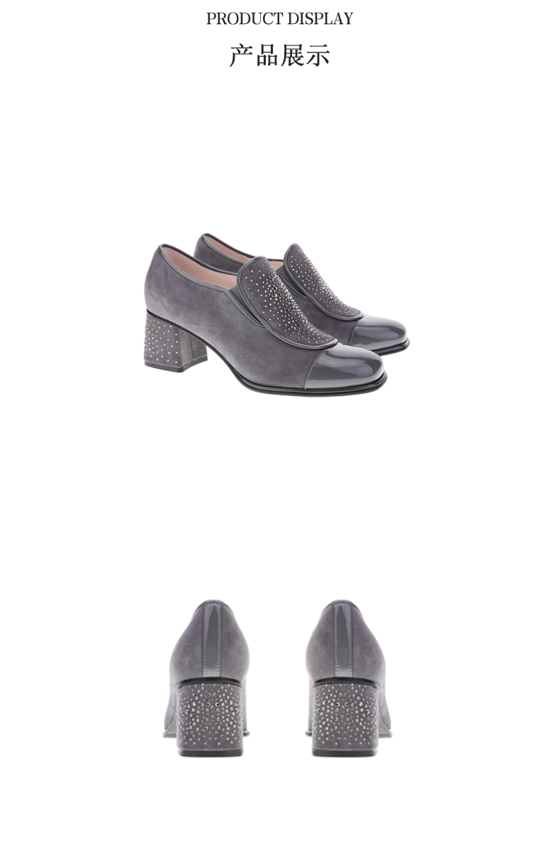 sheme方头高跟乐福鞋水钻装饰女士深口鞋商务经典可定制