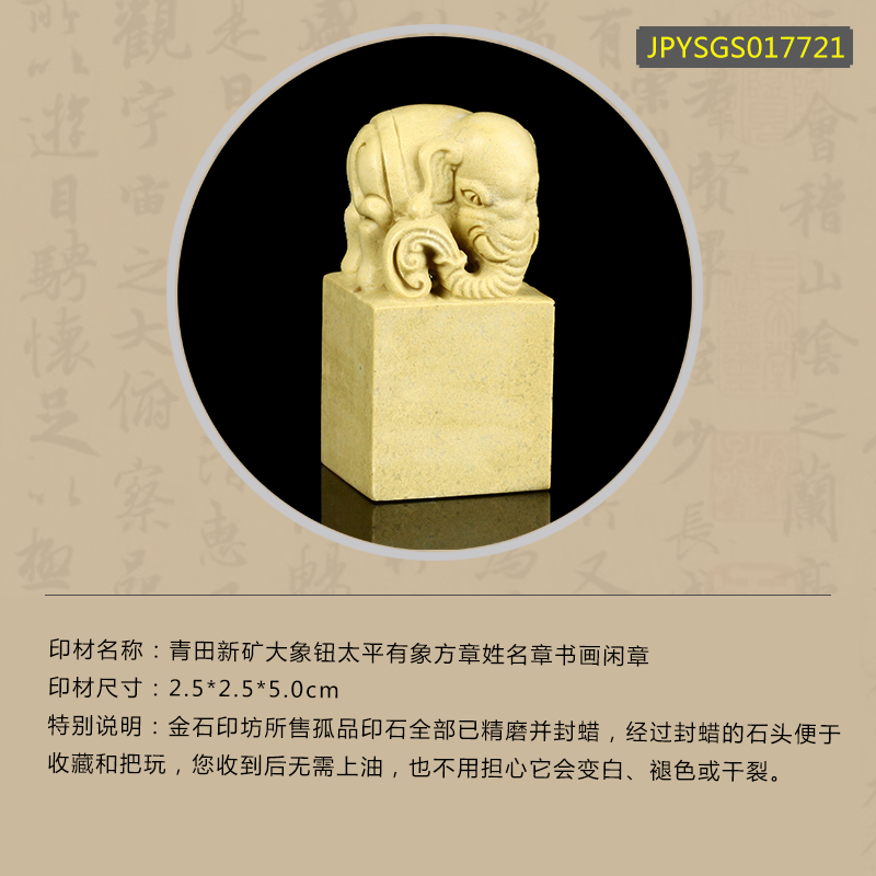 孤品17721青田新矿大象钮太平有象方章姓名章书画闲章-2.5*2.5*5.0cm