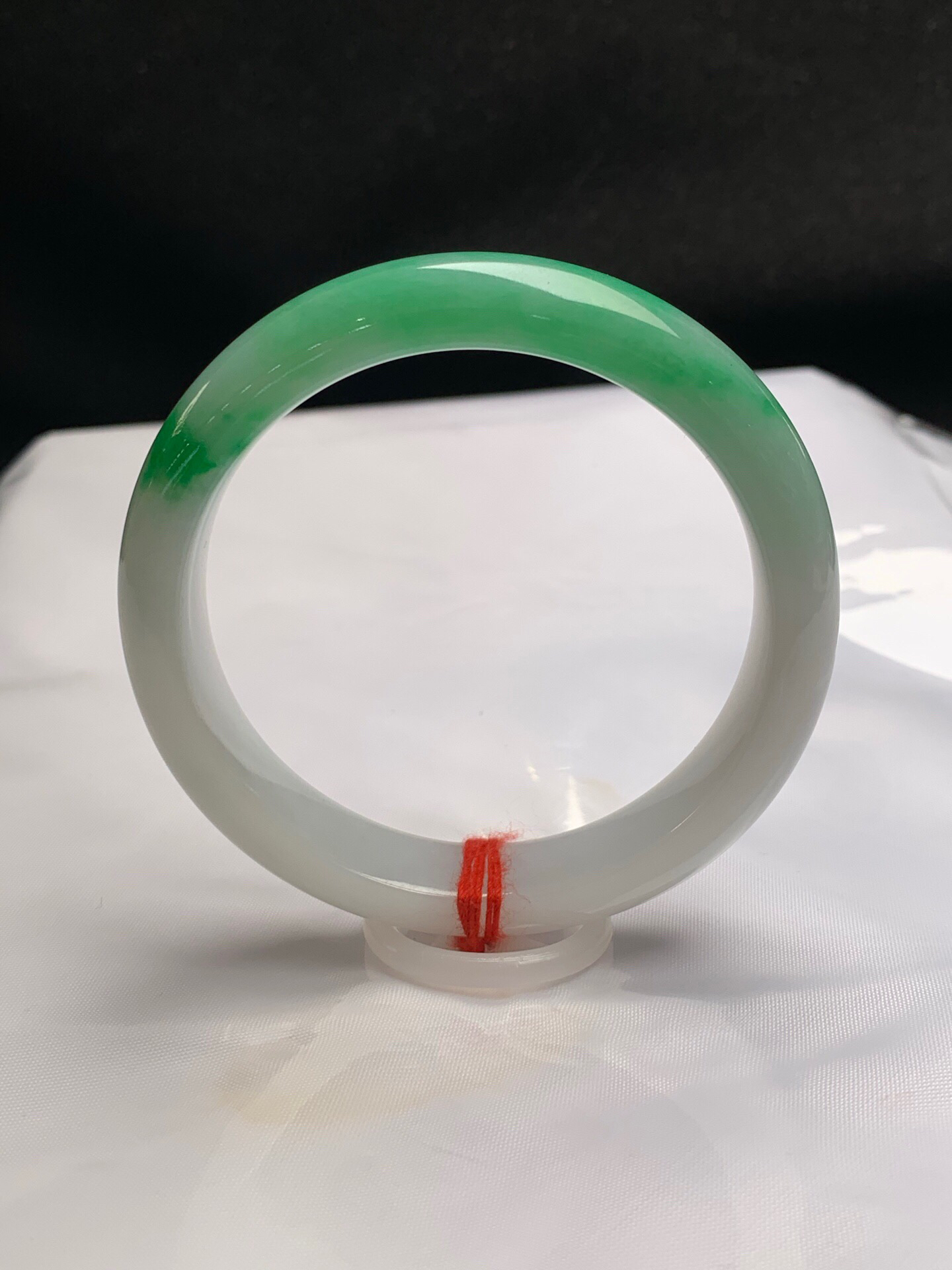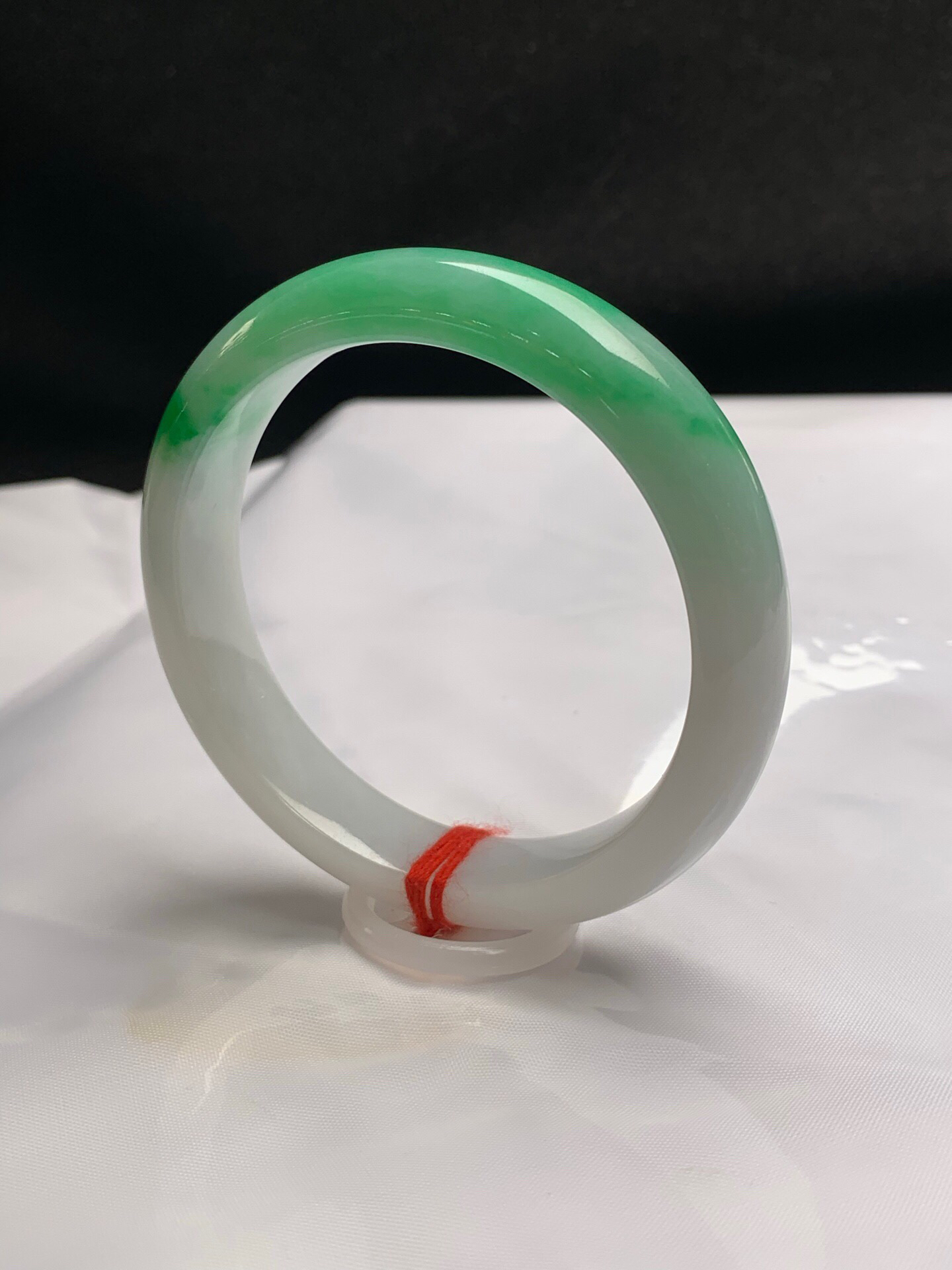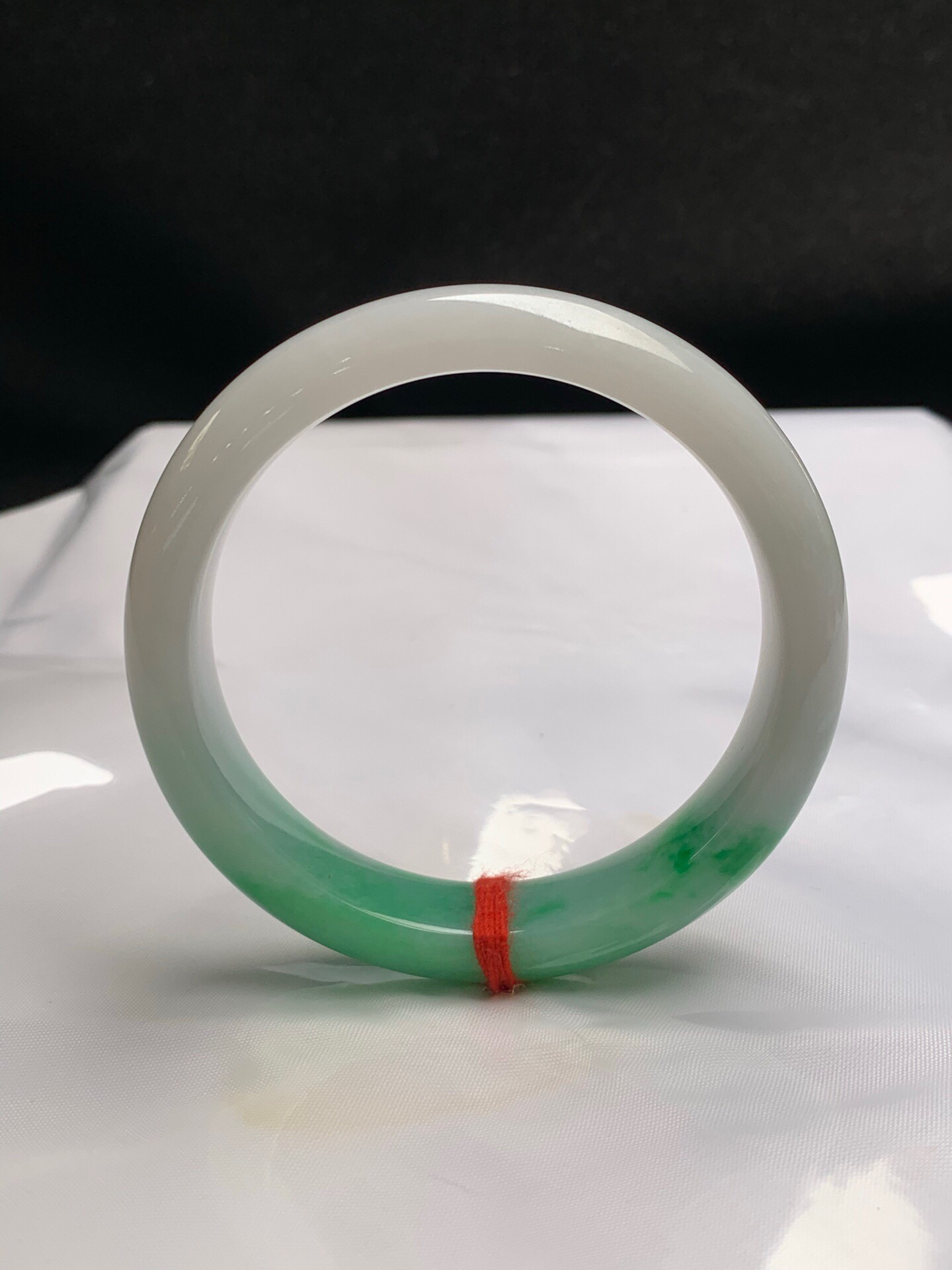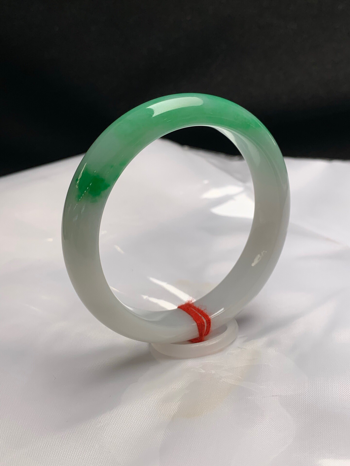 620406,56.7圈口,飘绿正圈平安镯,白底飘一截绿,色阳,底子细腻