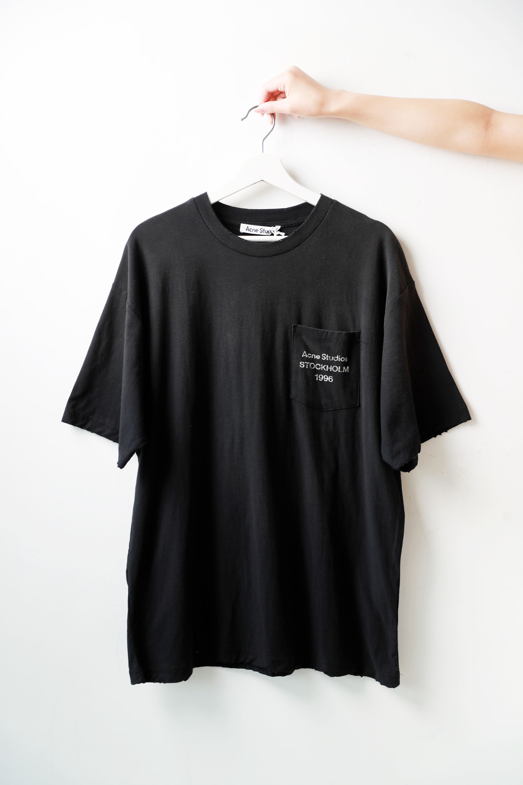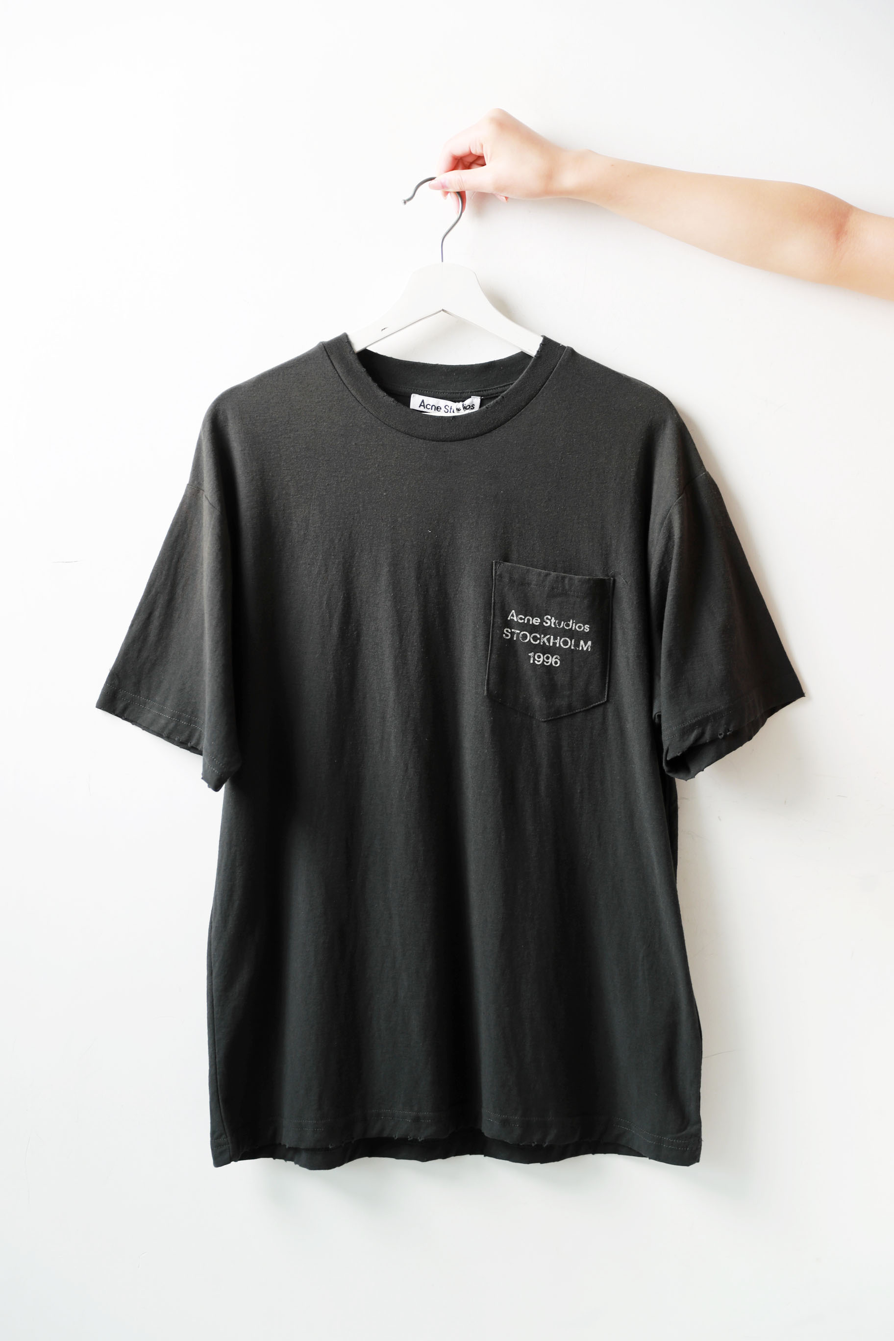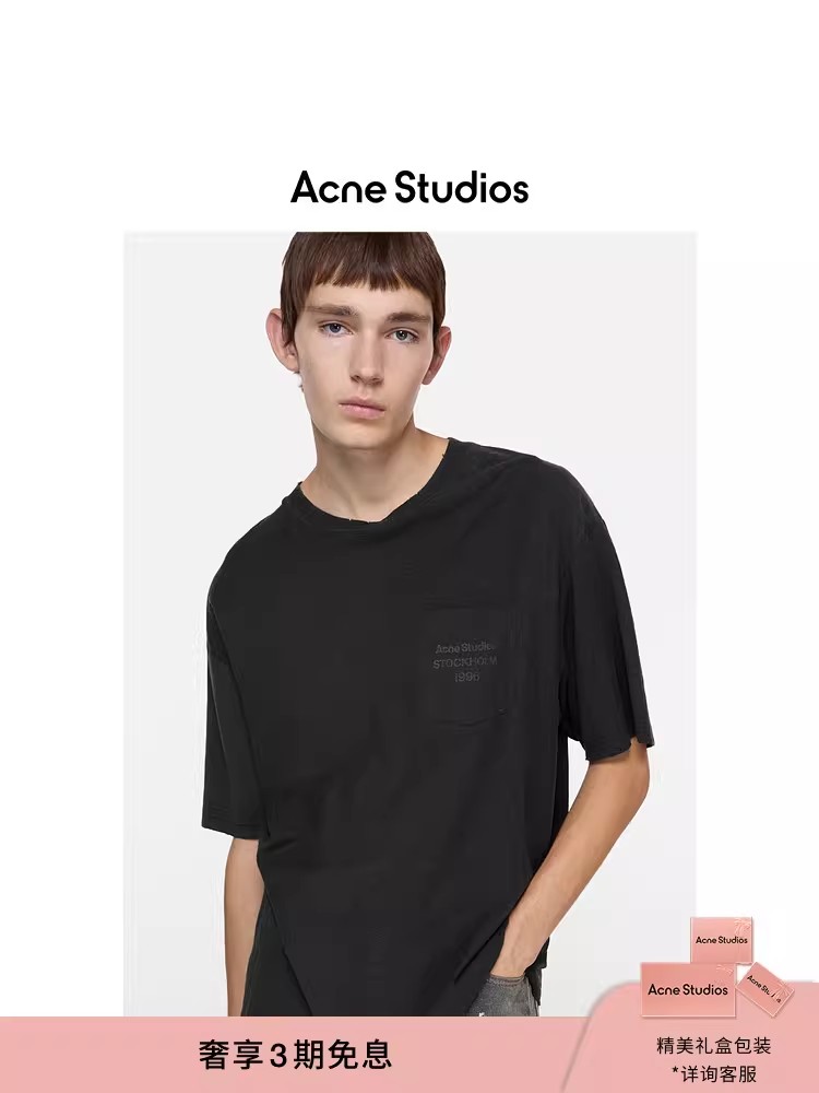 字母口袋tee,水洗做旧工艺。Oversize宽松基础款情侣t恤E013158