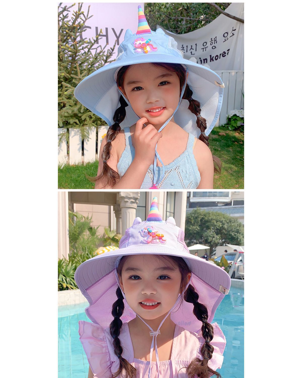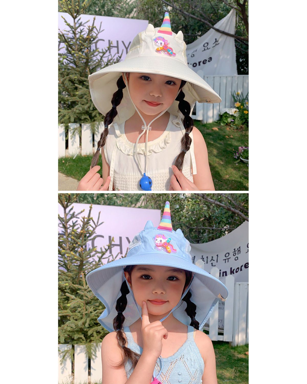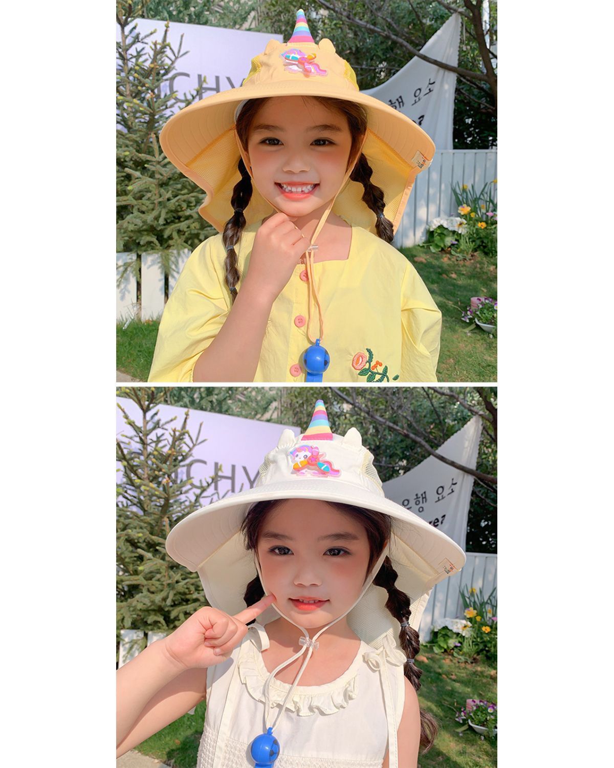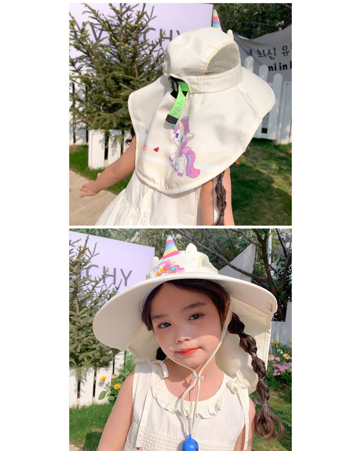 【萌趣可爱❗️儿童独角兽防晒帽】宝宝夏日颜值担当,大帽檐设计「全方位守护娇嫩肌肤」春夏季遮阳披肩帽大帽檐女孩宝宝太阳帽子L