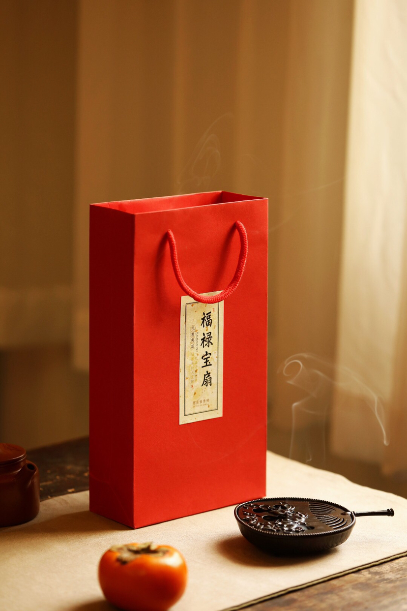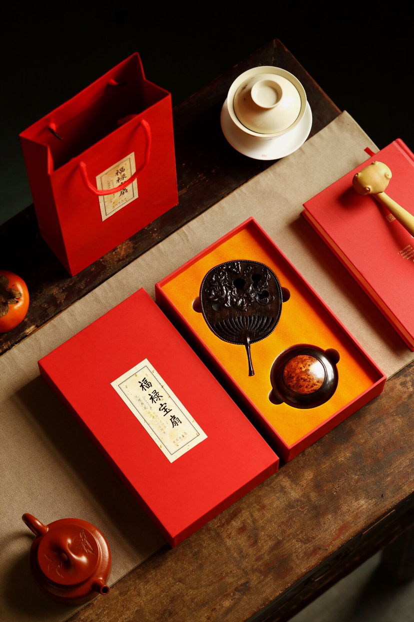 【青山特惠】紫光檀【福禄宝扇】香炉礼盒 b43