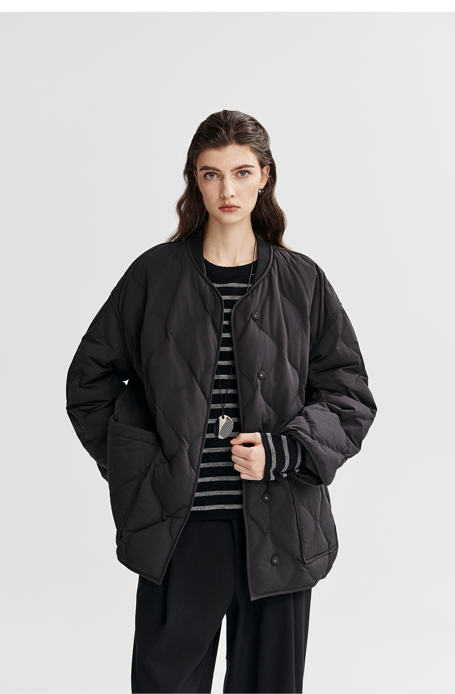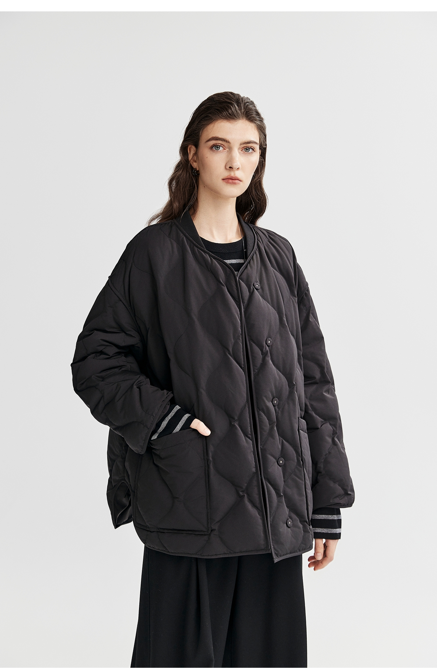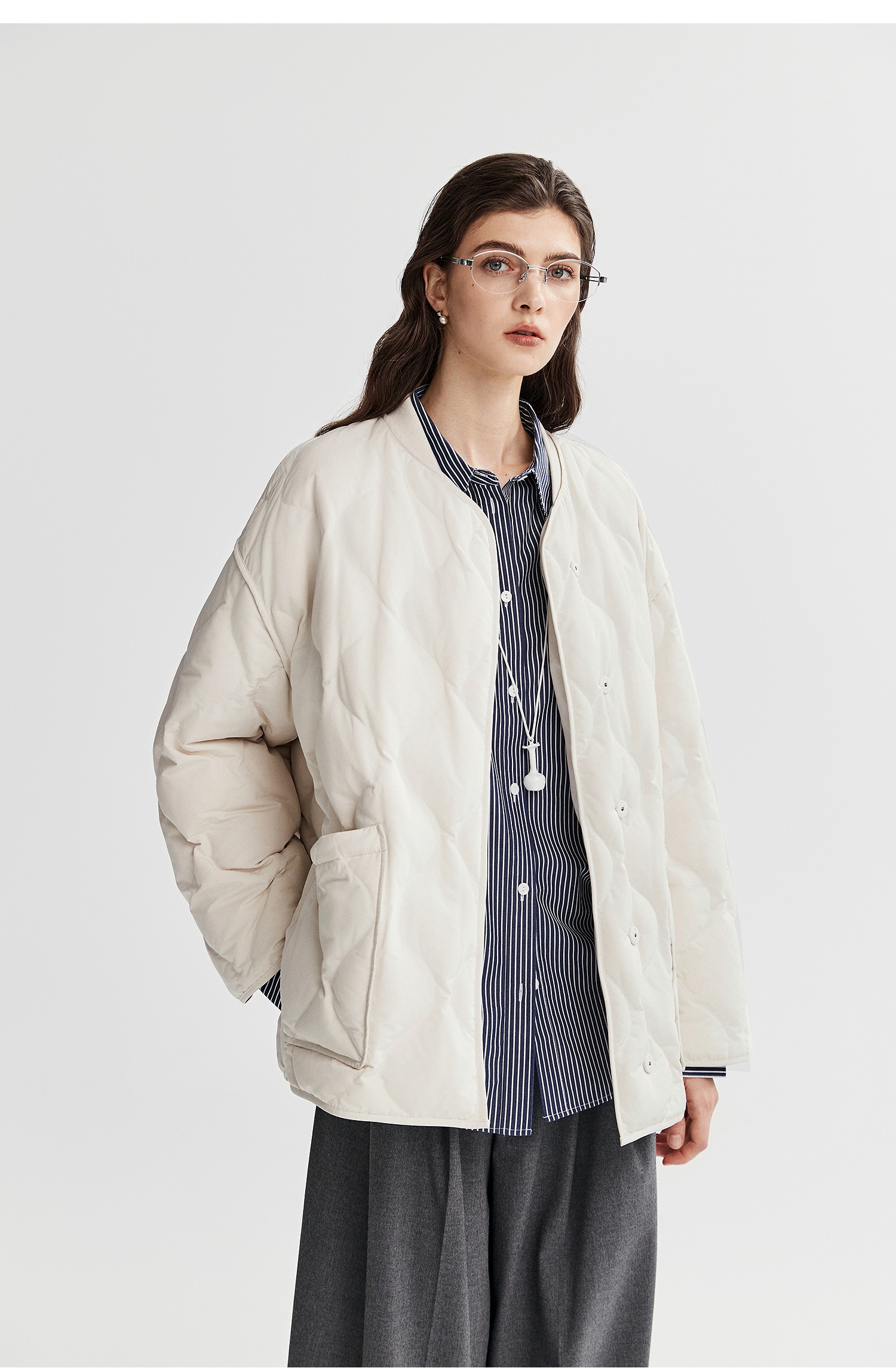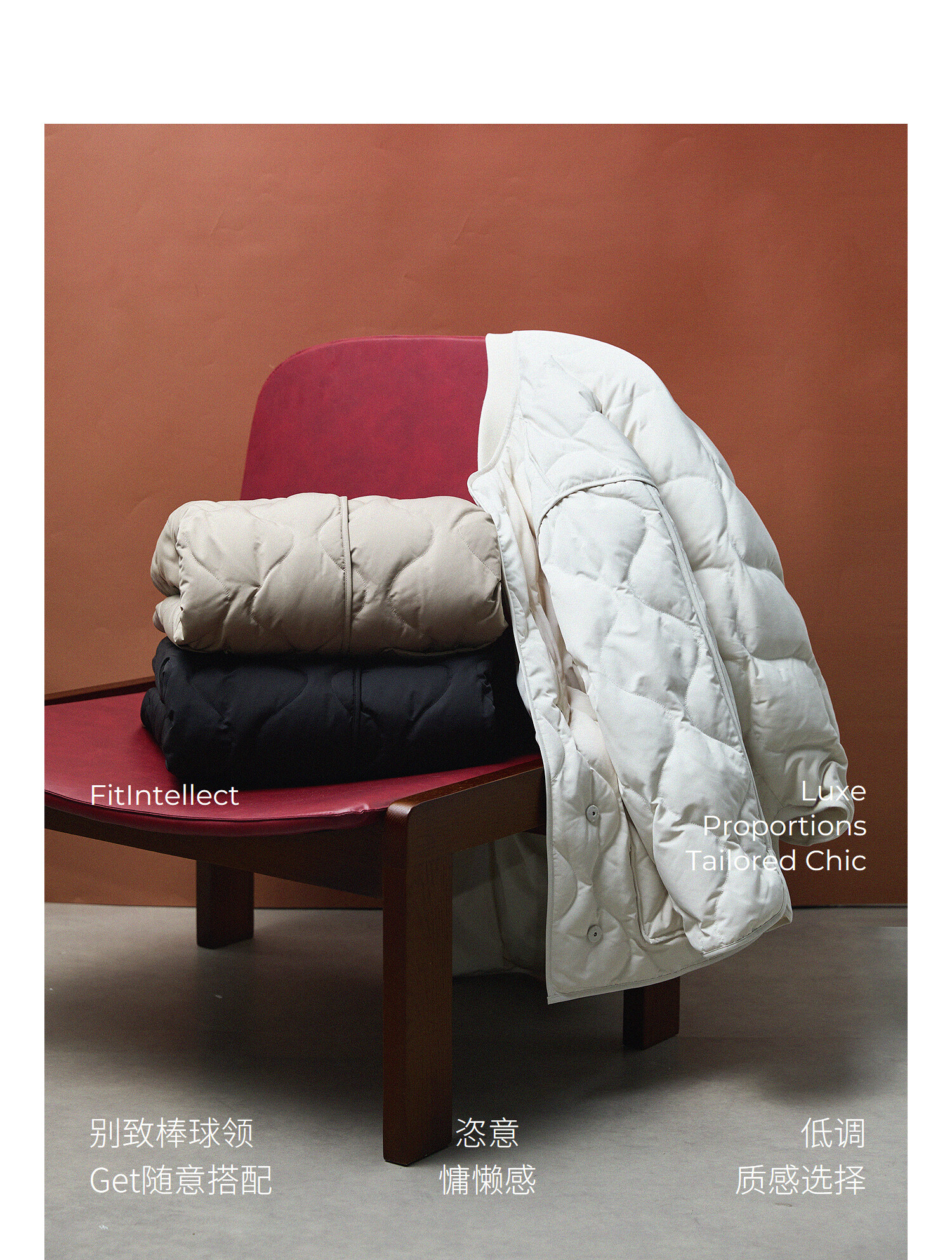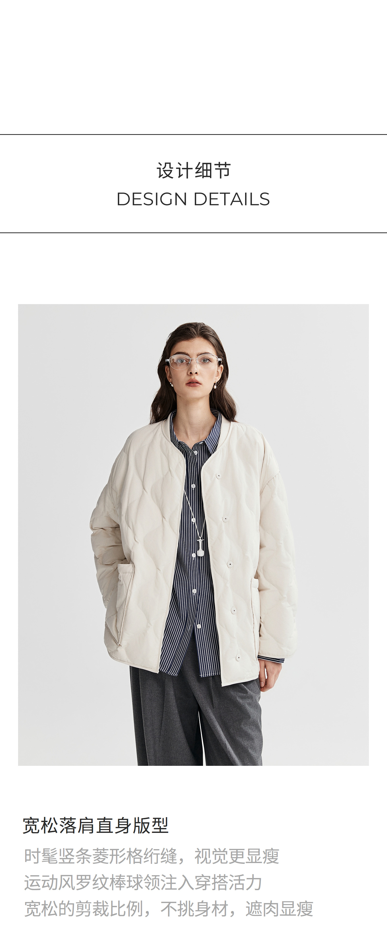 棉仓366615017-棒球领菱形格绗缝轻薄羽绒服夹克