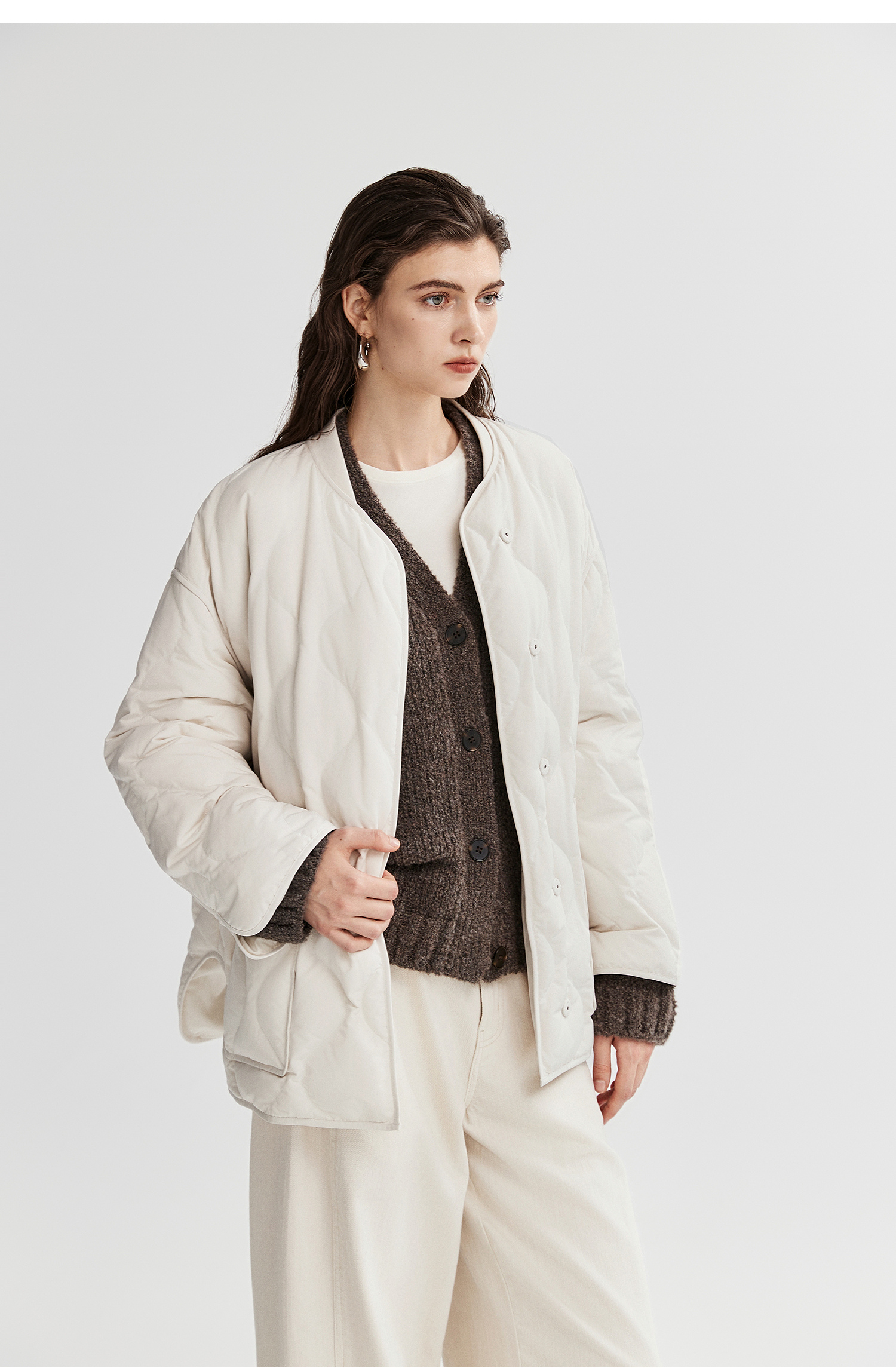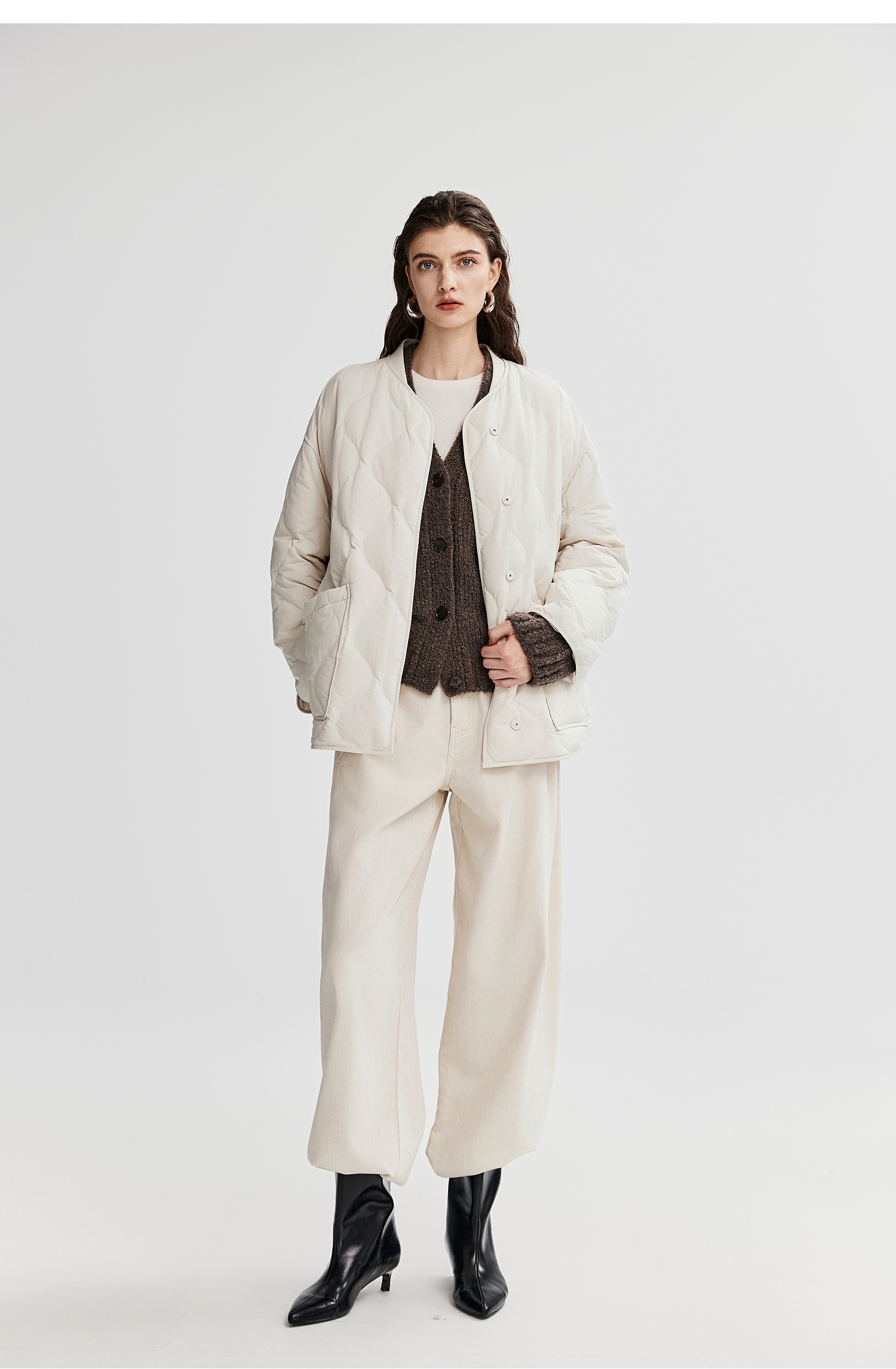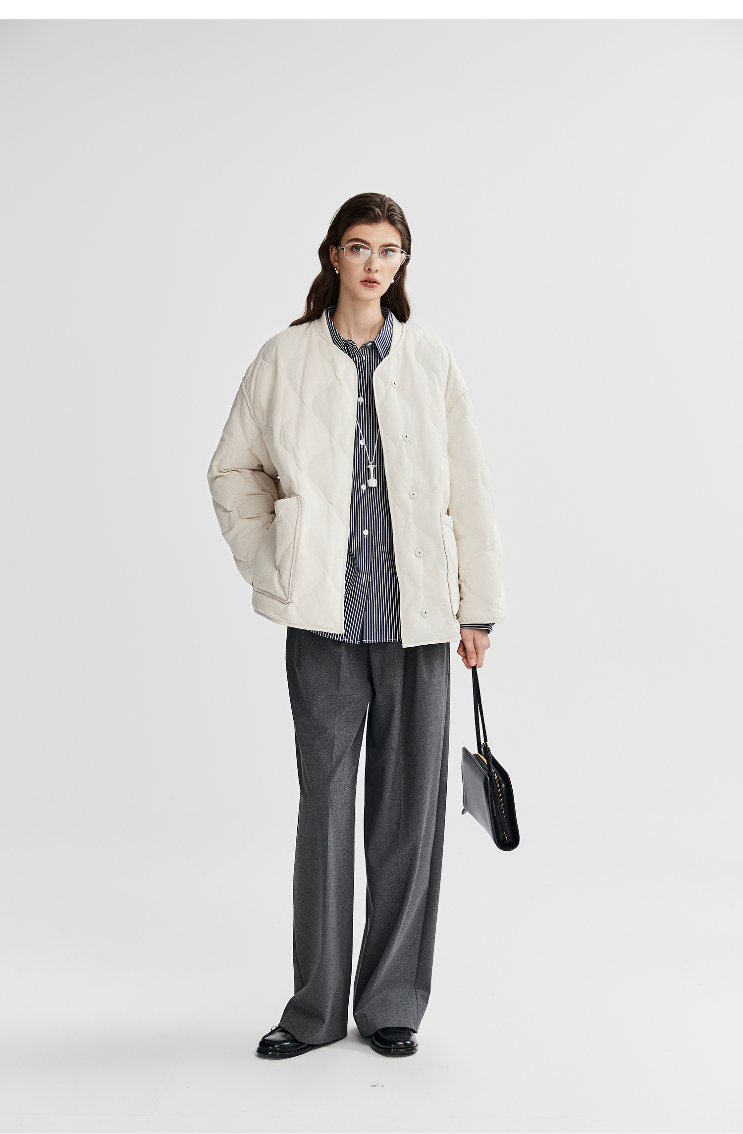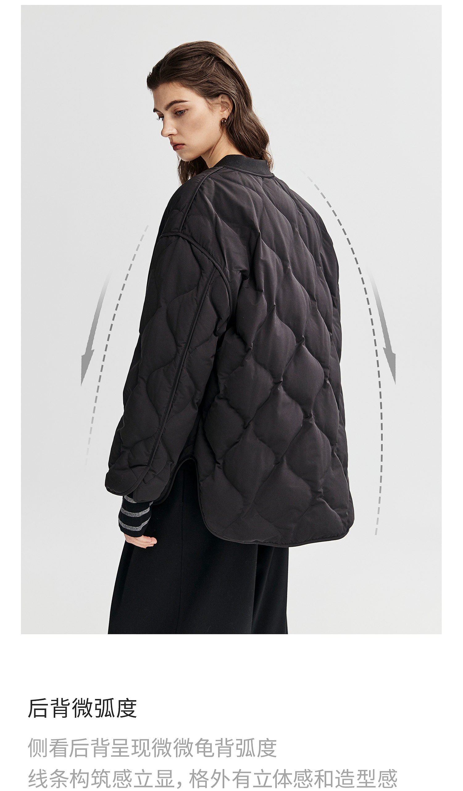 棉仓366615017-棒球领菱形格绗缝轻薄羽绒服夹克