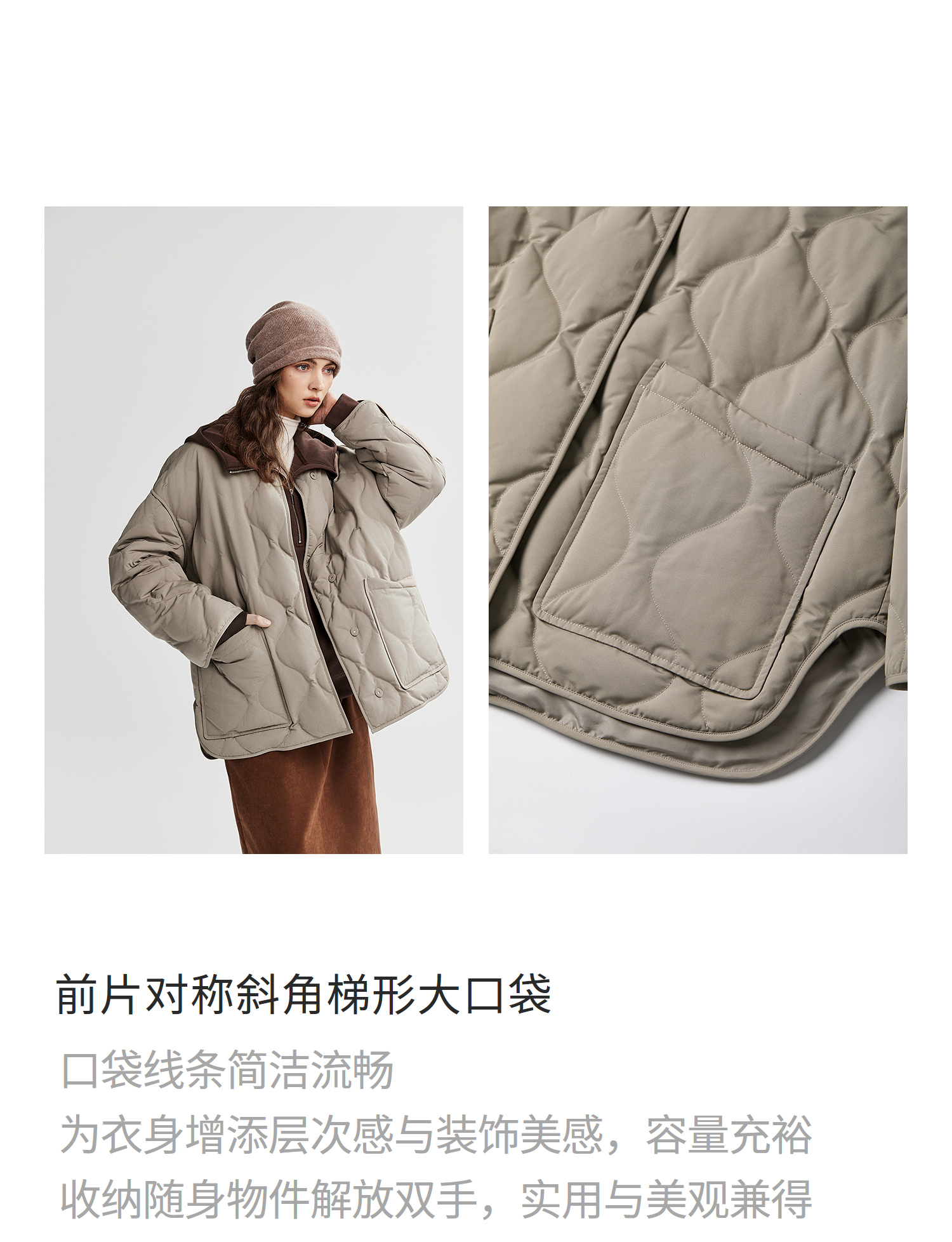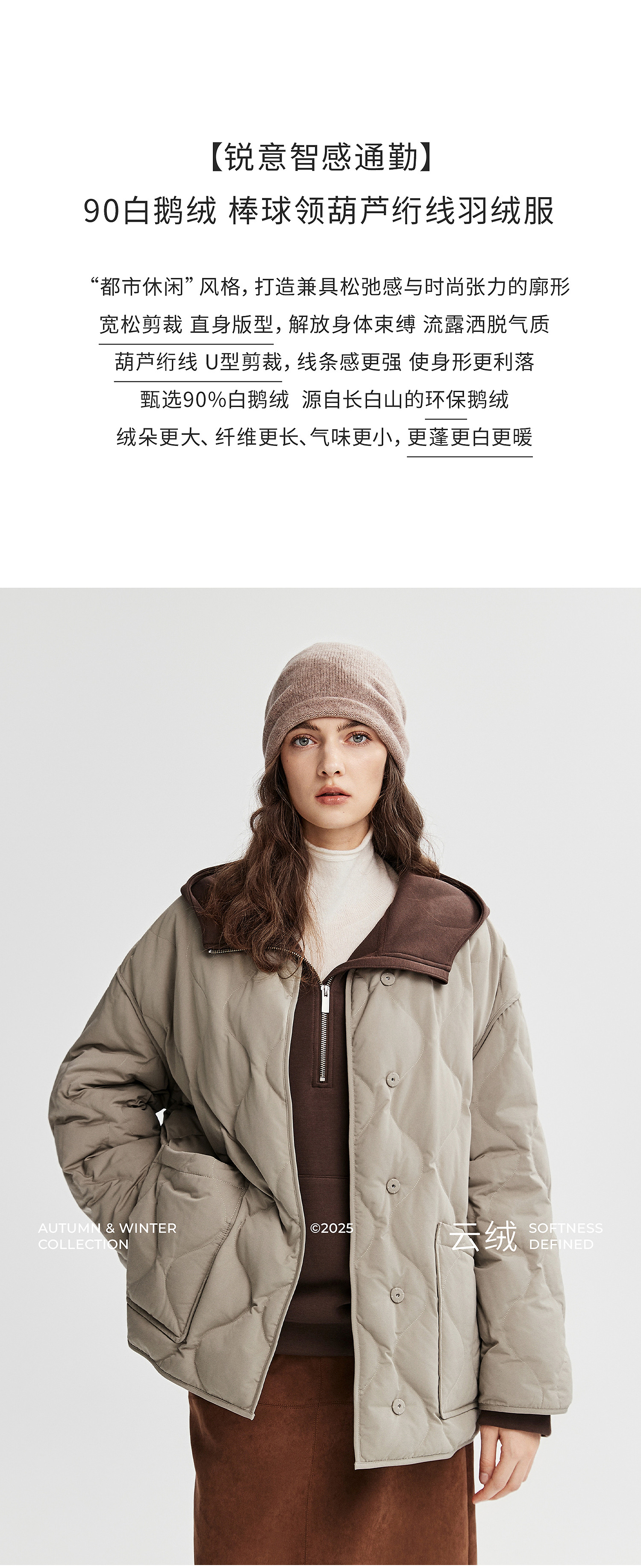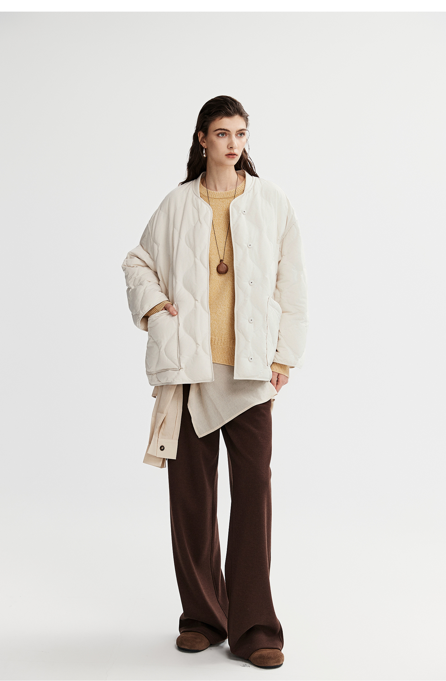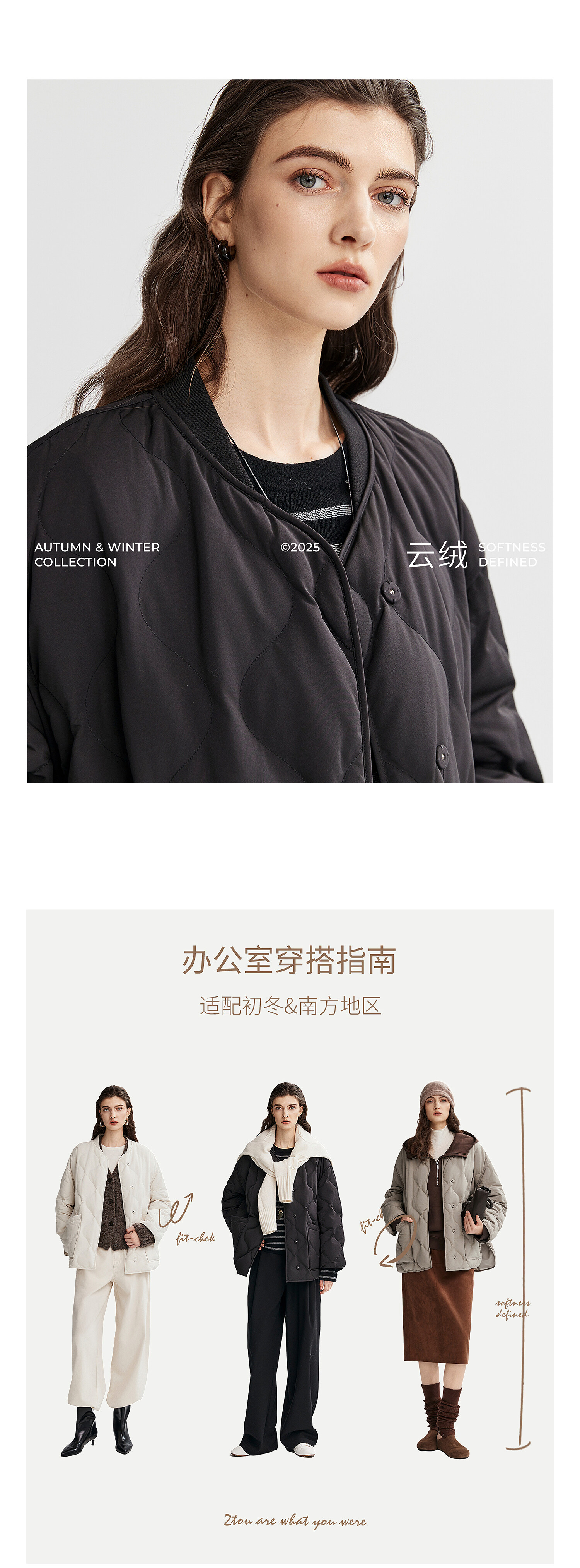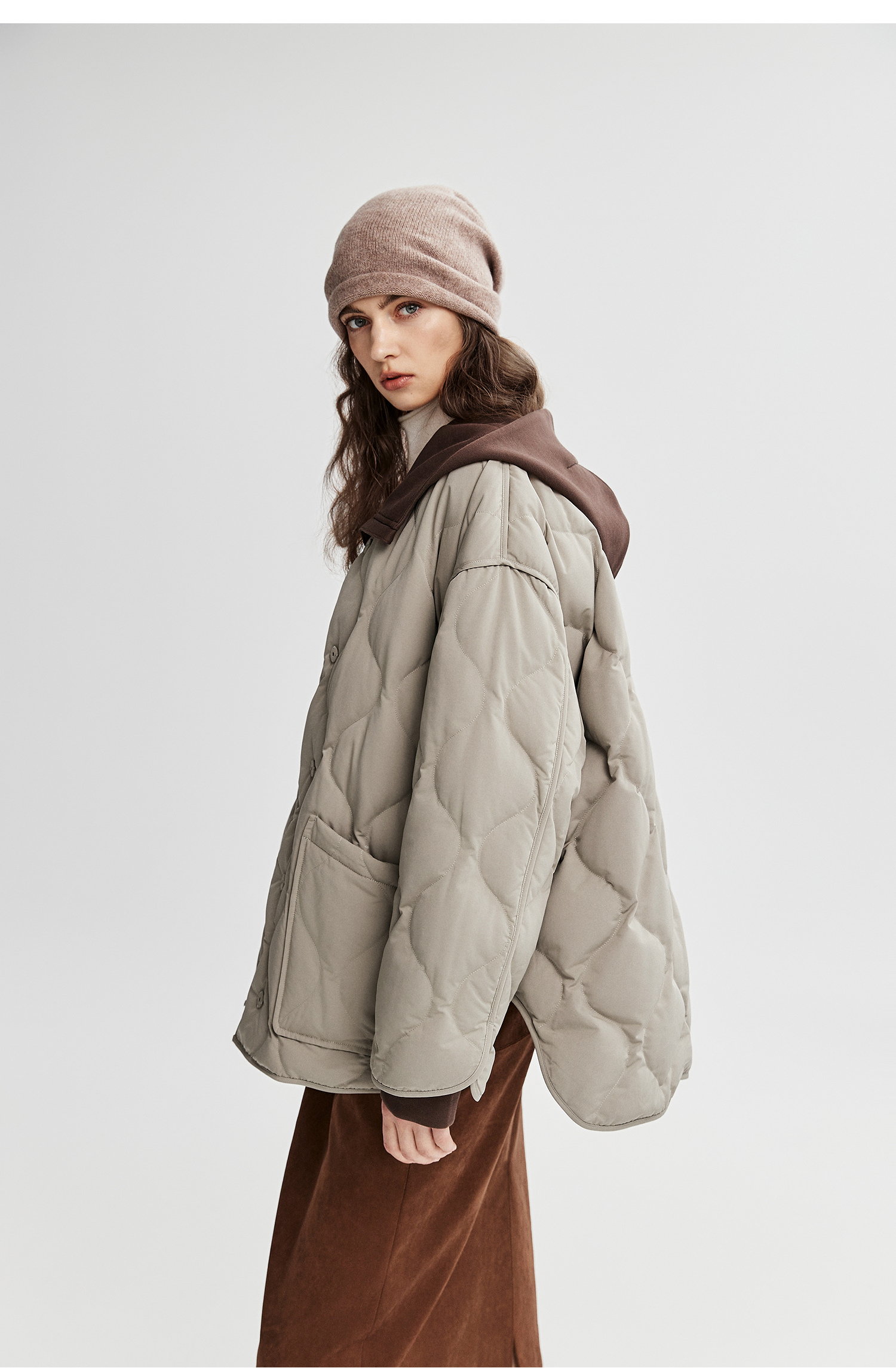 棉仓366615017-棒球领菱形格绗缝轻薄羽绒服夹克