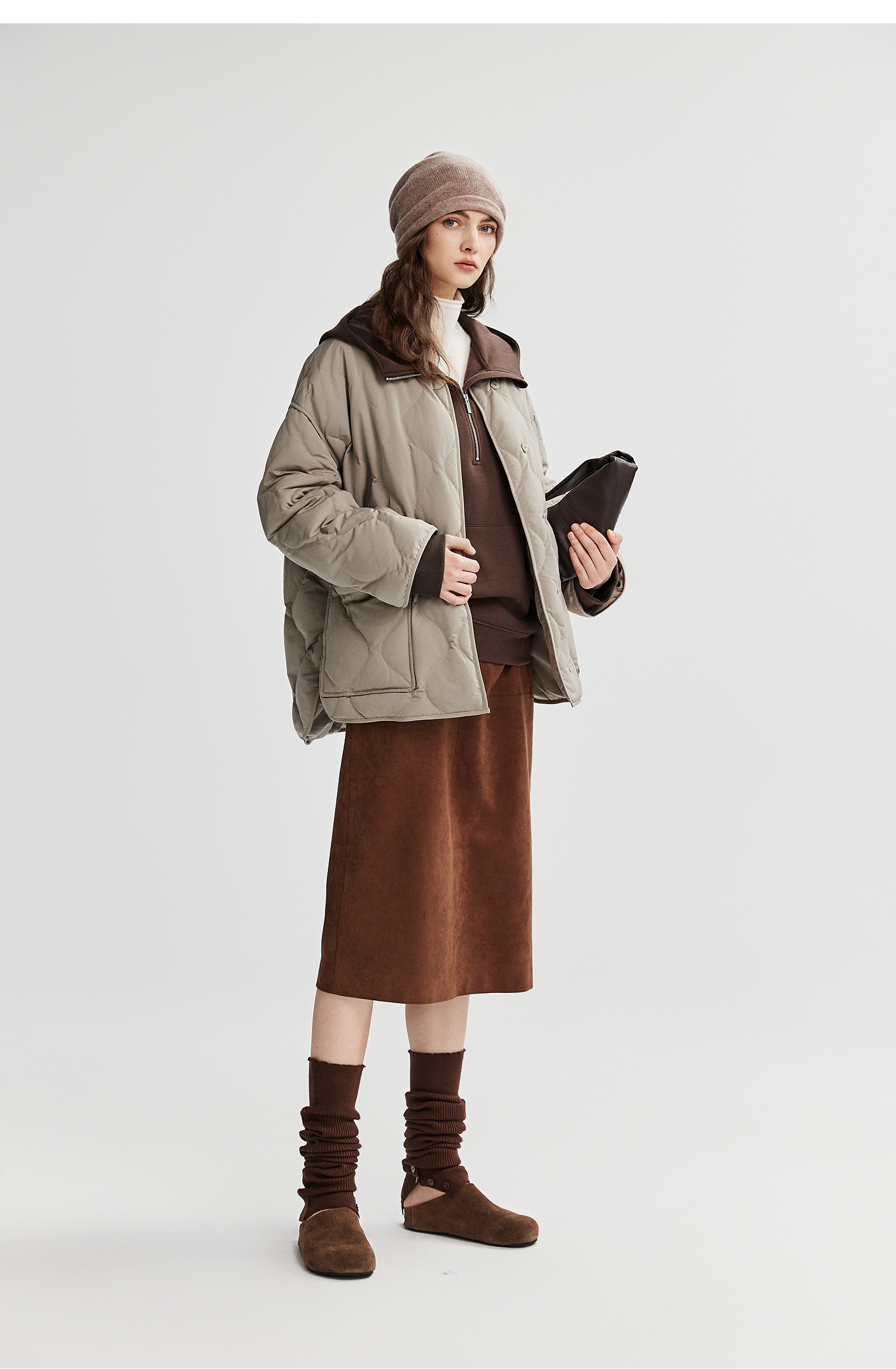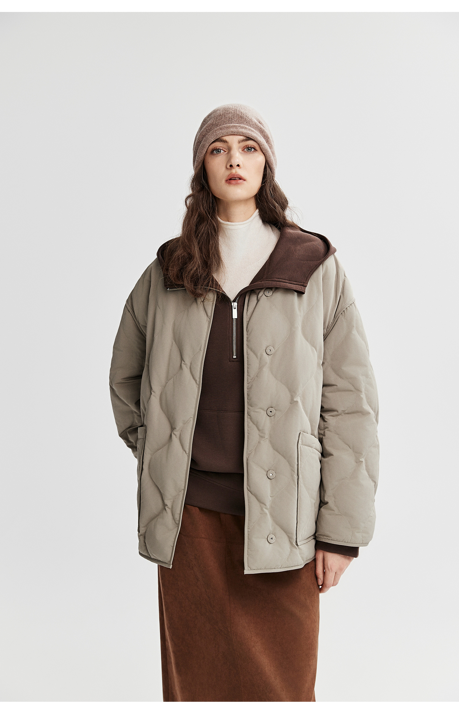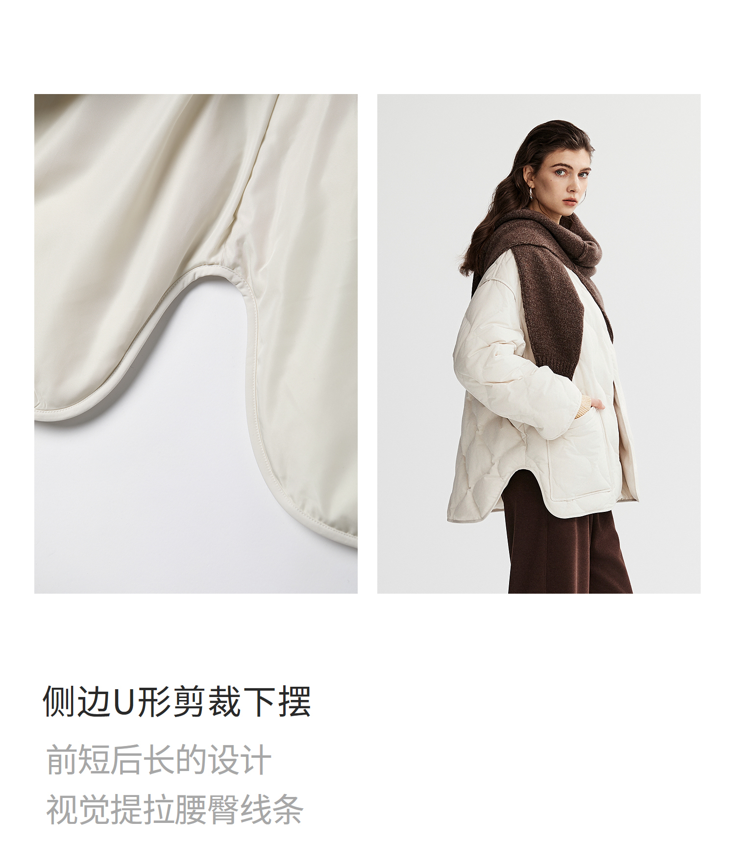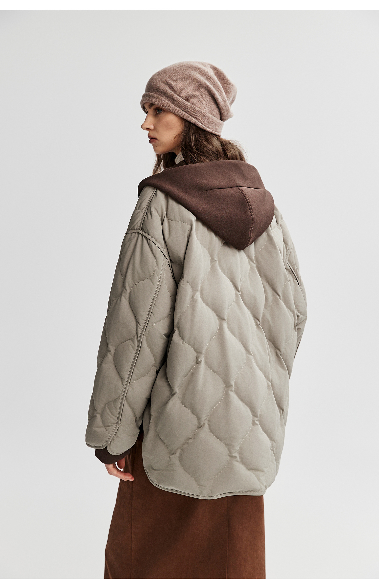 棉仓366615017-棒球领菱形格绗缝轻薄羽绒服夹克