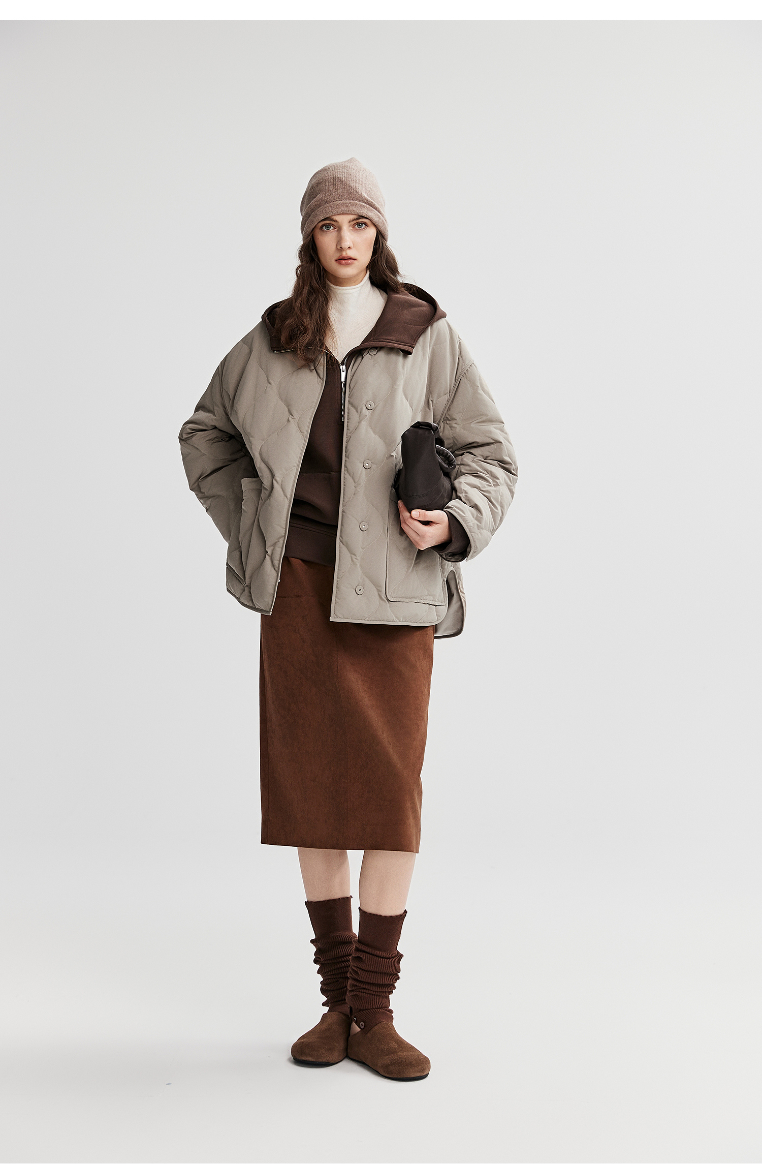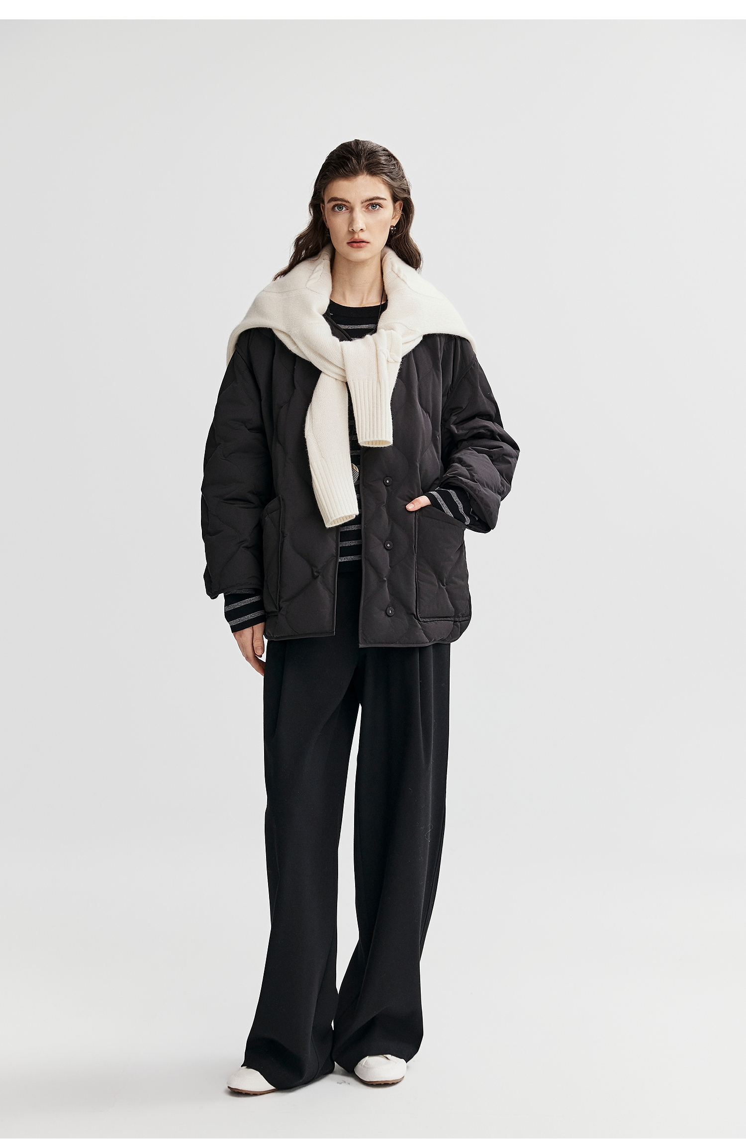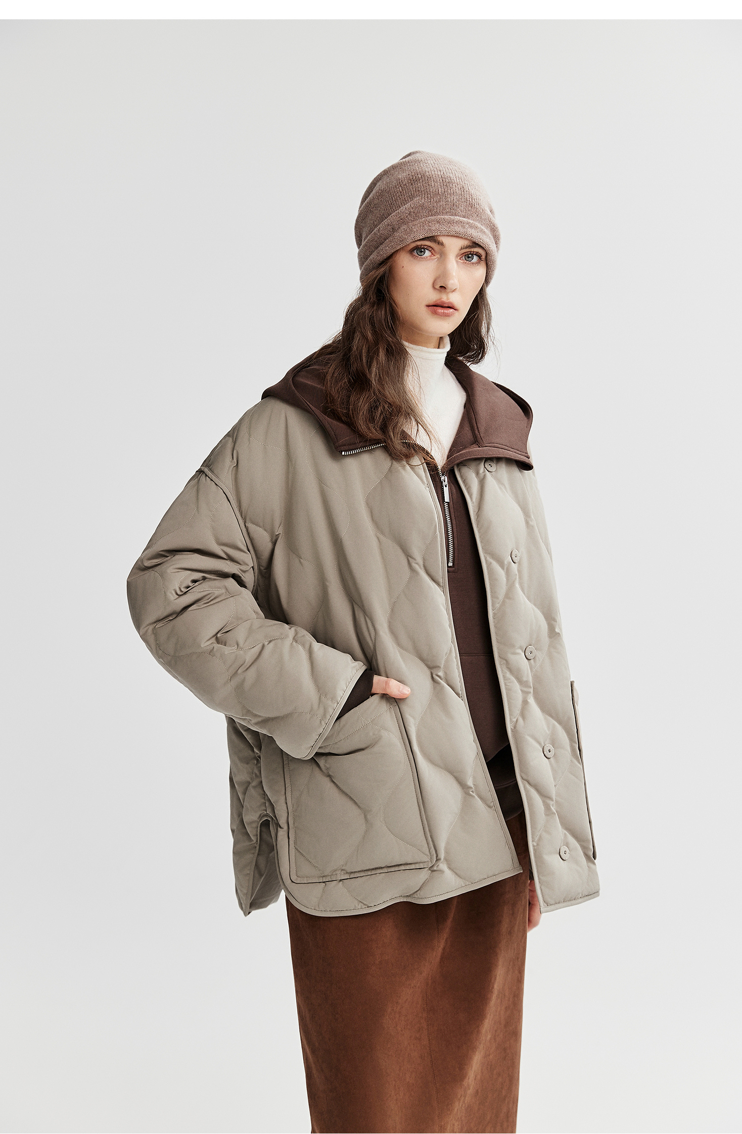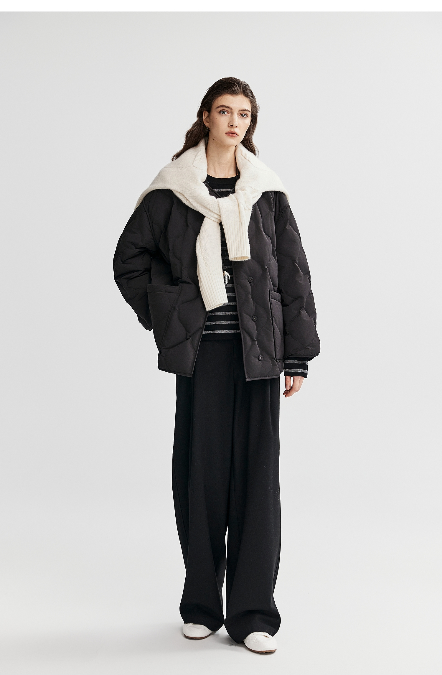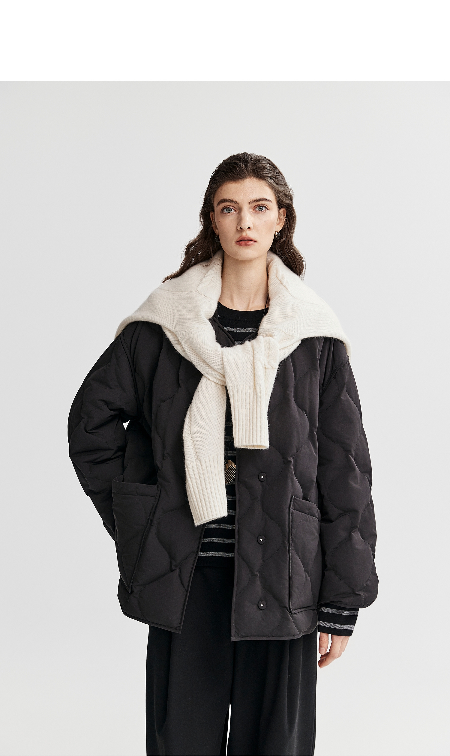 棉仓366615017-棒球领菱形格绗缝轻薄羽绒服夹克