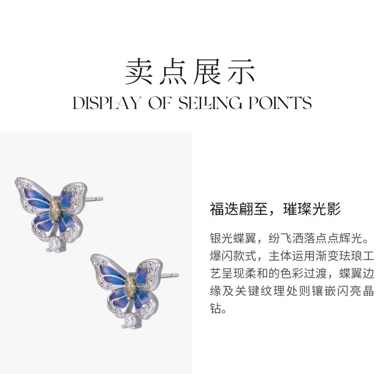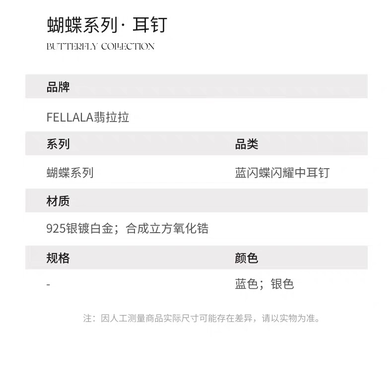 2楼Fellala/翡拉拉「蝴蝶」925银耳钉设计感耳饰货号926434102吊牌价1099现价989