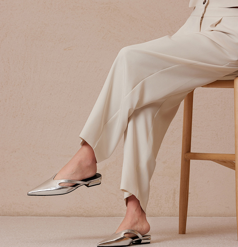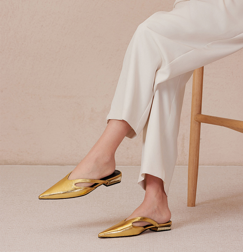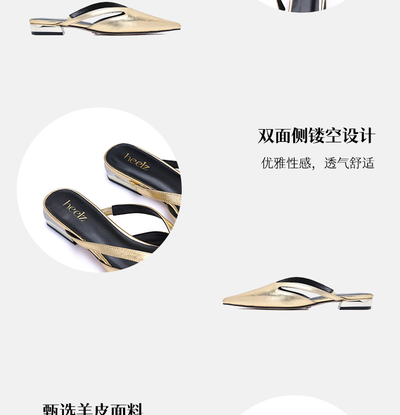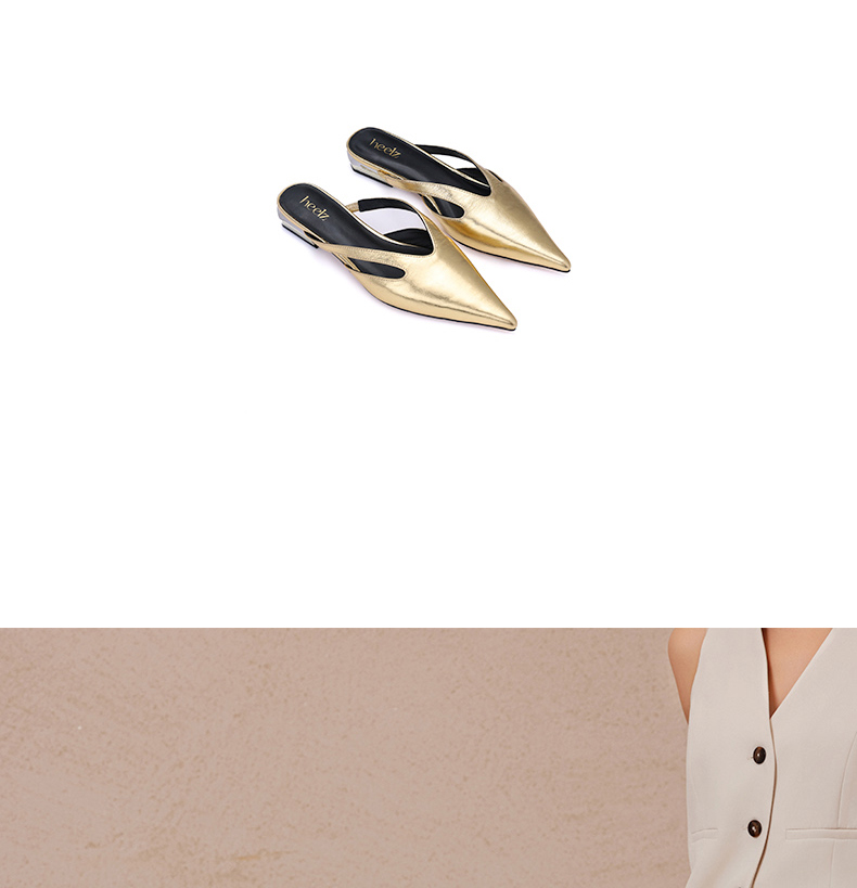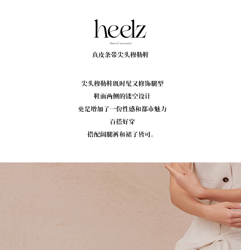 heelz设计师手工鞋履 |真皮条带尖头穆勒鞋牛皮20mm