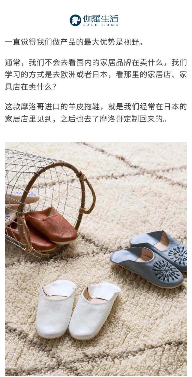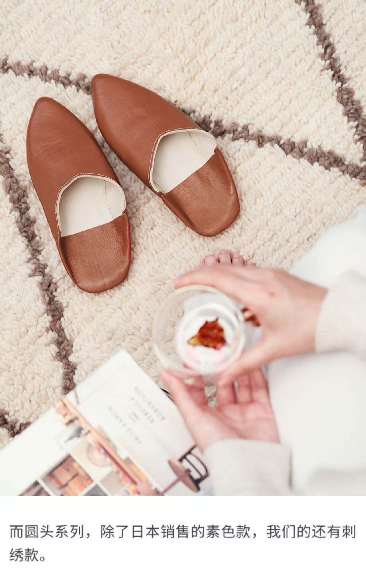 伽罗 JALO 摩洛哥进口手工制作小山羊皮室内拖鞋