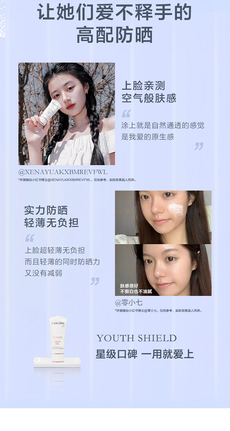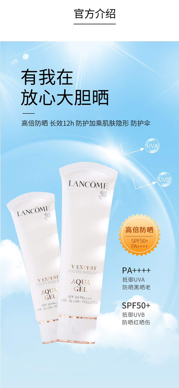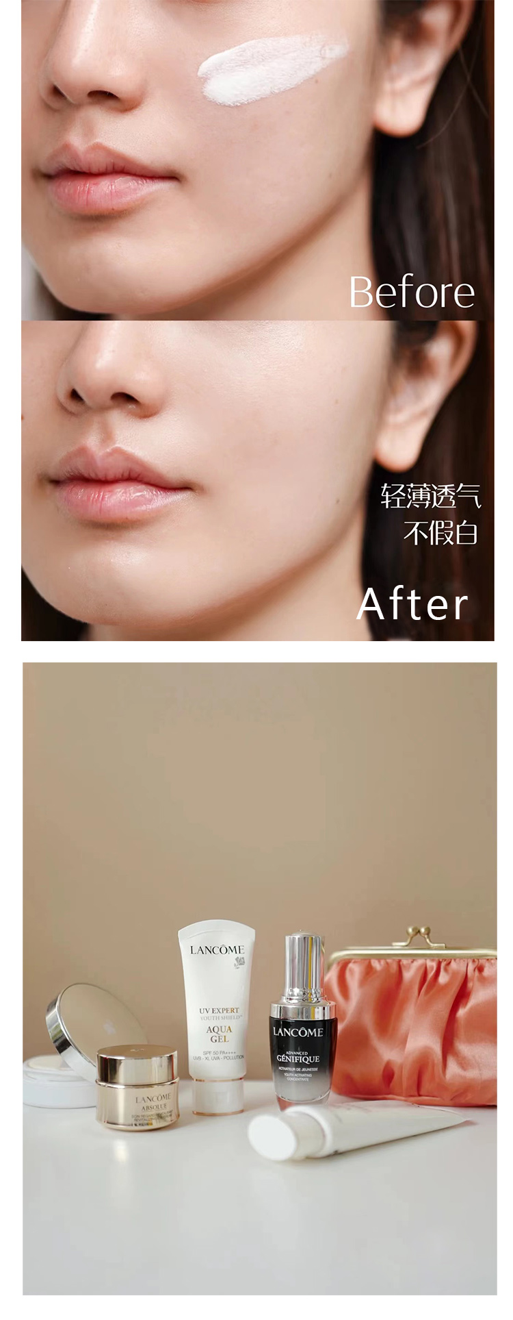 【保税仓发】伪素颜心机防晒,兰蔻小白管轻透水漾防晒乳50ml!SPF50 PA++++,白色水润乳液质地,像牛奶般清透又自然!成膜快不粘腻,空气般的肤感超爱~出门用它再上个口红,妥妥的伪素颜!