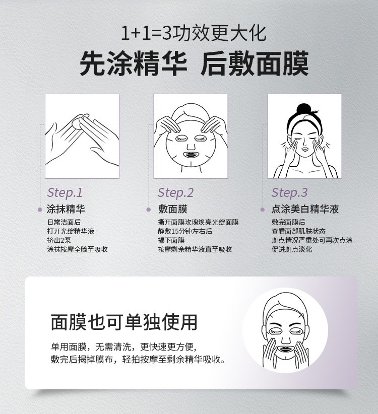 满减到手448元得3盒美白面膜套盒👉1层面膜微压+精华点涂色斑处=全脸断黑