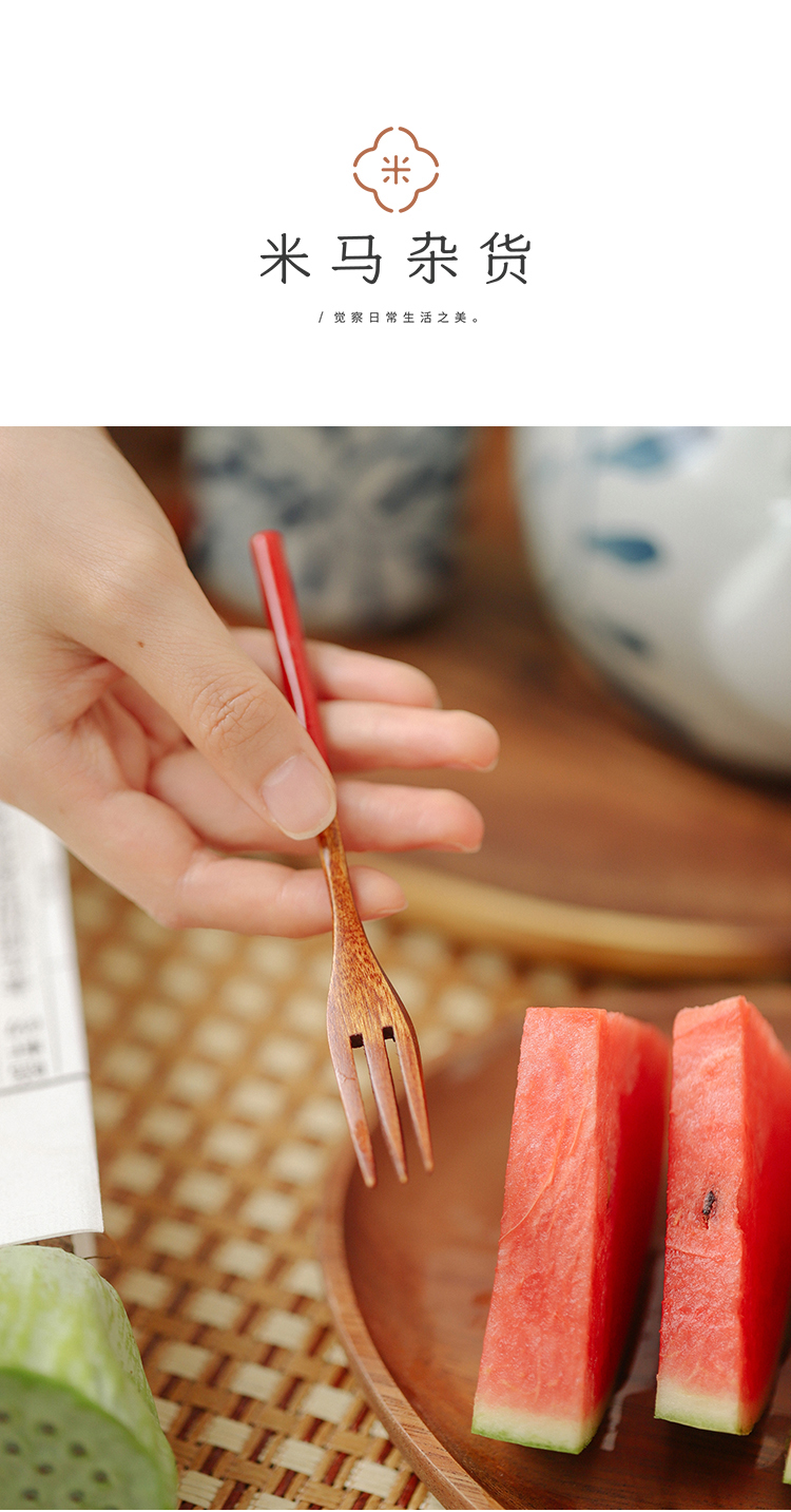 随订单一起发货,单拍不发货 米马生活 宝宝专用小尺寸原木/楠木水果点心刀叉 换个勺子再吃瓜丨售完无补