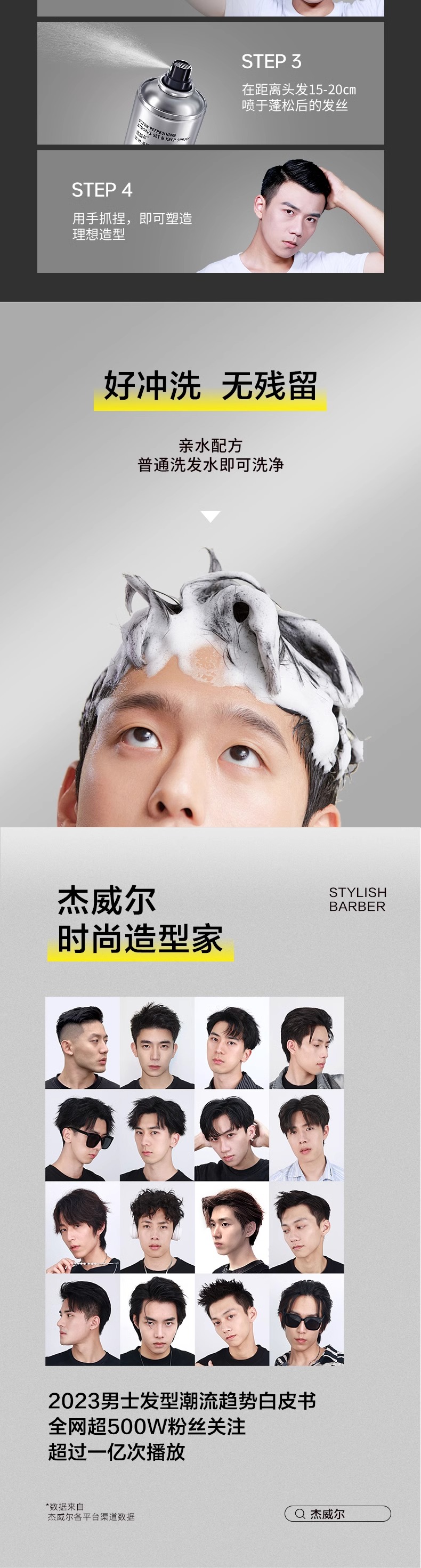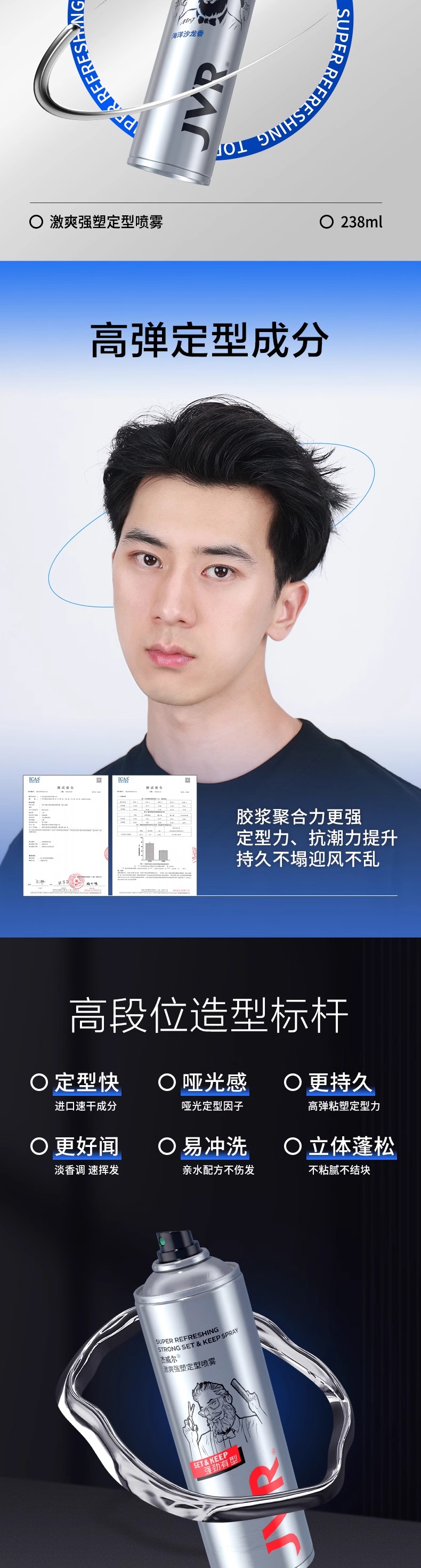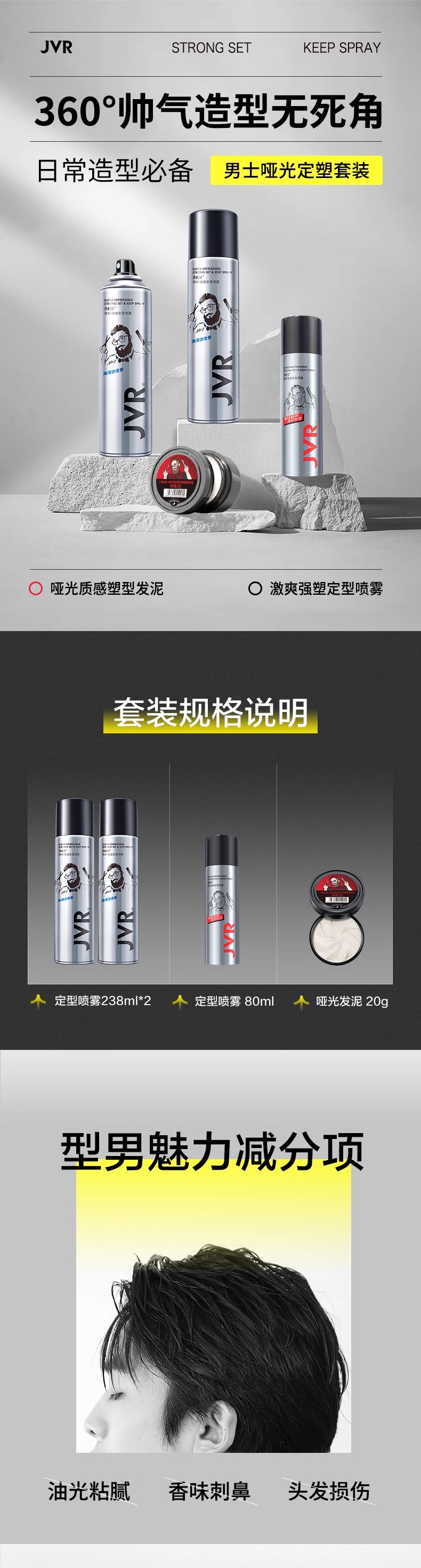 杰威尔男士发胶定型喷雾发泥碎发整理神器发蜡造型啫喱水自然蓬松