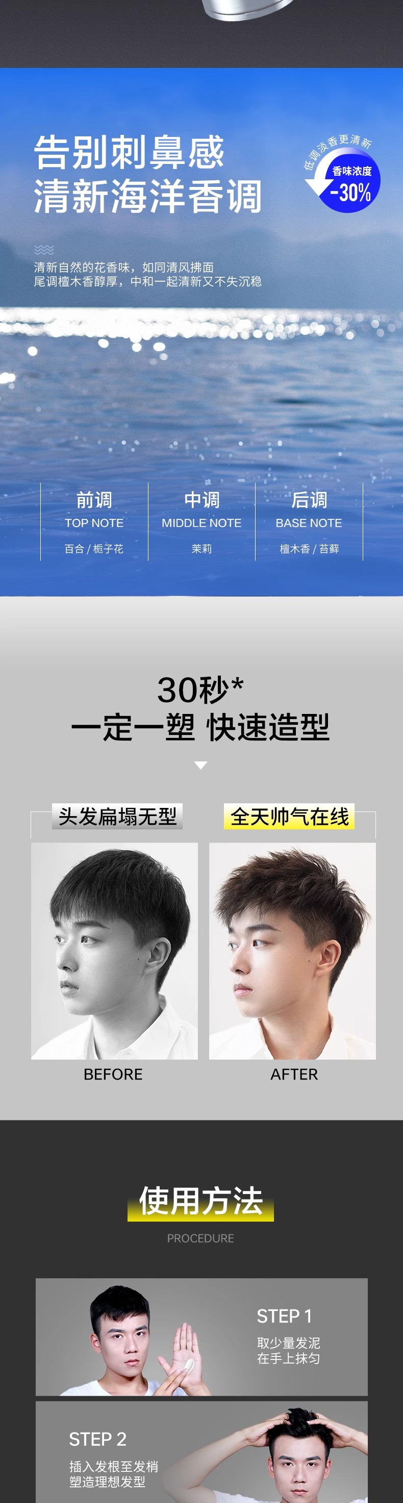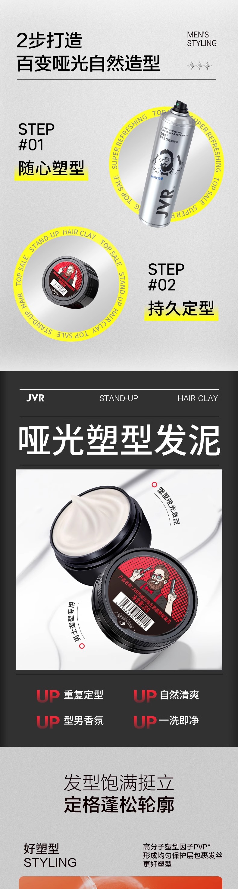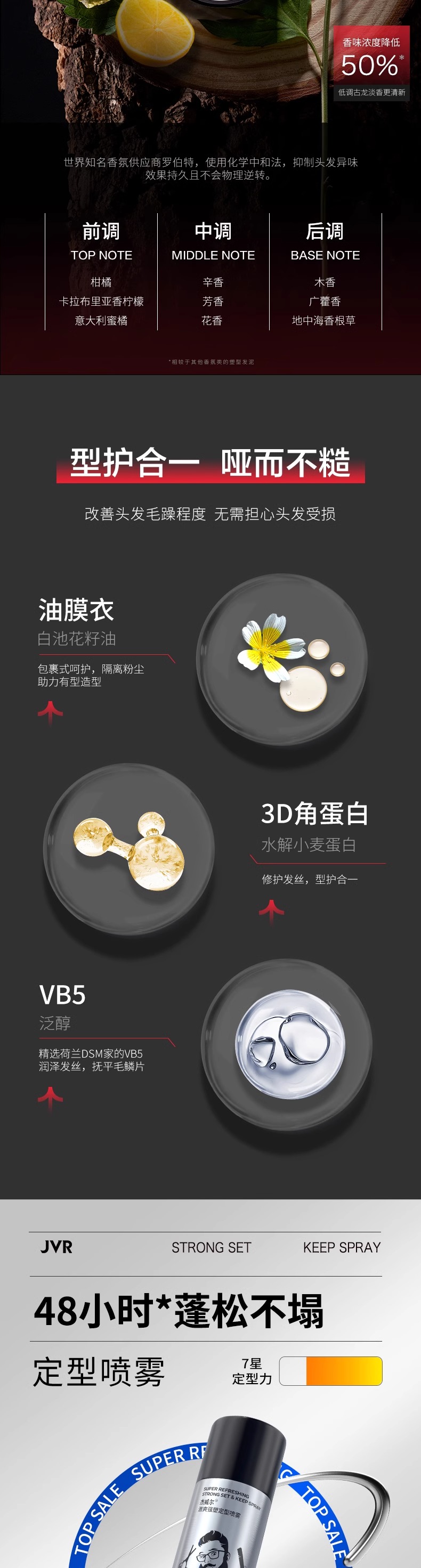 杰威尔男士发胶定型喷雾发泥碎发整理神器发蜡造型啫喱水自然蓬松