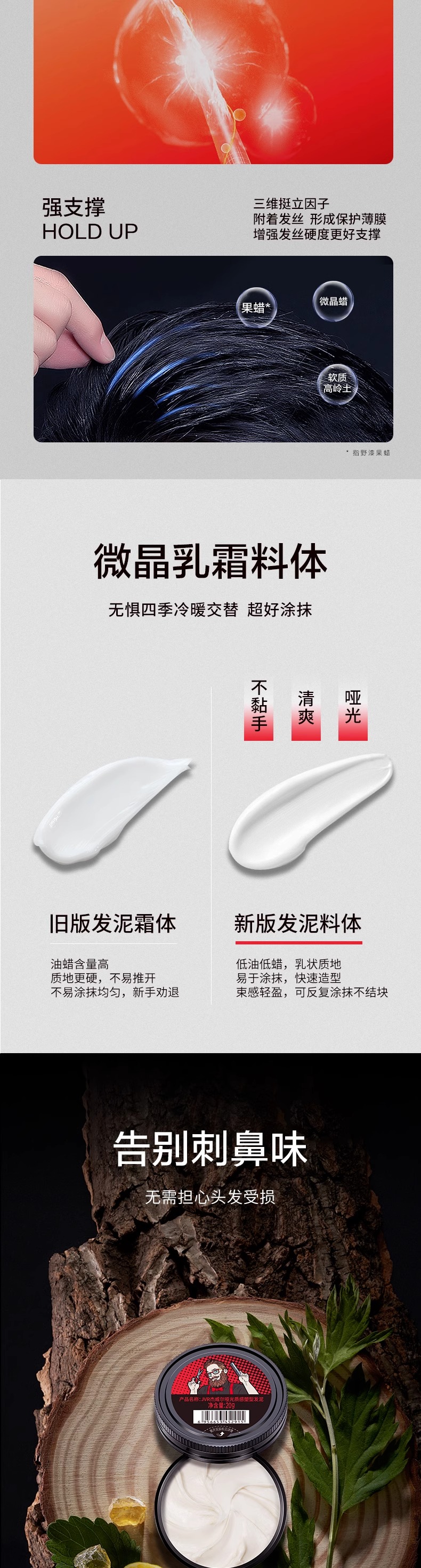 杰威尔无香发胶发泥发型定型喷雾男士头发持久自然蓬松水干胶女士碎发整理神器
