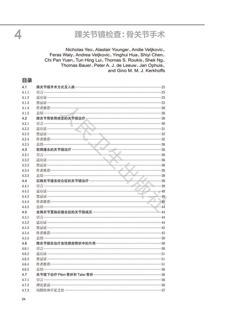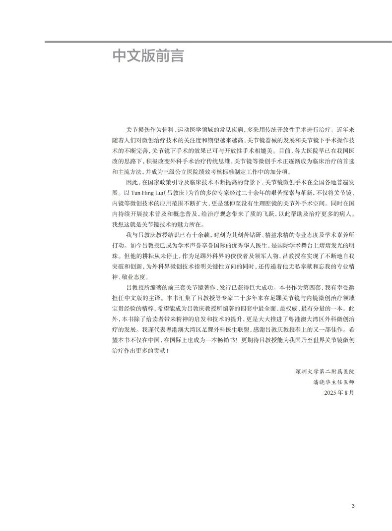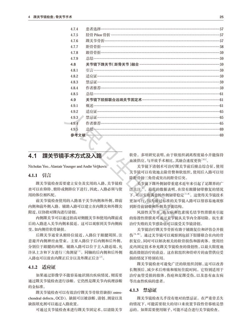 随着内镜技术在我国逐渐普及,关节镜手术已成为骨关节外科常规诊疗手段。关节镜已经成为希望在足踝外科领域有所开拓的骨科医生及相关从业人员医疗装备中的一种重要工具。本书由多为经验丰富的学者、临床工作者进行编写,融合了多家国内外行业知名研究机构及高校的学术指导,本书对踝关节镜治疗各角度进行了研究、探讨,使其成为踝关节镜行业标杆。本书全面论述关节镜和内镜在足踝外科中的应用,各章节分别深入讨论了临床检查、解剖及各种关节镜技术,包括其适应症、禁忌症以及可能的并发症,为读者提供了前沿且颇有裨益的信息。本书还覆盖了一些前沿新型技术,并专辟章节讨论康复问题。本书注重理论联系实践,对常见足踝关节疾病,从解剖、影像、损伤的机制、分类、治疗及踝关节镜微创外科技术方面作了系统全面地介绍,并附有大量图片及病例研究。