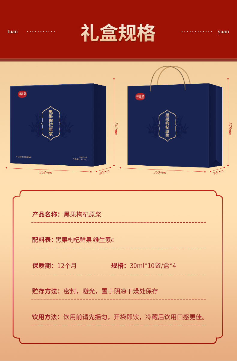 可益康黑果枸杞原浆礼盒 nfc工艺 花青素满满 4盒礼盒装