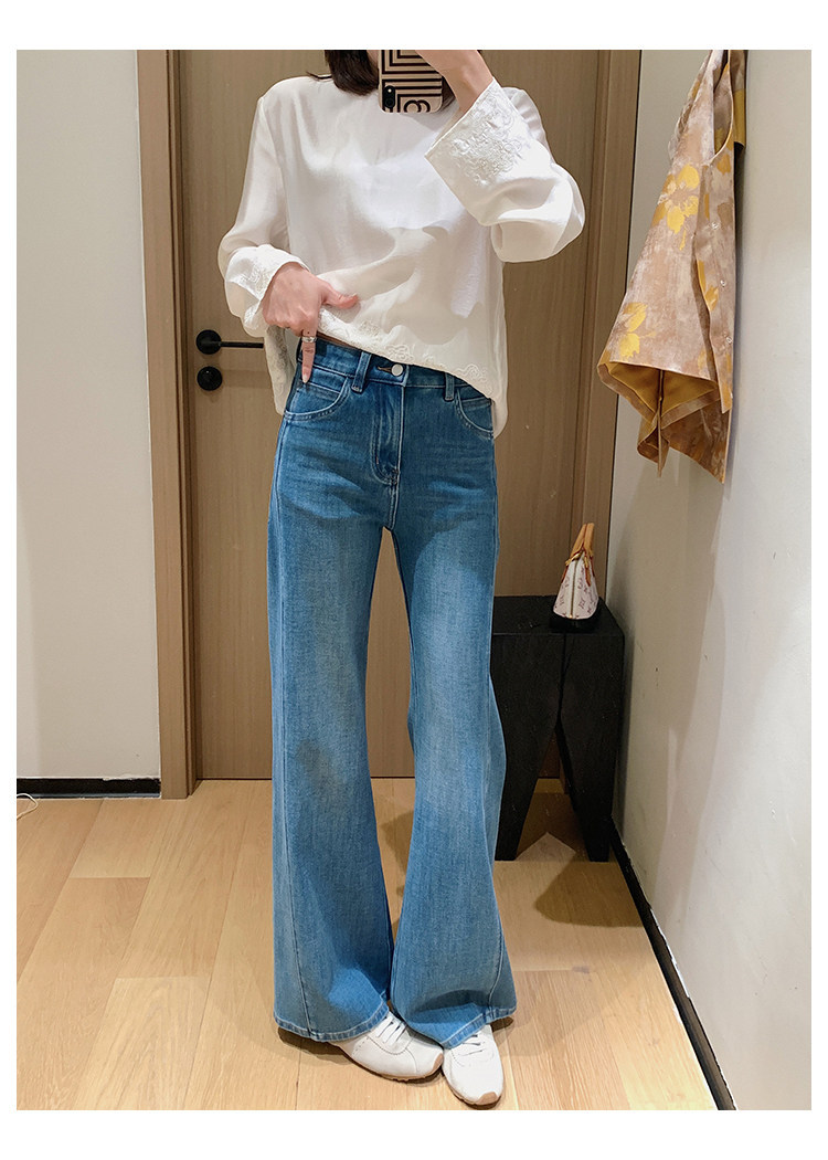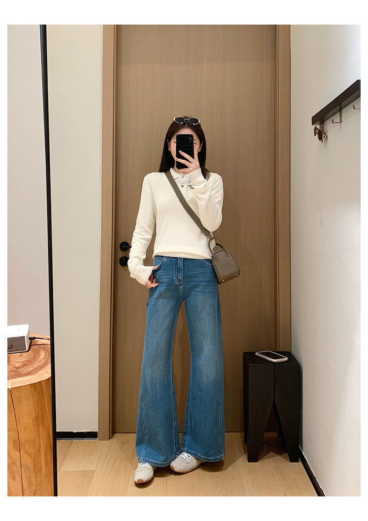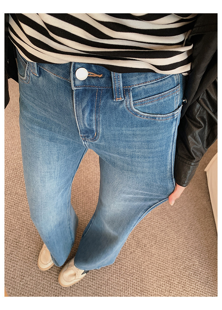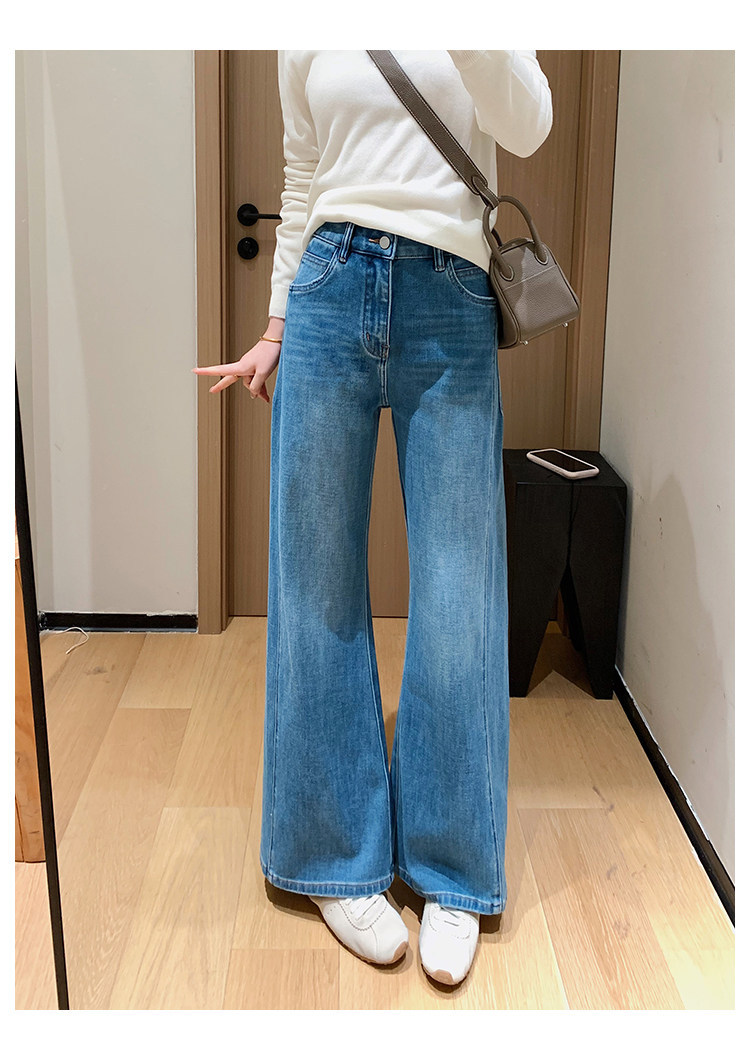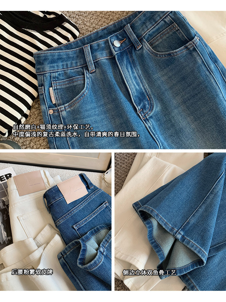 四面弹磨白猫须立体双鱼骨筒喇牛仔裤!#