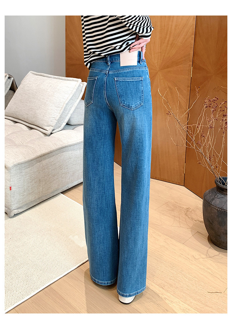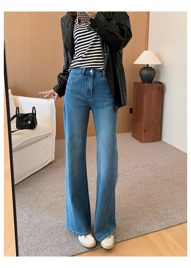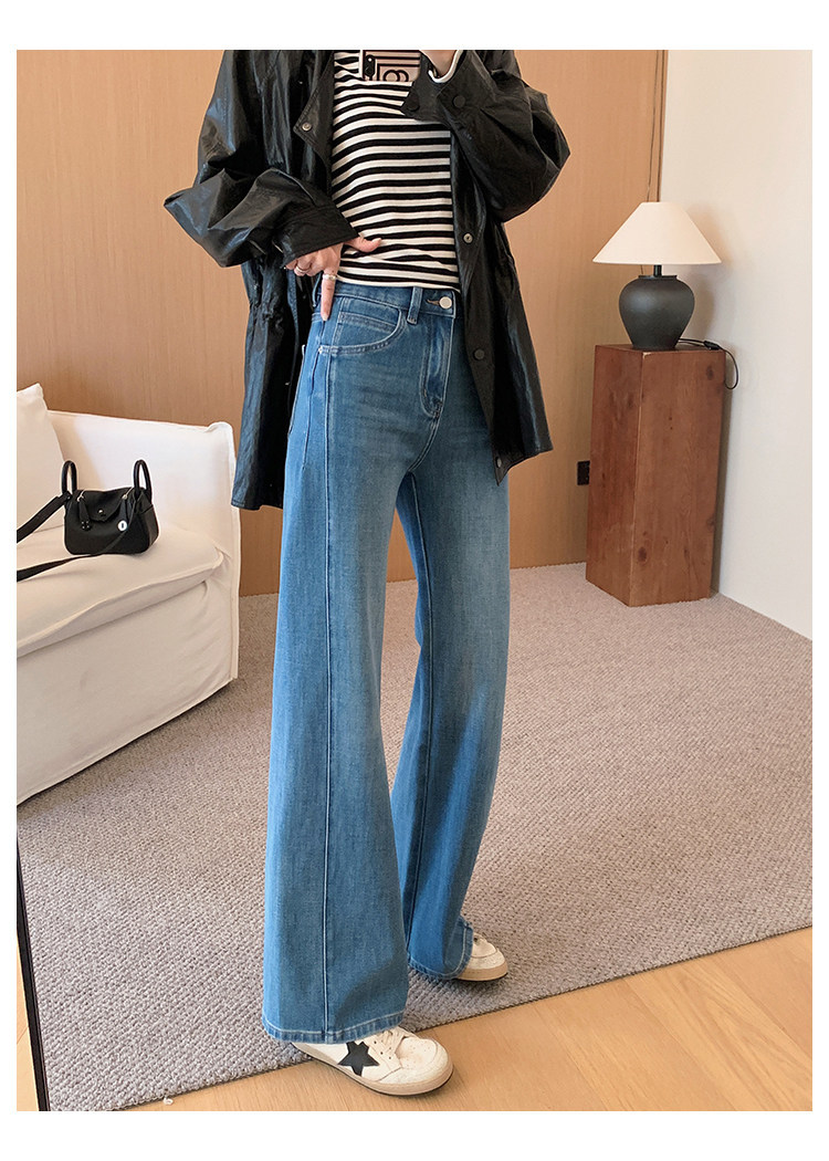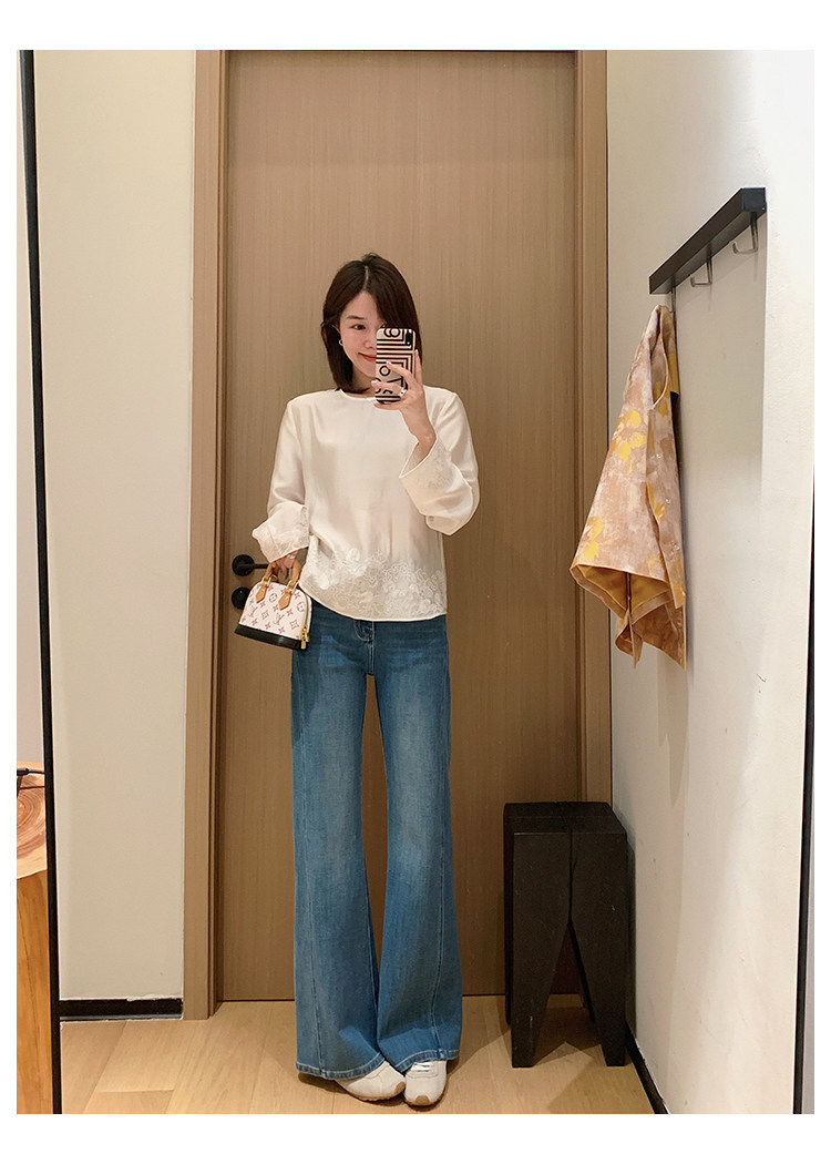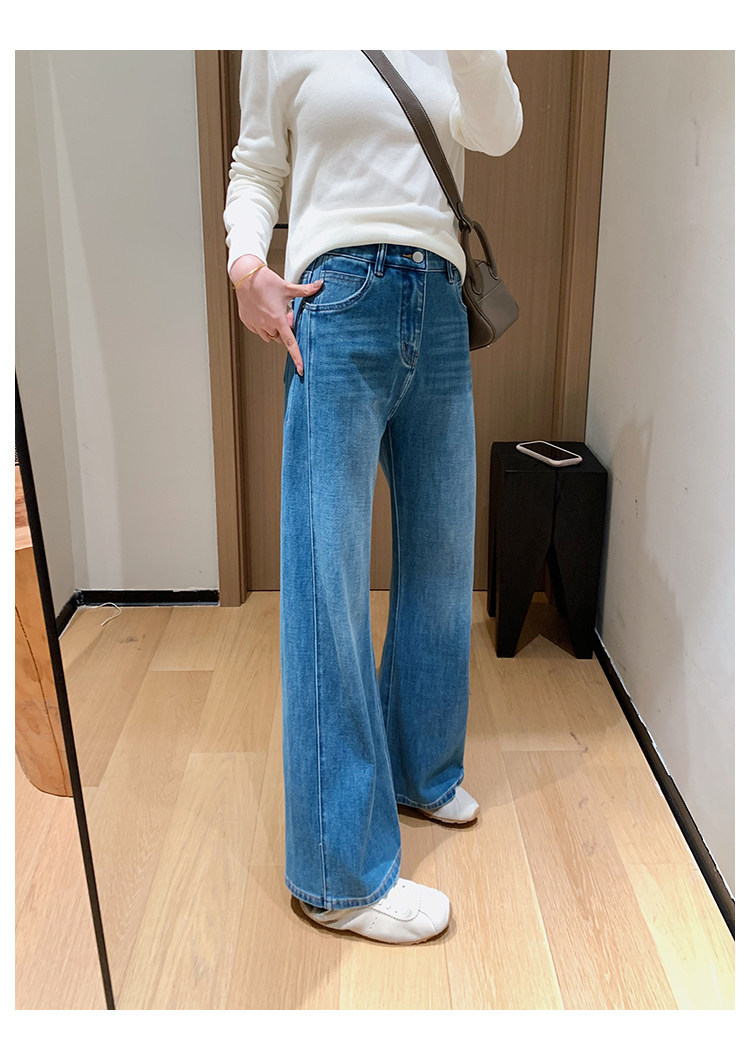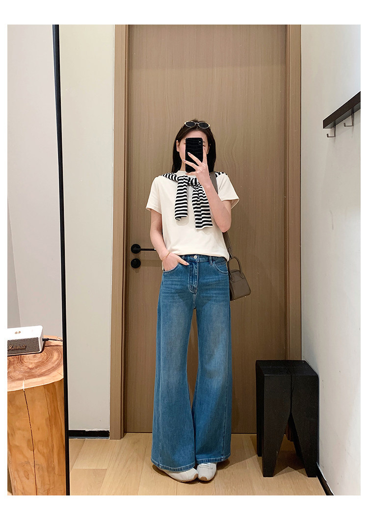 四面弹磨白猫须立体双鱼骨筒喇牛仔裤!#