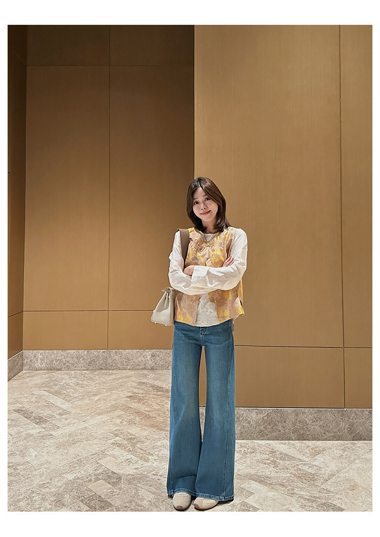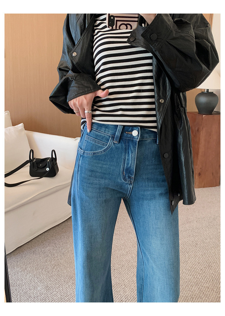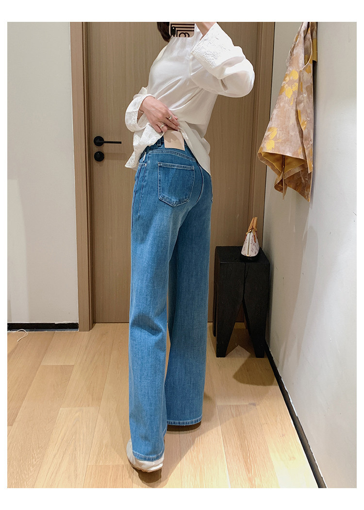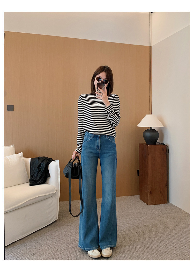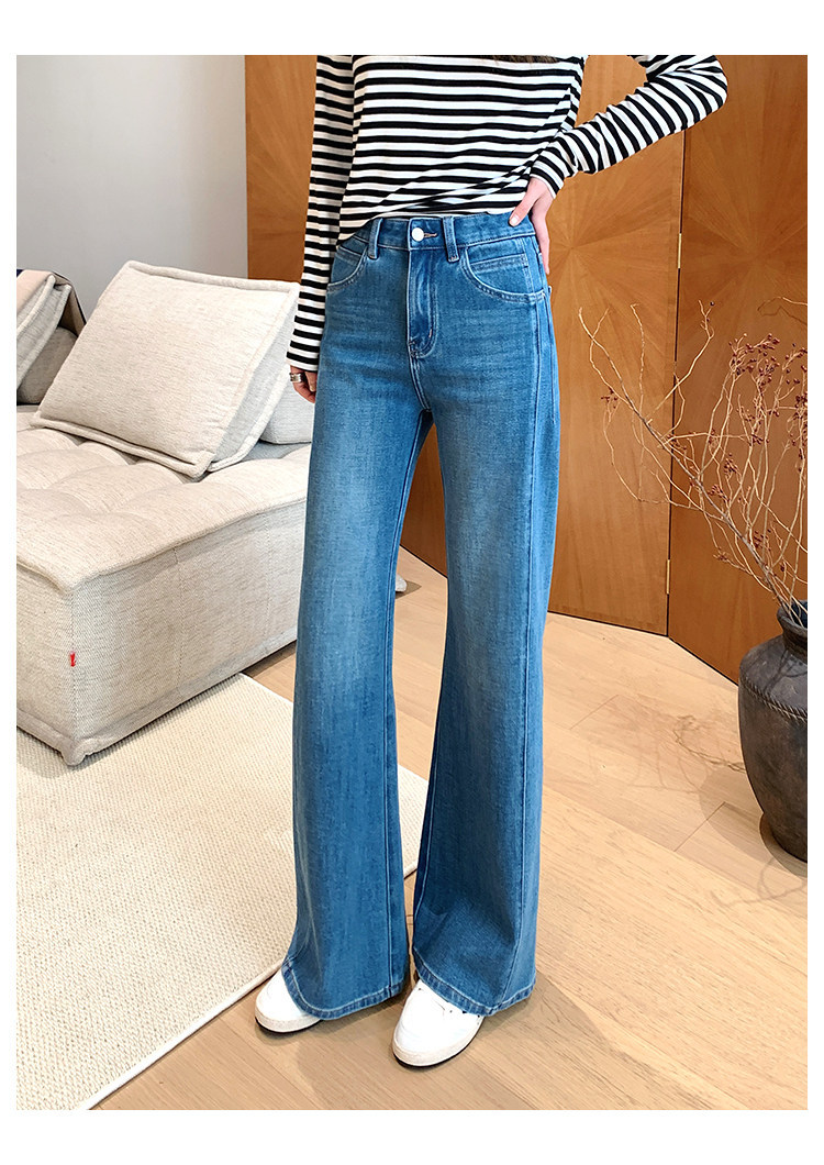 四面弹磨白猫须立体双鱼骨筒喇牛仔裤!#