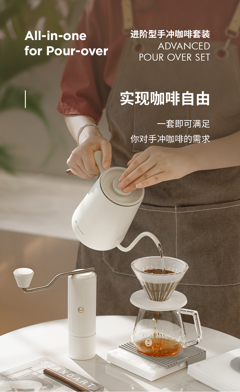 泰摩 进阶型家用手冲咖啡套装礼盒 温控手冲煮壶 磨豆机 电子秤 滤杯 一套配齐