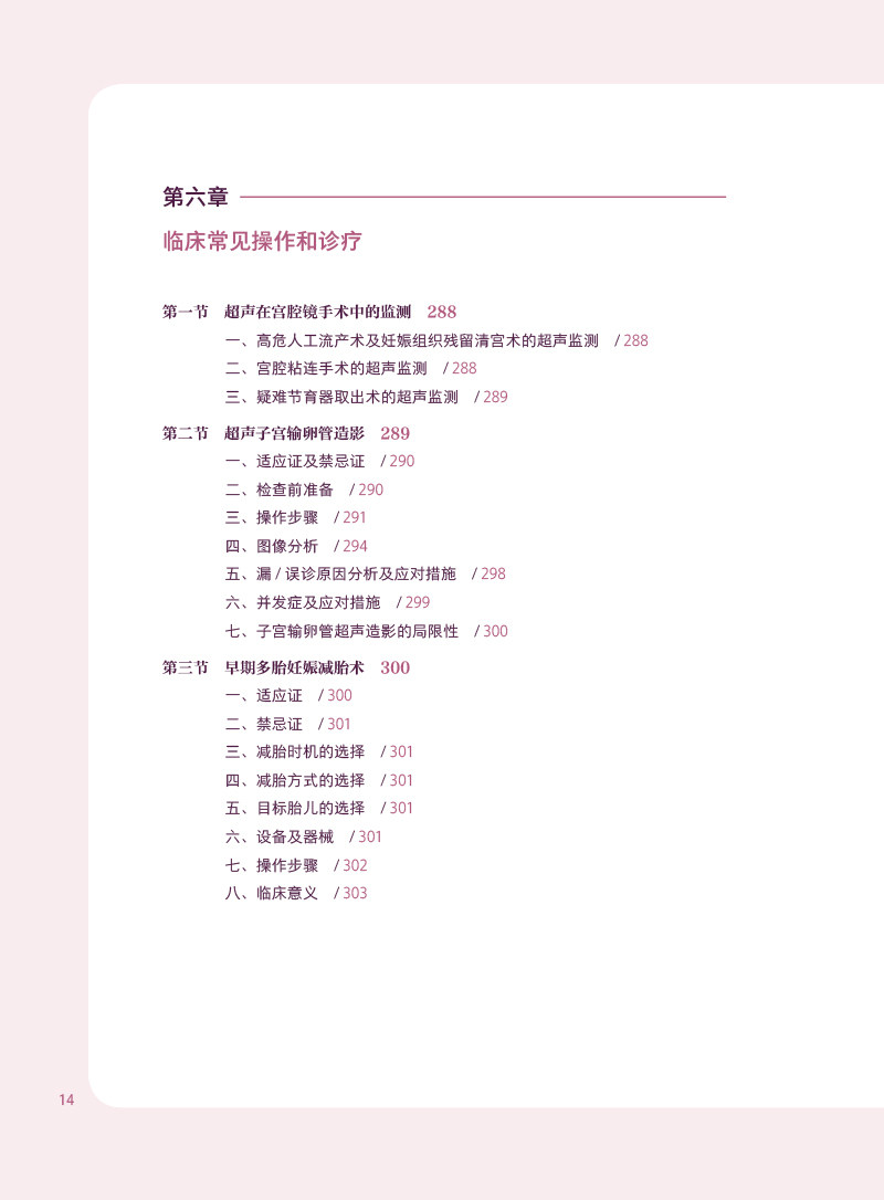 本书共分为六章,重点阐述生殖系统相关疾病的超声影像学特征。其中第一章和第二章主要讲述女性生殖系统解剖及生殖系统超声检查规范,第三章至第五章主要阐述生殖系统相关疾病的超声影像特征,第六章主要介绍了超声在临床诊疗中的实时指导意义。 本书采用图文并茂的方式编写,部分疾病绘制有模式图,深入浅出地阐述各个疾病的声像图特征。为适应自学及教学,本书图注尽量详细,且大部分辅以描述性语言对图像进行解释,力求详尽地展示生殖系统相关疾病的超声特征,为不同背景的医务工作者及超声爱好者提供参考。
