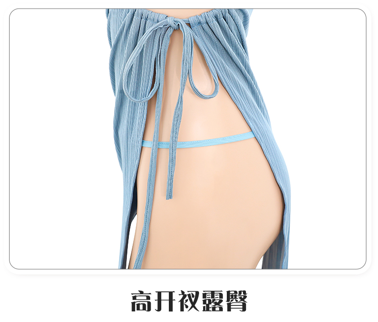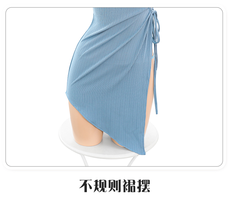 镂空抽褶高腰开衩连衣裙6562
