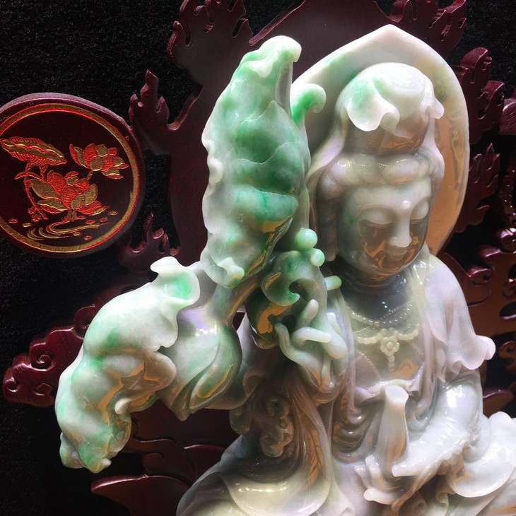 | 【60013】翡翠“观音菩萨”精品摆件,玉质细腻,种水一流,观音神情典雅端庄,福气满满,观音大士慈悲为怀,普渡众生。请一座观音回家 ,可保您身体健康 ,万事如意!尺寸:约50*30*18cm(连底座),裸石尺寸:约27*22*8cm,结缘价36500 |