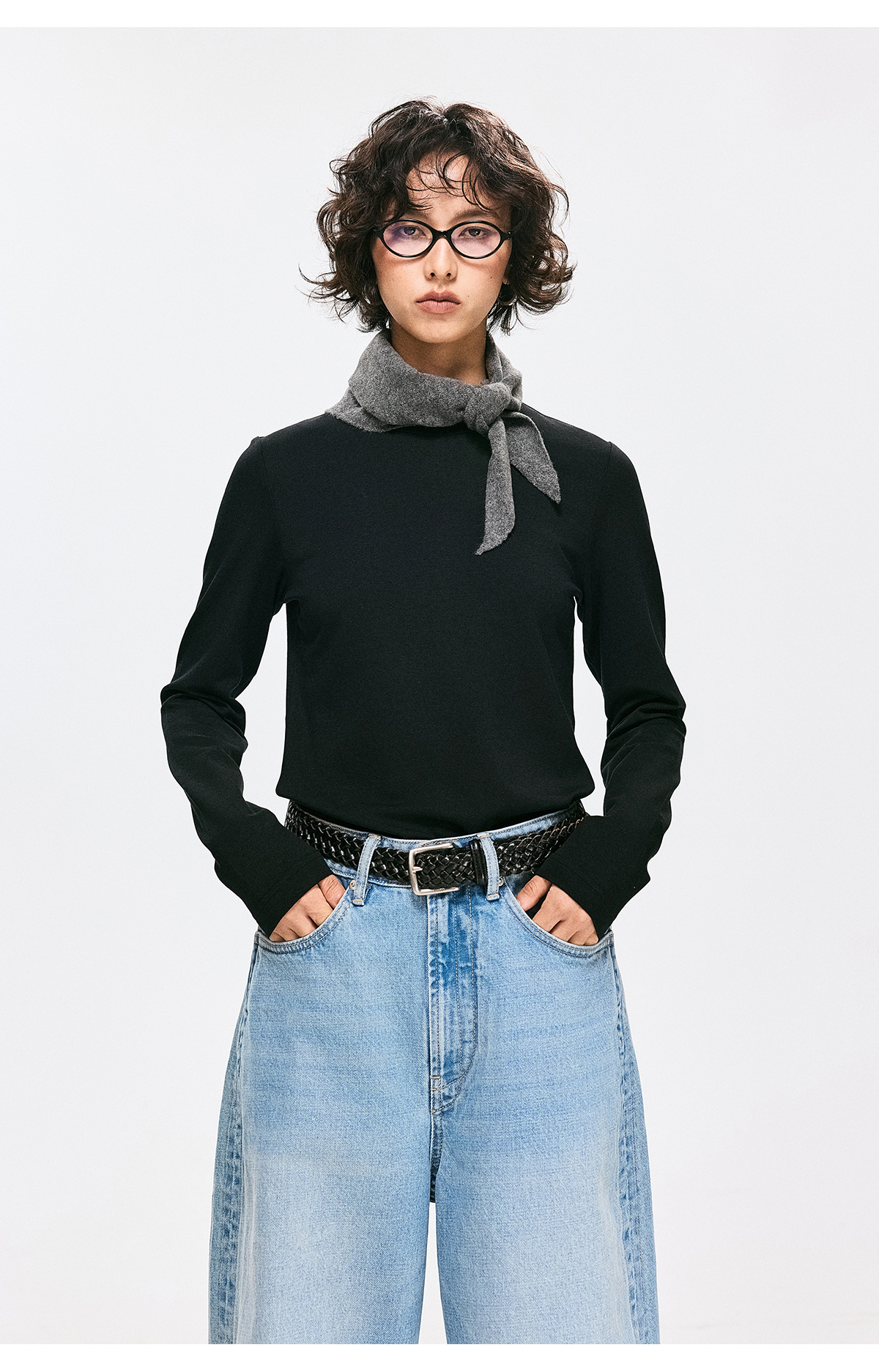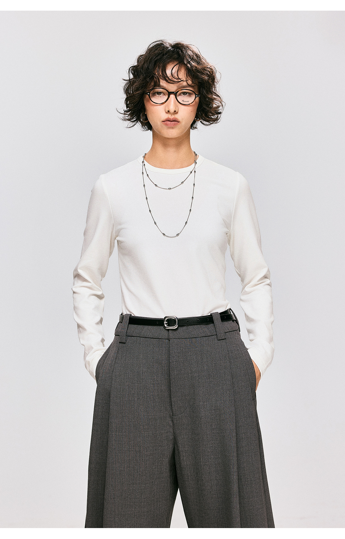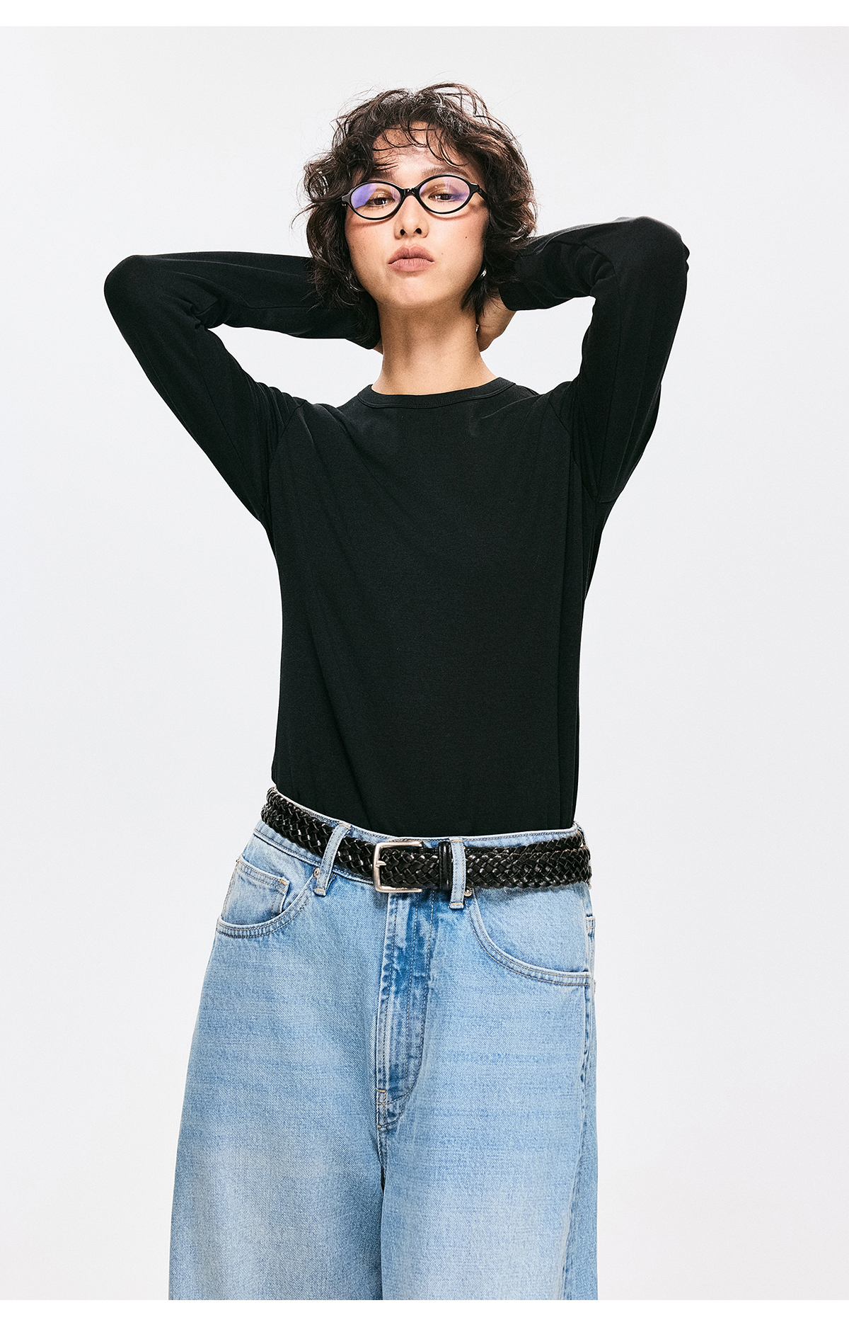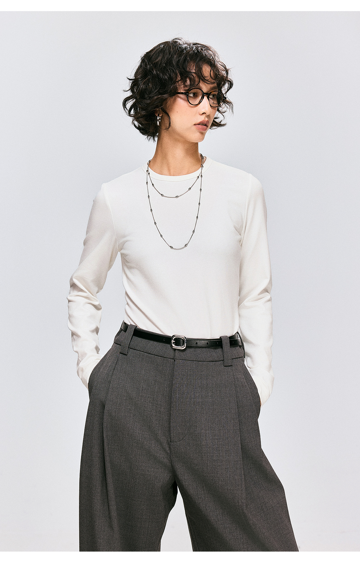 棉仓3661001002-【雾岛绒境】修身圆领打底T恤女260g重磅抓绒