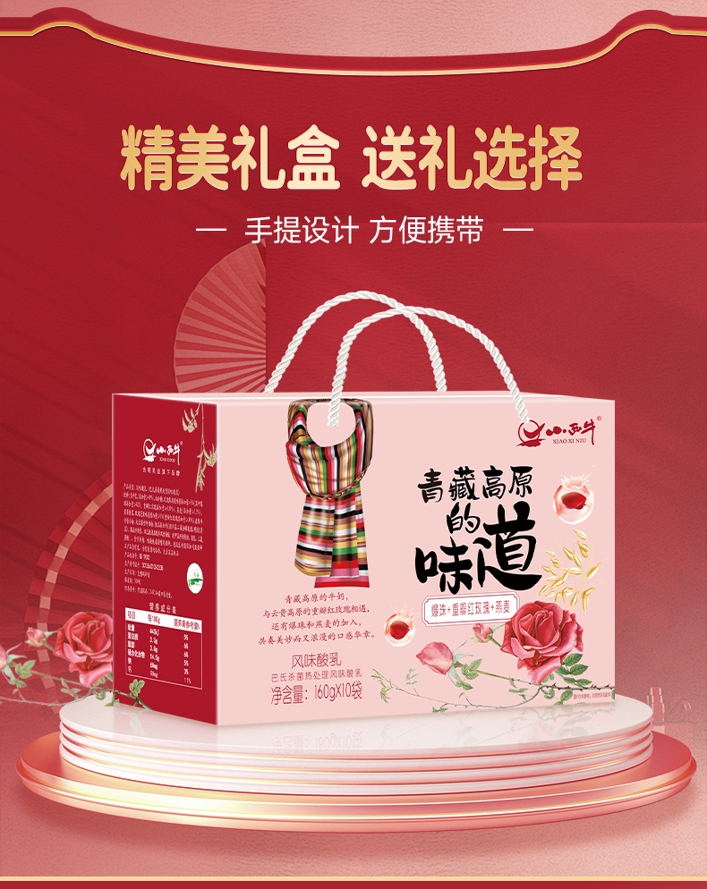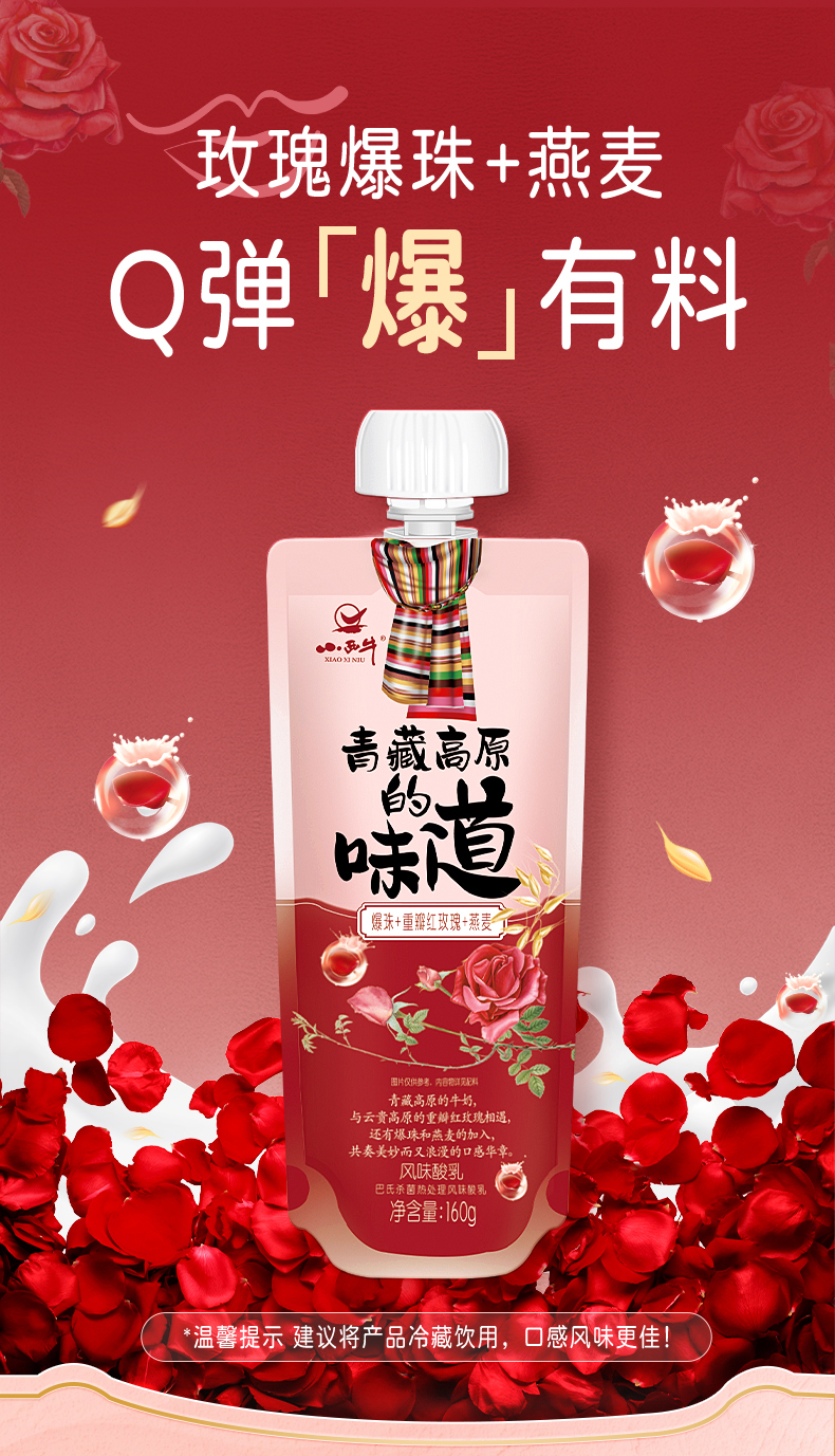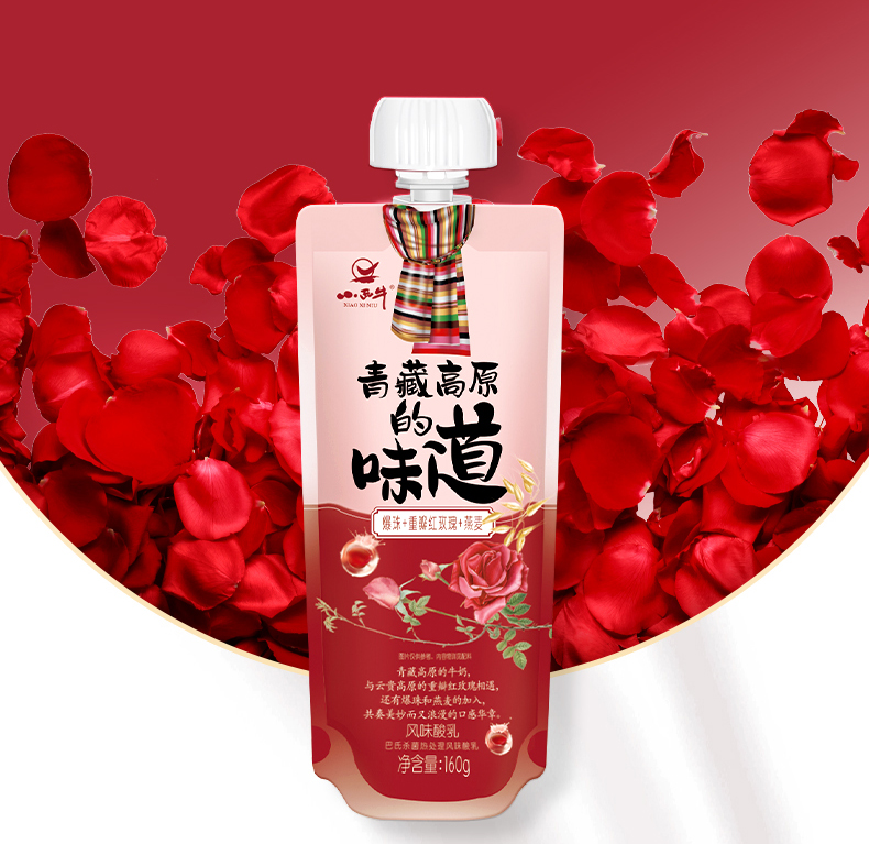 【光明&小西牛】常温100天保质期 青海自立袋爆珠+重瓣红玫瑰+燕麦酸奶 160g*10袋整箱装