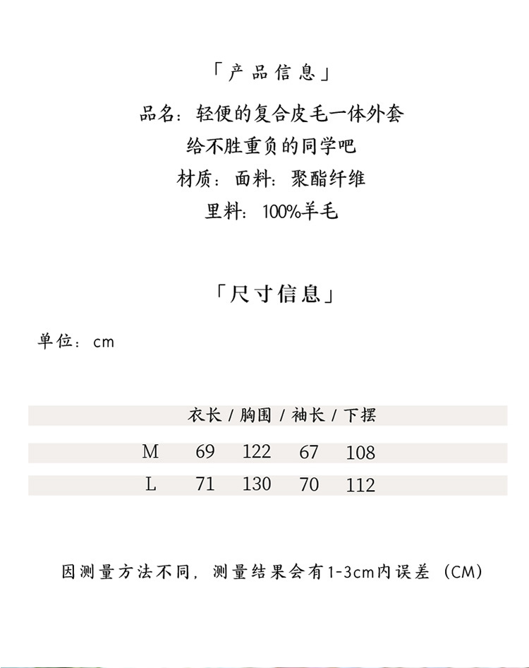 米马成衣 轻便的复合皮毛一体外套 给不胜重负的同学吧