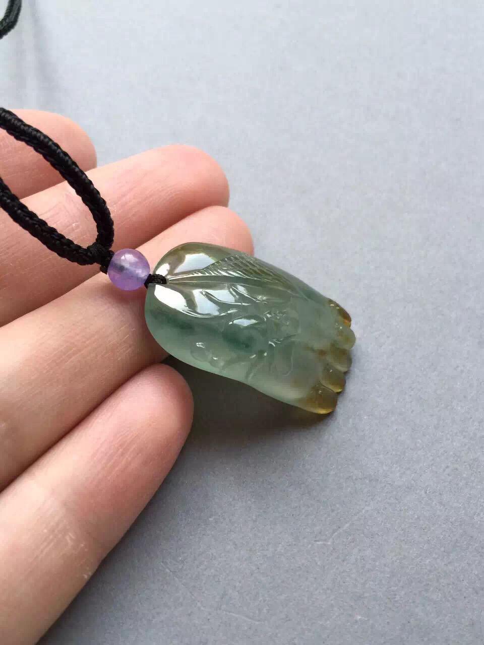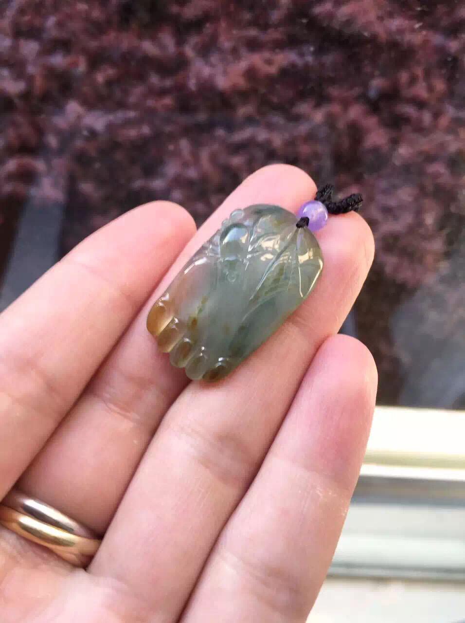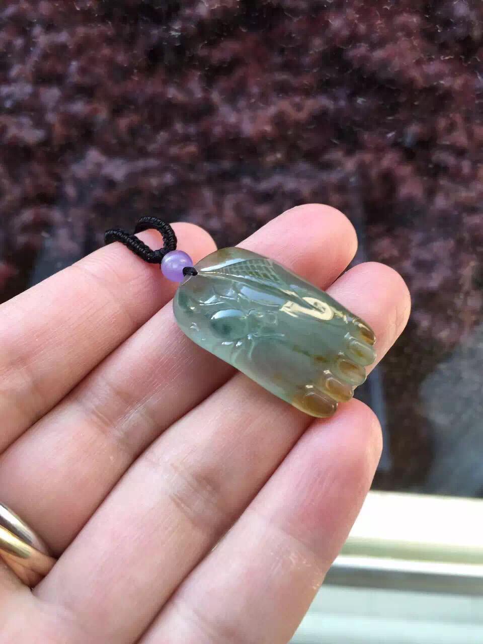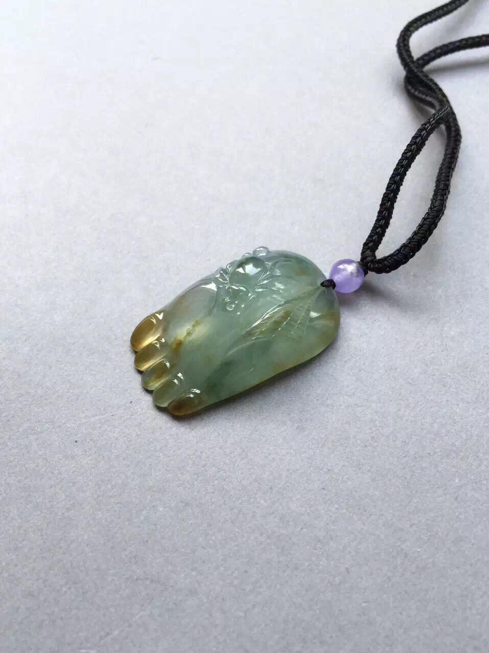 翡翠知足常乐,又叫喜从天降,收藏级大件精品,31.9*17.7*9.5mm。晴水高冰种,飘花,黄翡巧雕,料子大件,厚庄,超饱满,雕工精湛。蜘蛛,蛛网,大脚丫,惟妙惟肖,妙趣横生,黄翡巧妙用作脚趾,整件作品大有可观。这是一件向传统致敬的作品,知(蜘)足常乐可谓翡翠玉器的经典保留节目,几千年历史传承的丰富文化内涵。一件充满底蕴的作品,以后再也做不出第二件同样的,推荐收藏