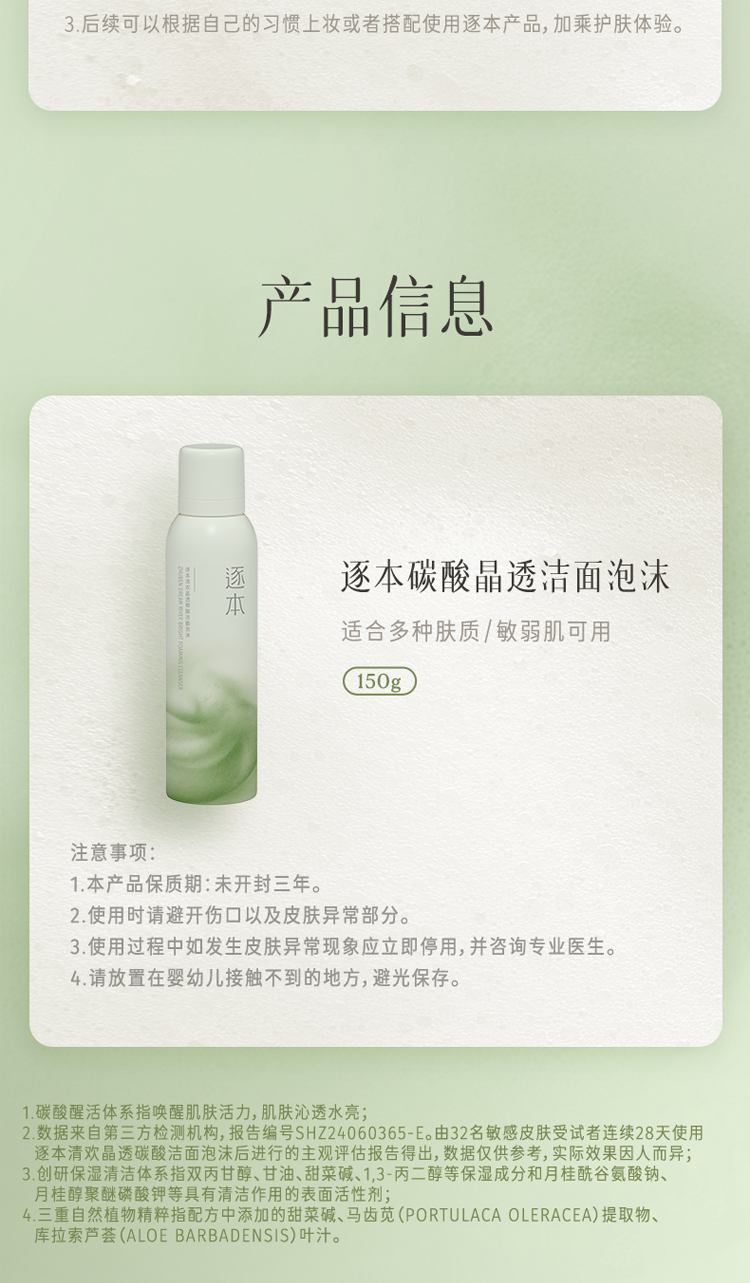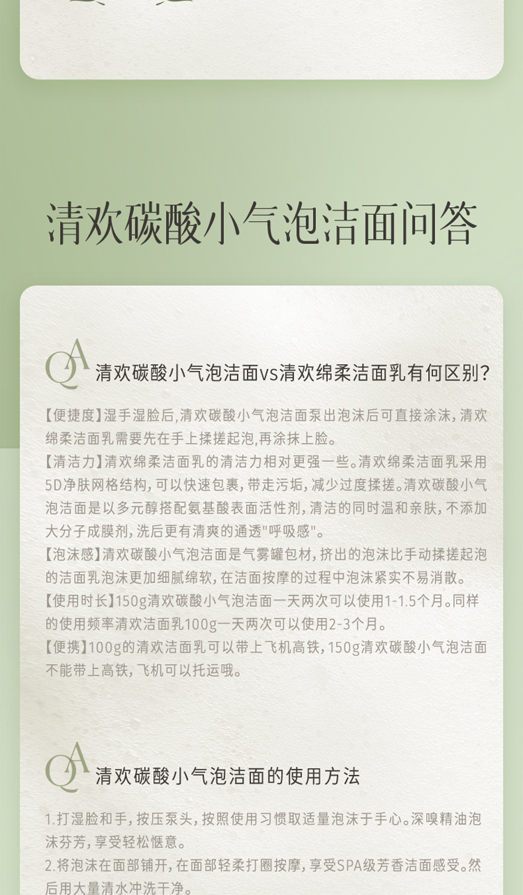 清欢晶透碳酸洁面泡沫 深层清洁 补水保湿 洁面泡沫150g