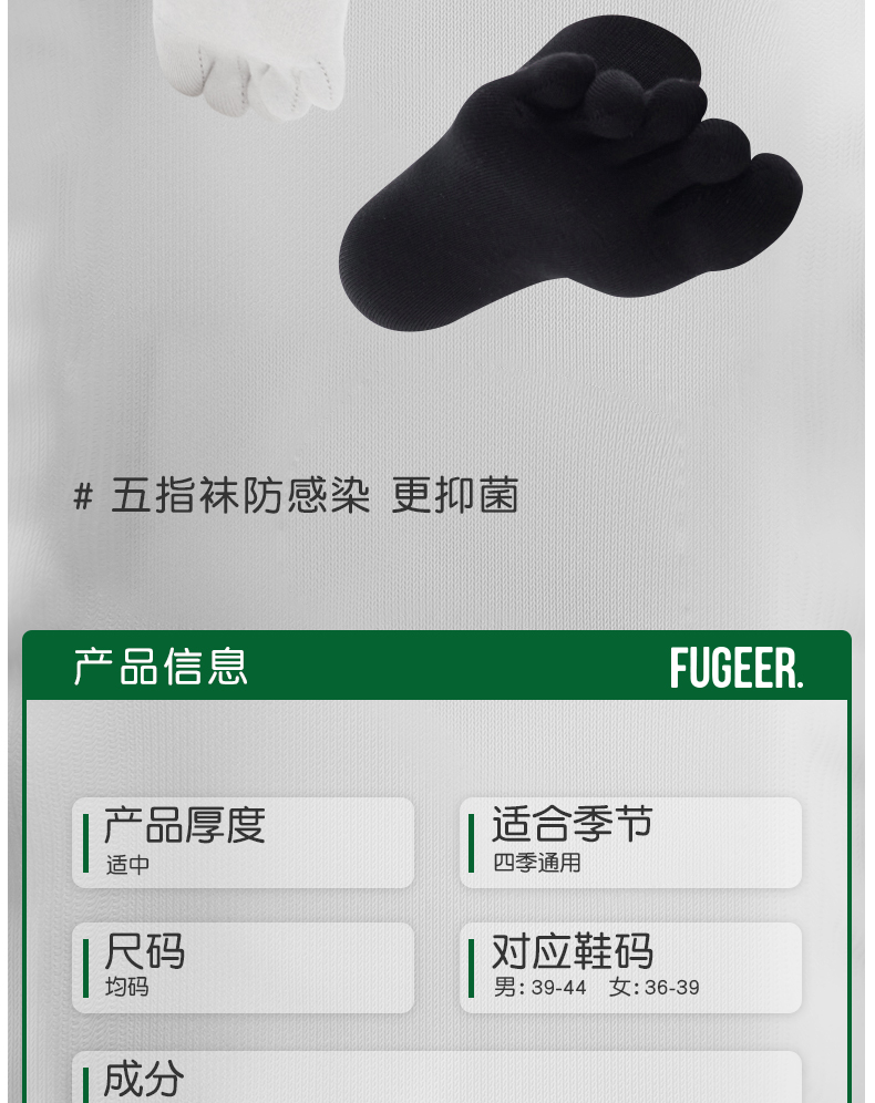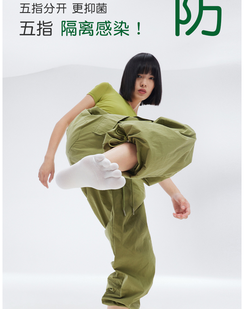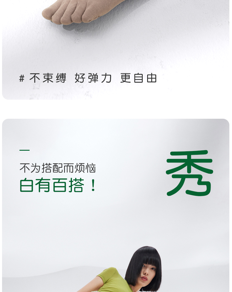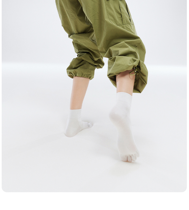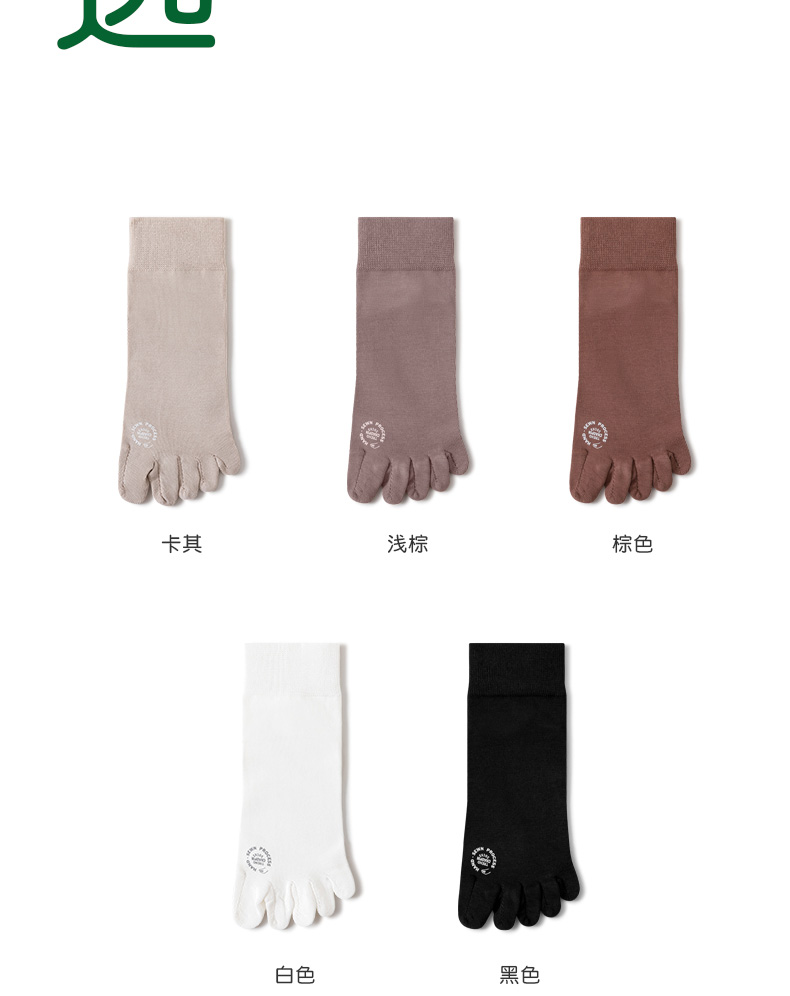 副歌五指袜子女纯棉基础款纯色中筒袜全棉长袜分趾袜防臭无骨棉袜