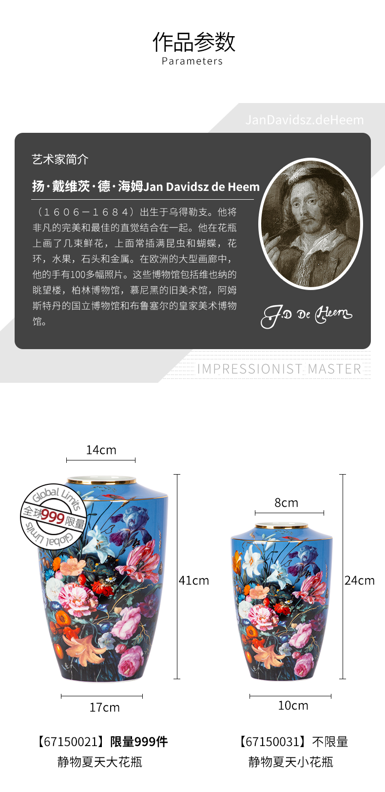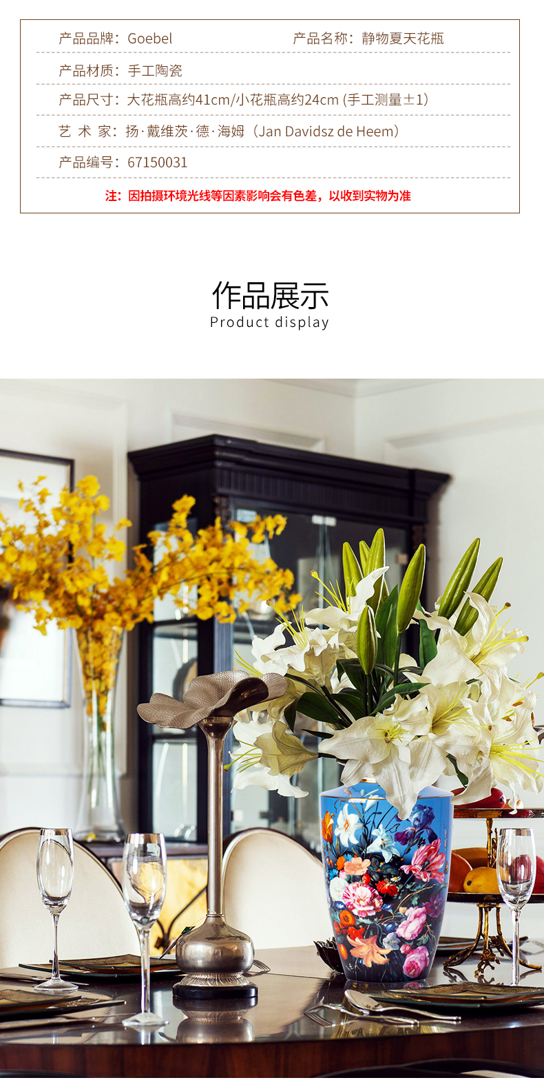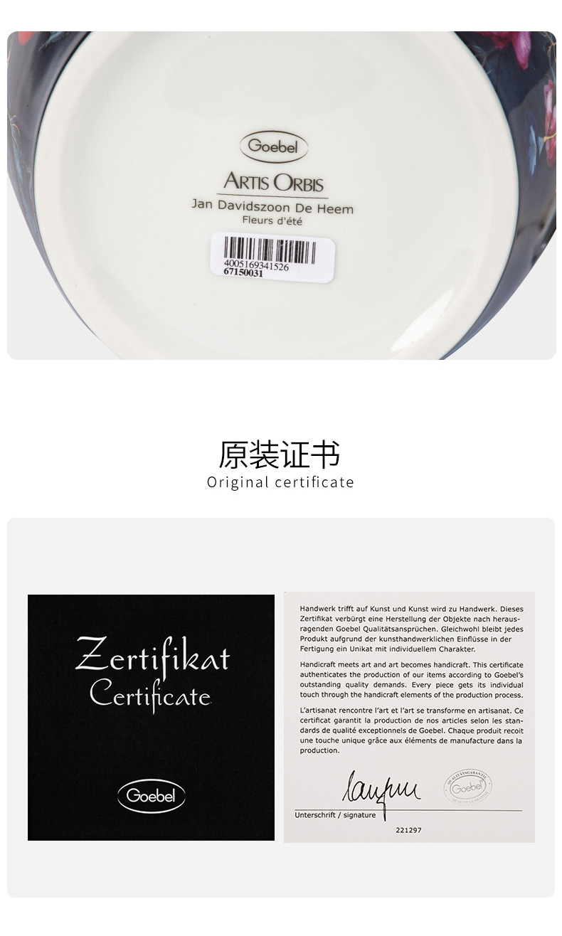 【6F】德国高宝Goebel进口陶瓷花瓶欧式客厅玄关桌面干花小花瓶家居饰品