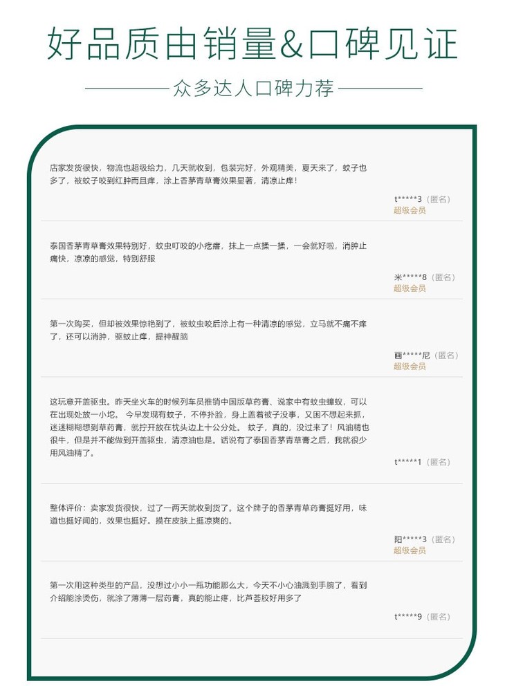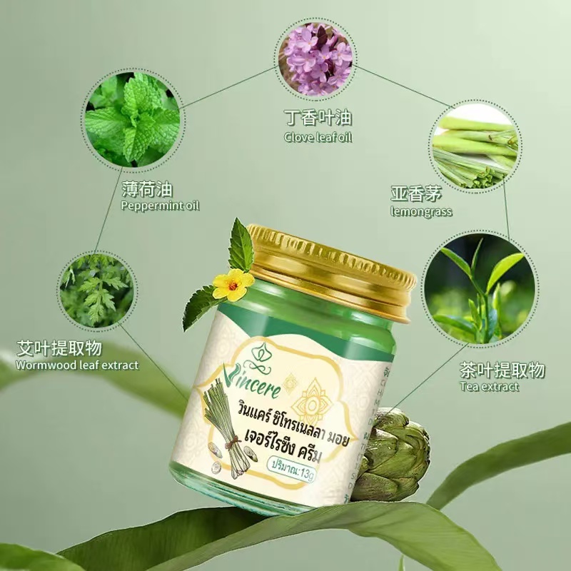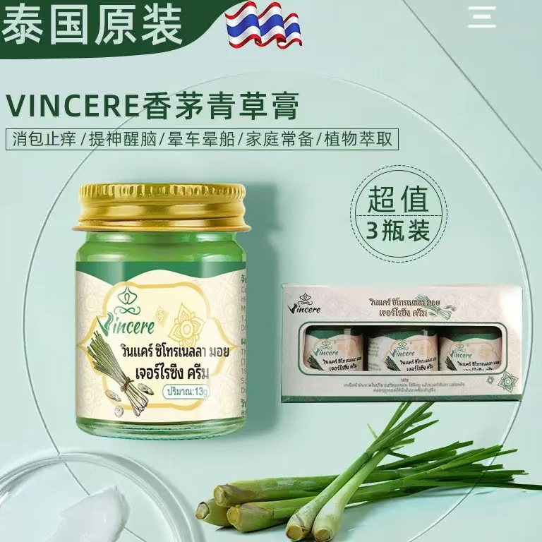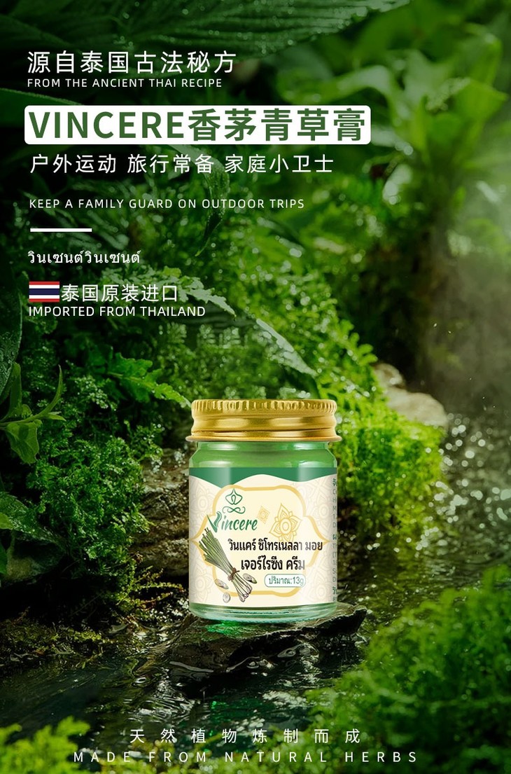 VINCERE的老虎膏和香蕉膏上了蛮久了,大家一直在用,夏天了了,就把香茅青草膏也上一上!这真是泰国国宝,奥运会时泰国运动员一休息就闻闻,也是很出圈了。。。是很清新的香茅味,凉凉的,用法也很多样,在当地还蛮有名,算是家喻户晓,居家旅行必备了!