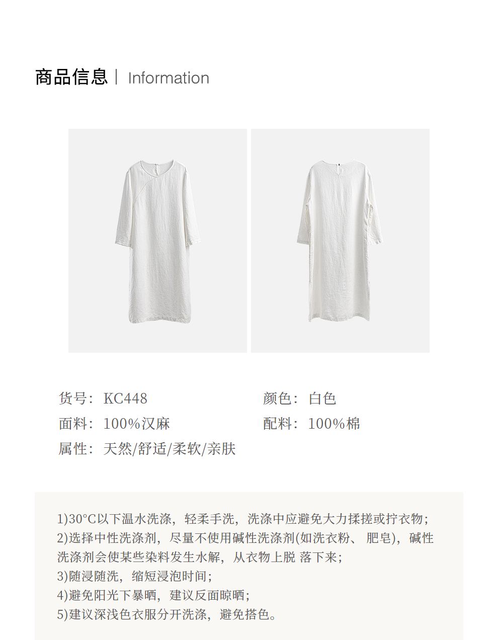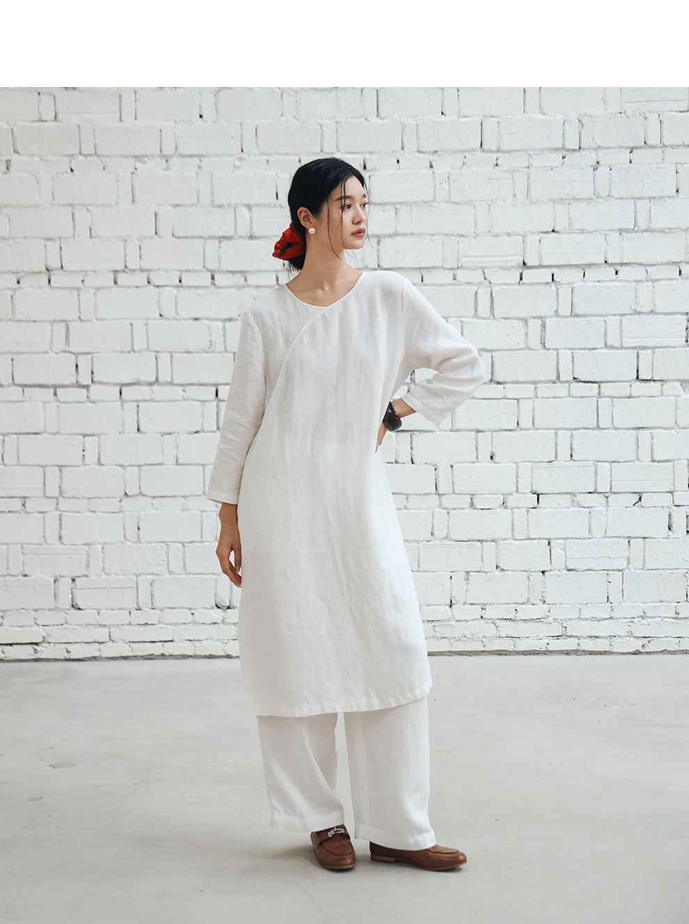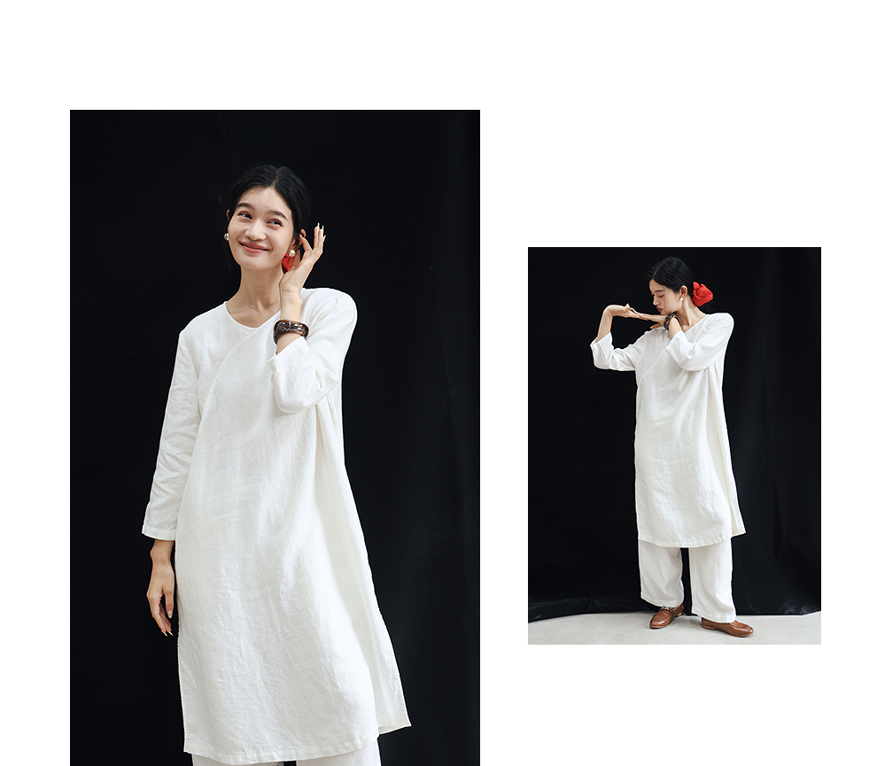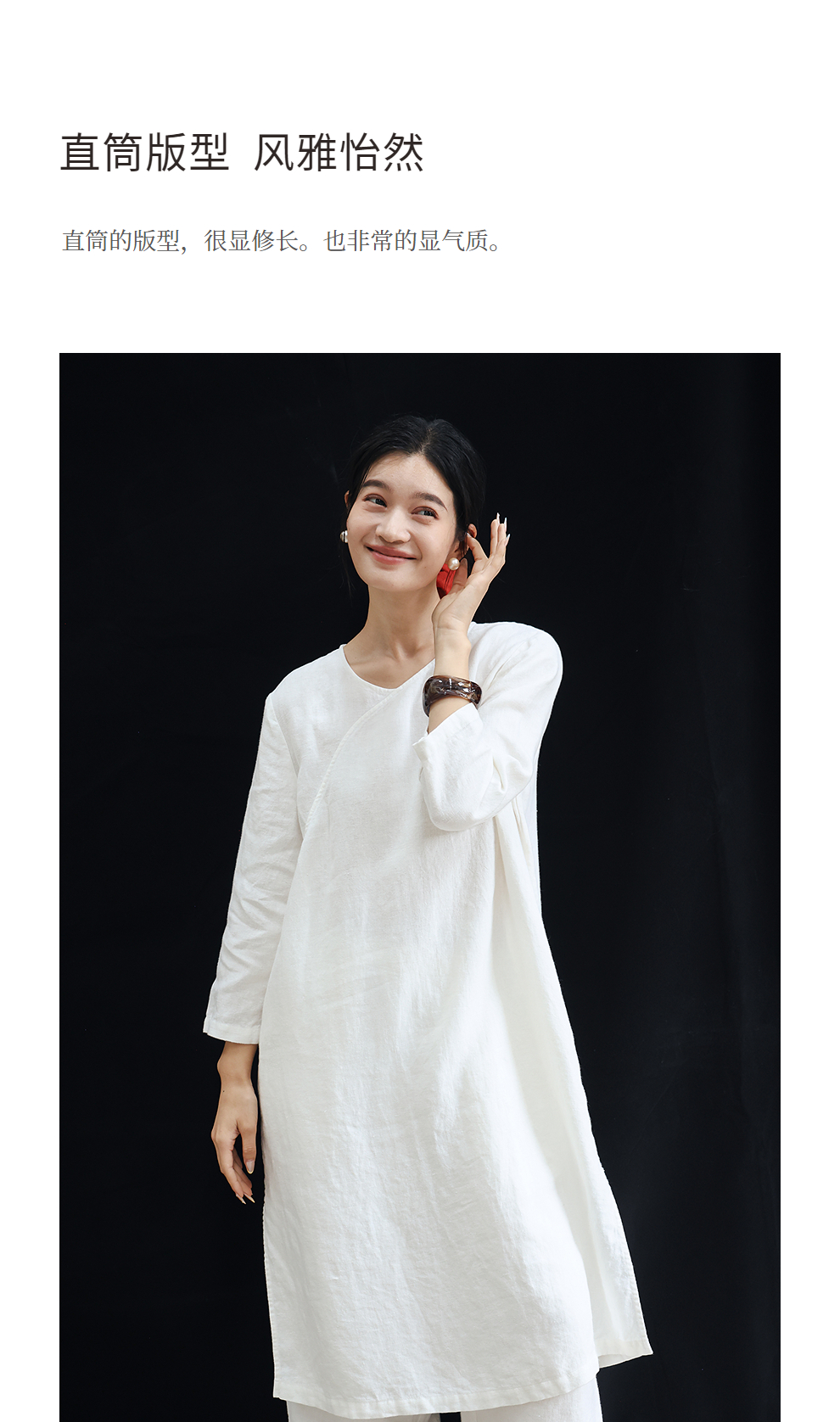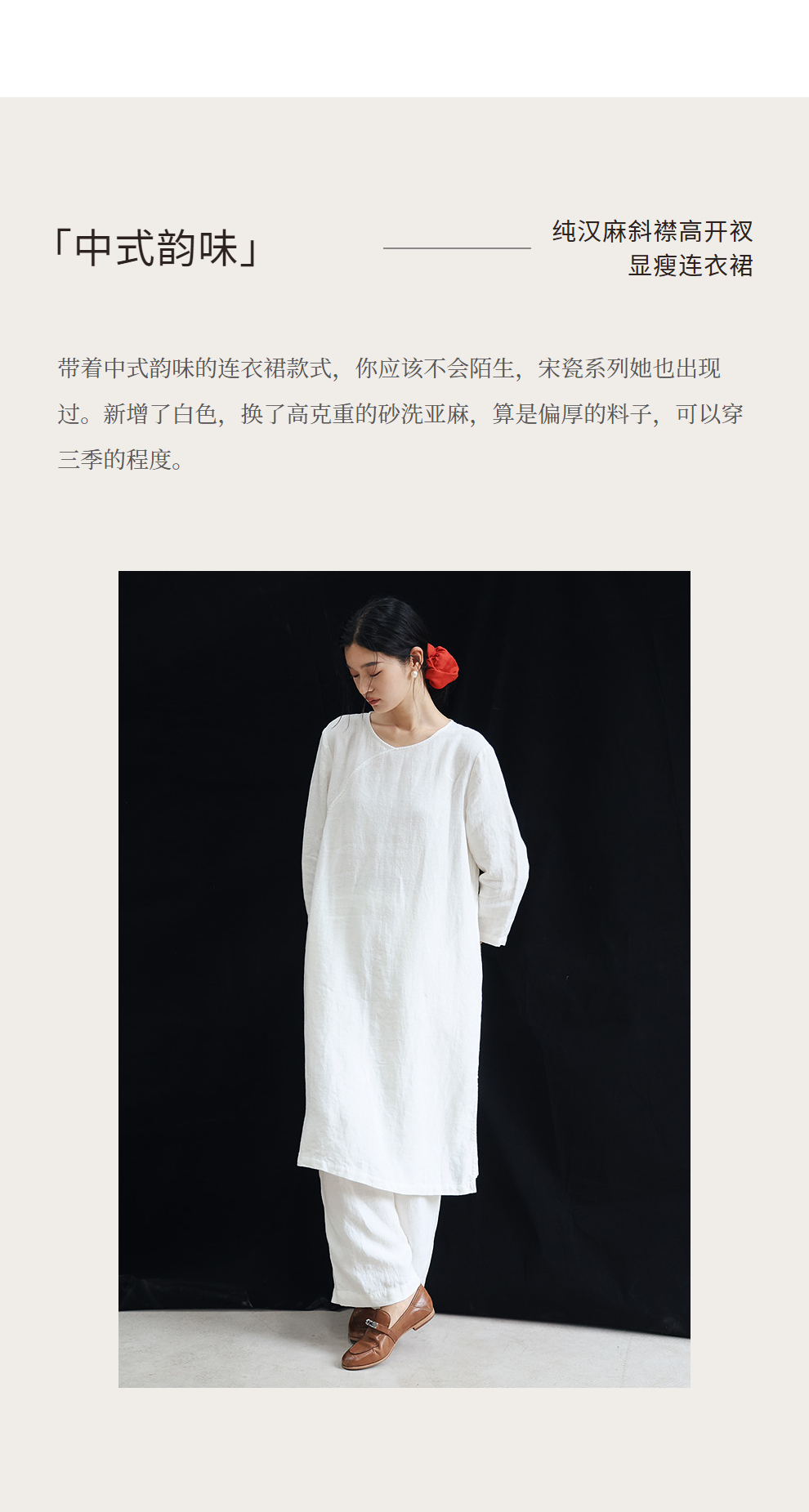 绽放女装448朵/【黑白灰系列】纯汉麻砂洗斜襟高开衩显瘦连衣裙女