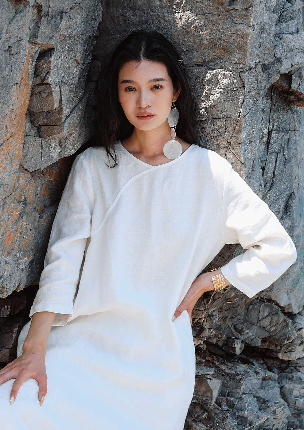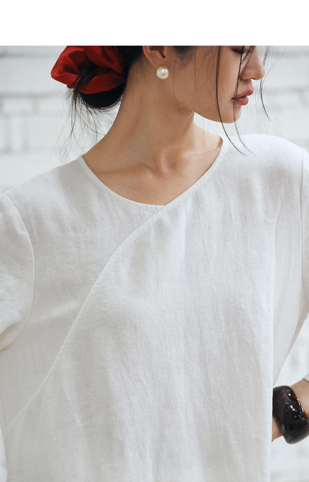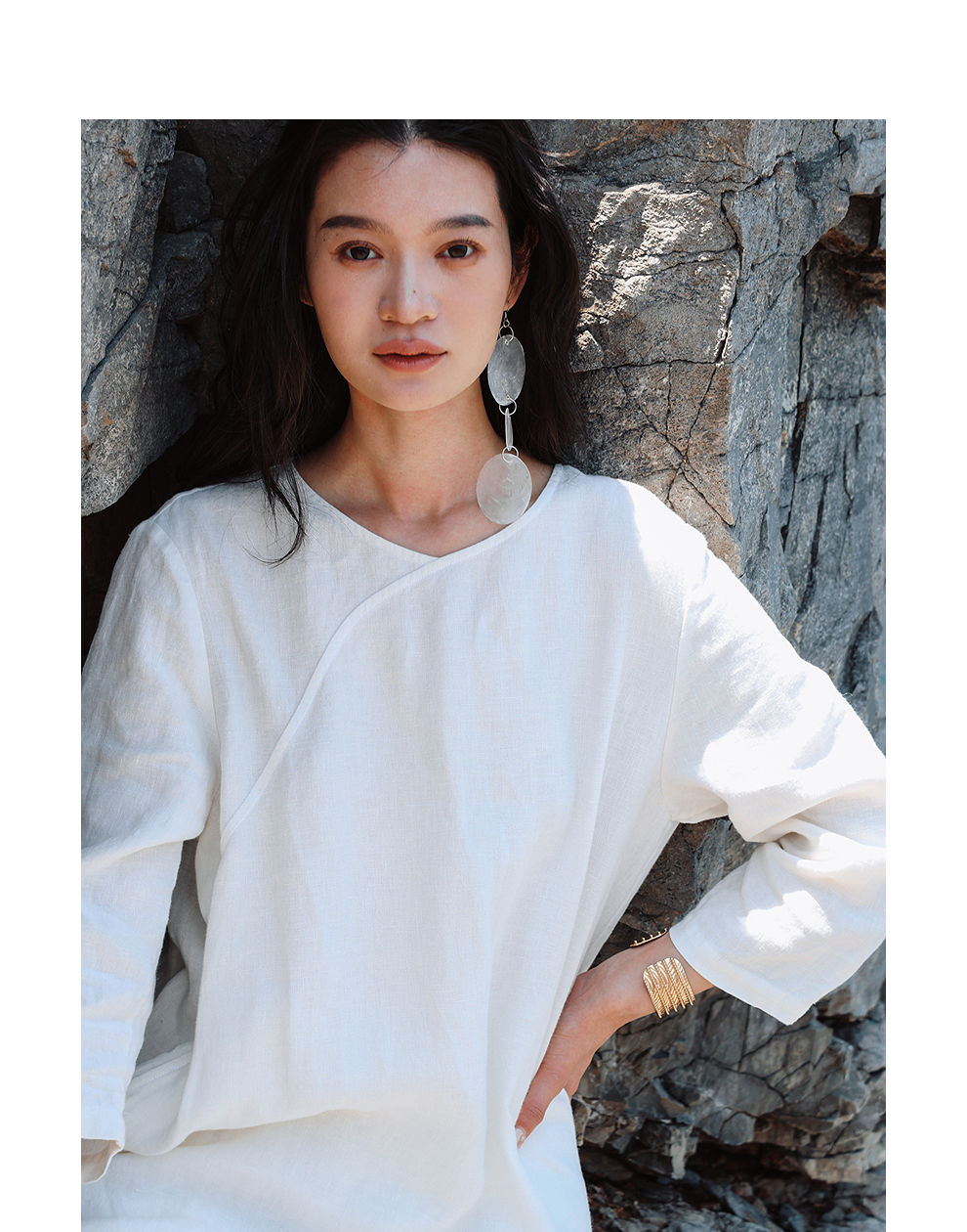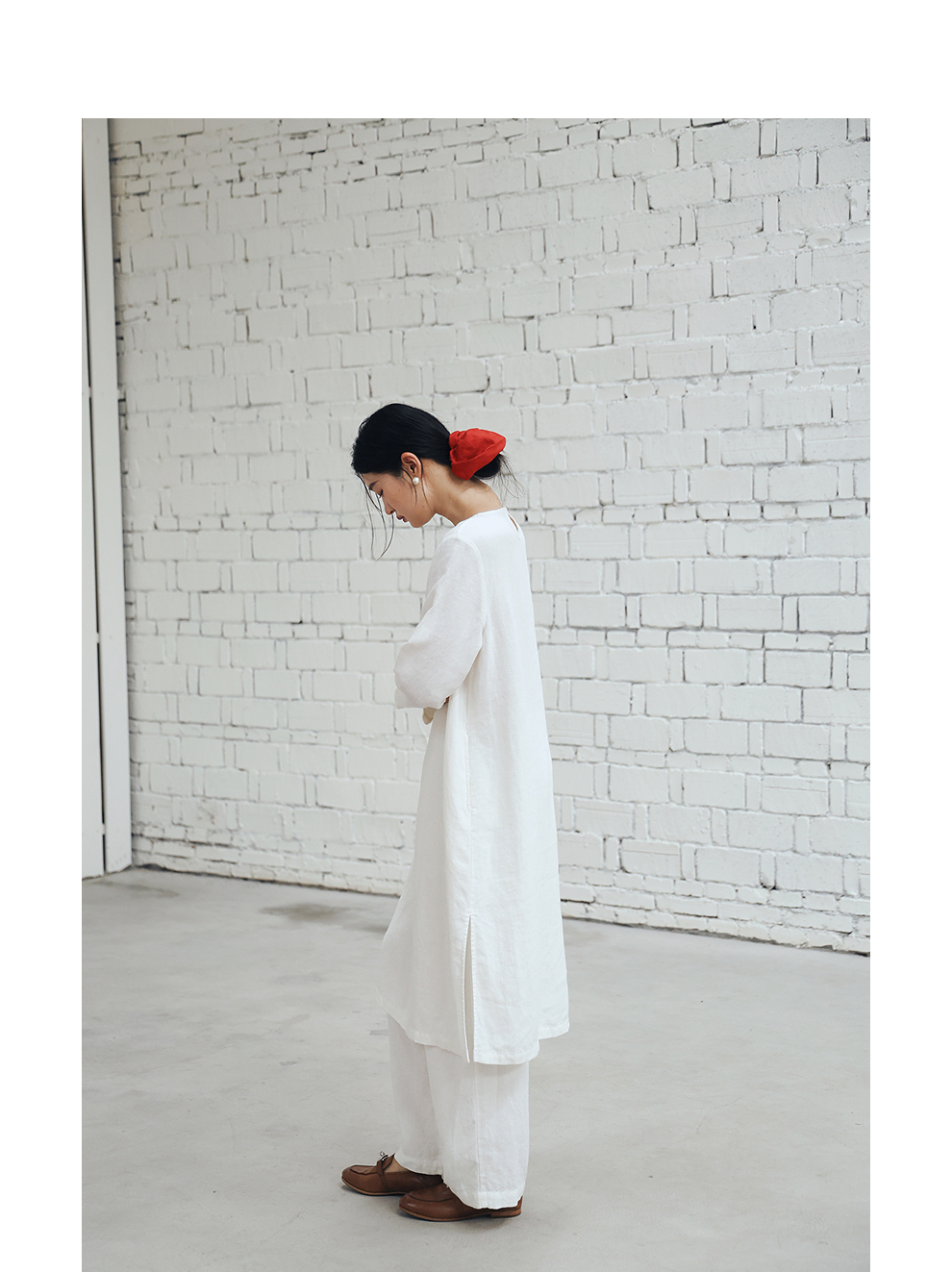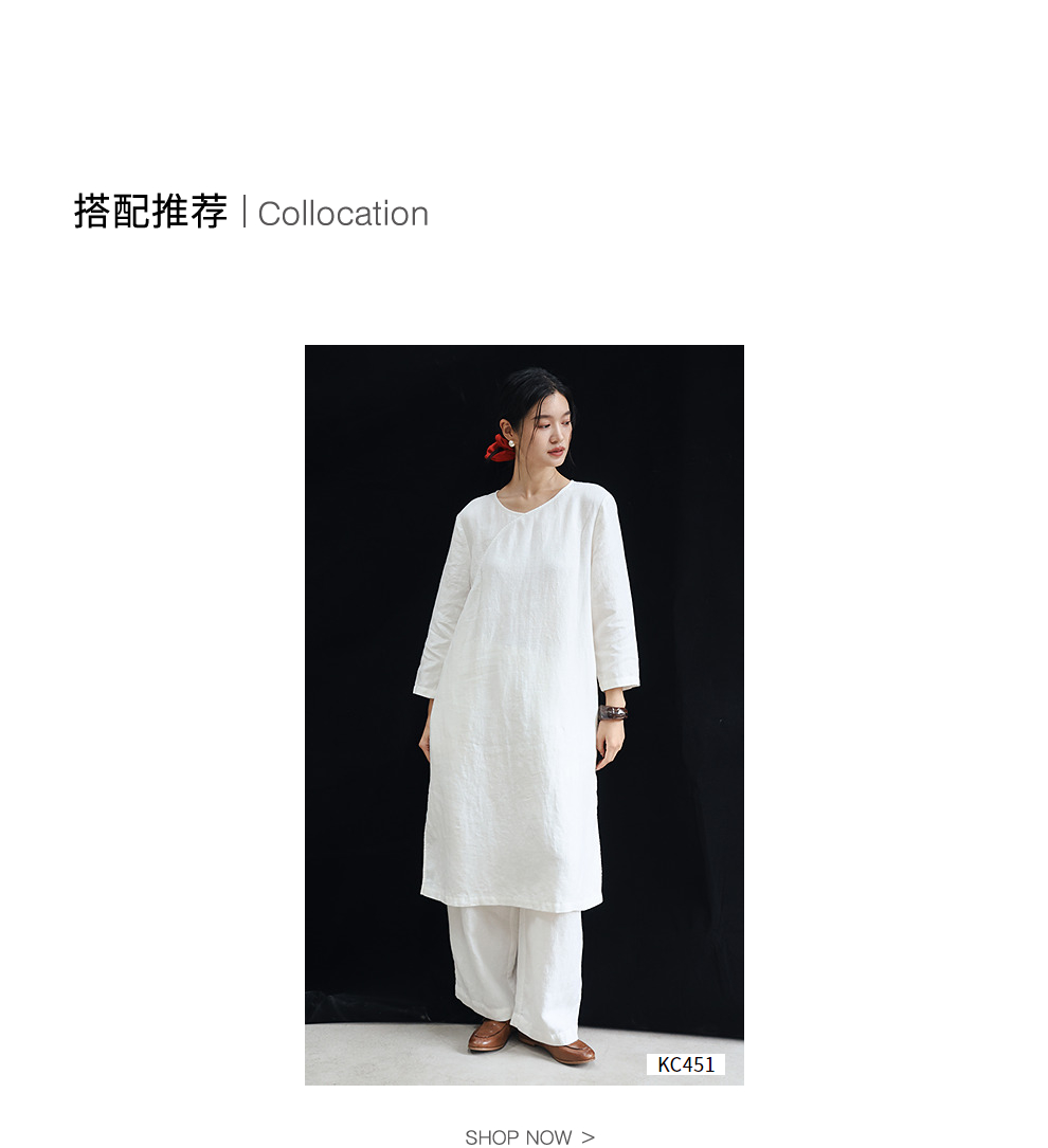 绽放女装448朵/【黑白灰系列】纯汉麻砂洗斜襟高开衩显瘦连衣裙女