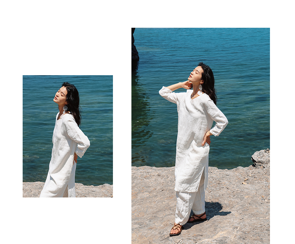 以天然亚麻为载体,融合热烈色彩与自在剪裁为身在城市、心怀远方的女性提供兼具美学与舒适的旅行着装