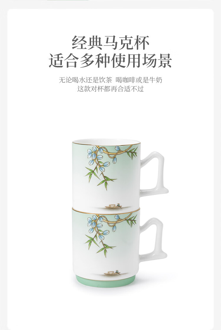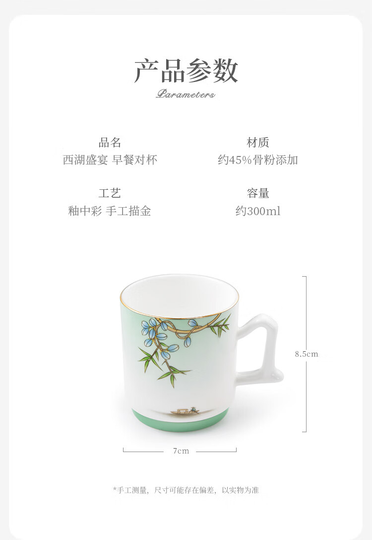 【6F】玛戈隆特【乔迁礼】西湖盛宴茶杯对杯带把手马克杯家用办公室杯子 西湖盛宴对杯 300ml 2只 2件