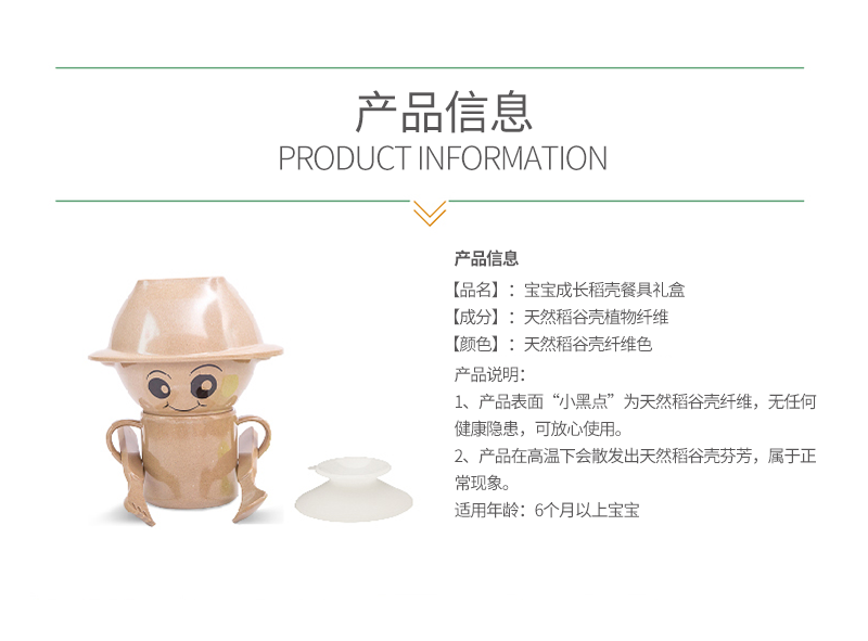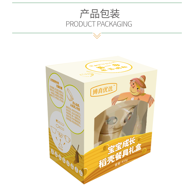 【博真优选】儿童稻壳餐具礼盒*1套(碗+杯+刀叉餐具)