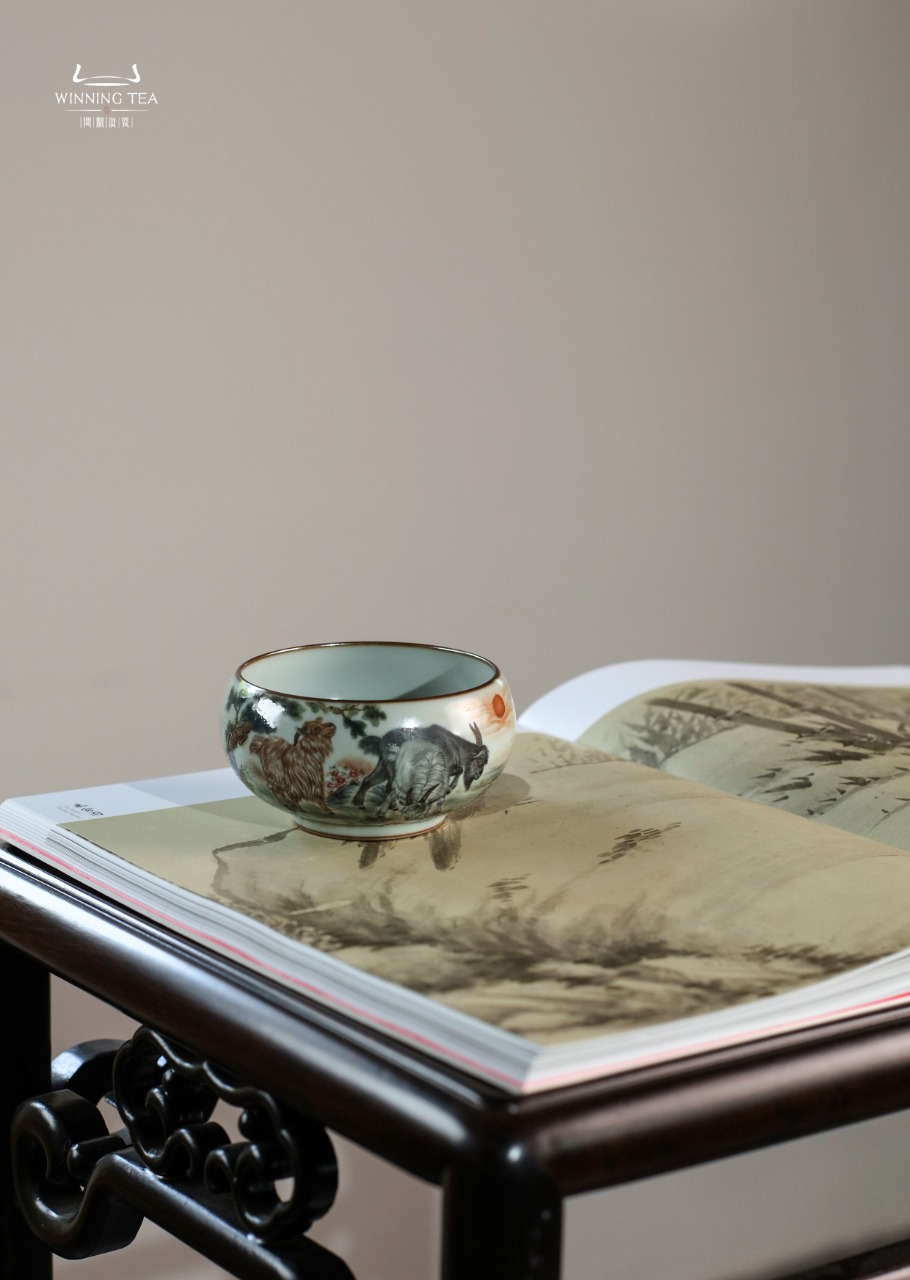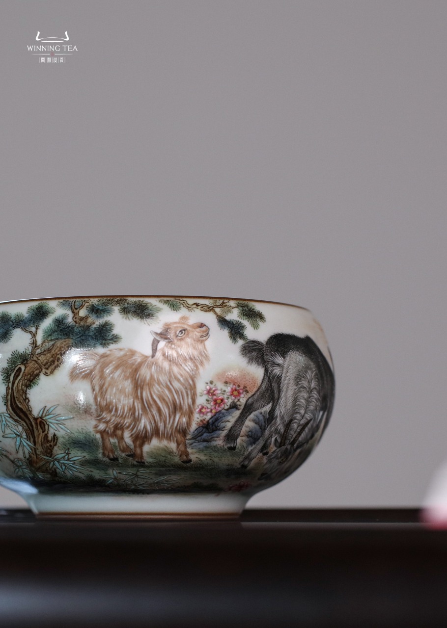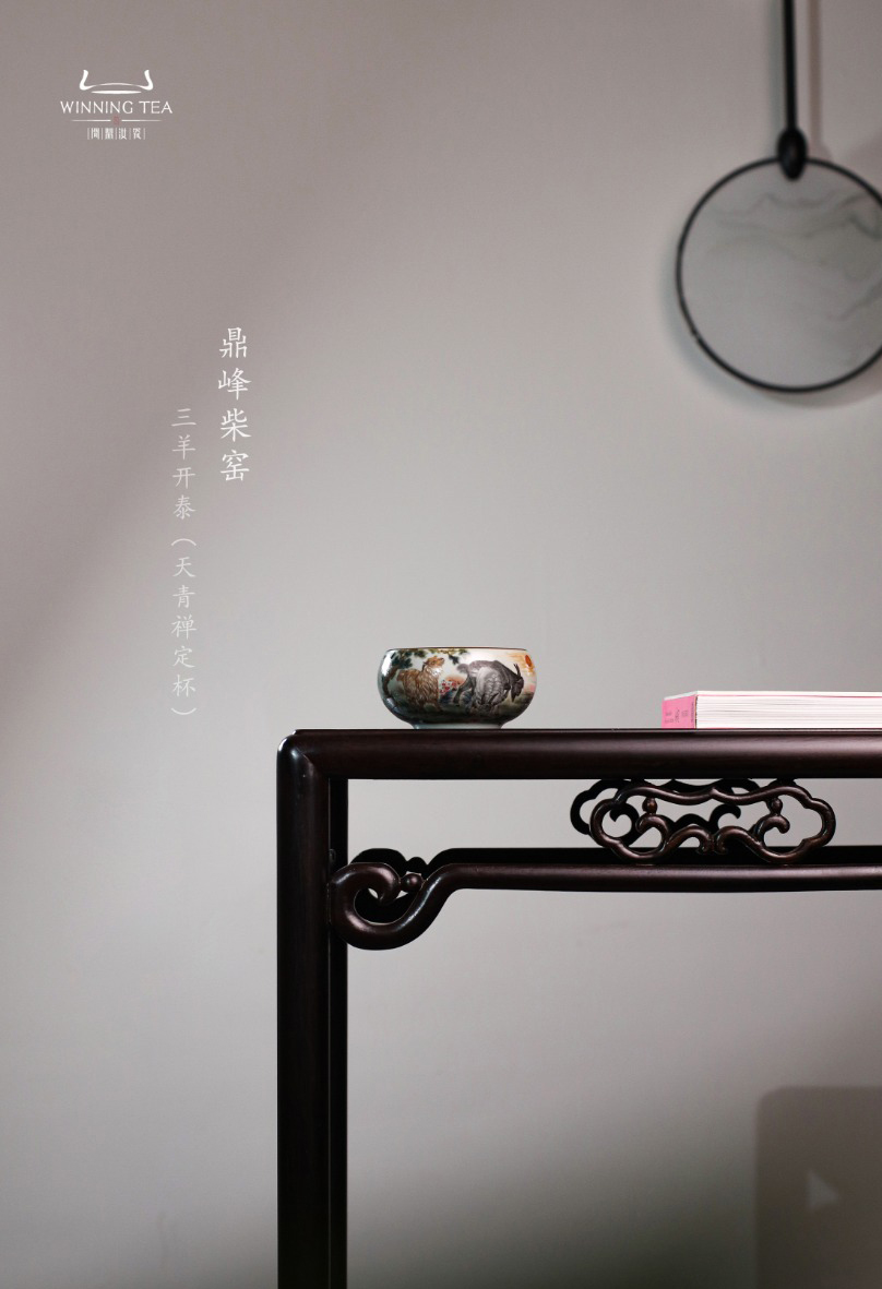 问鼎汝瓷鼎峰柴窑天青禅定杯(三羊开泰)(缺货)