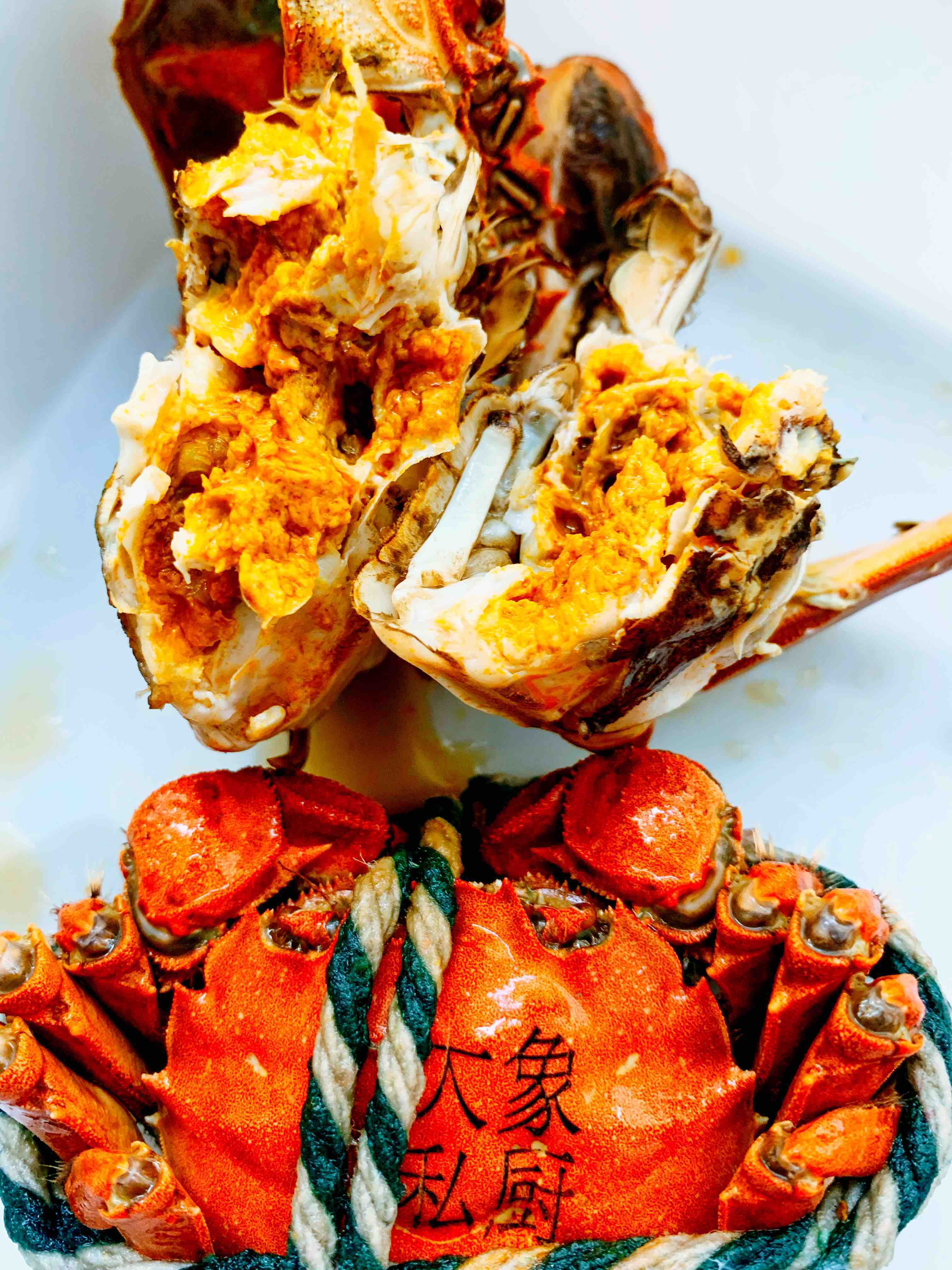 螃蟹的蟹黄和蟹膏混合上