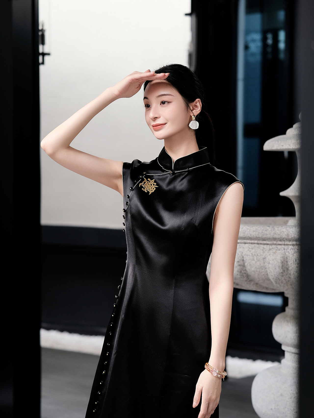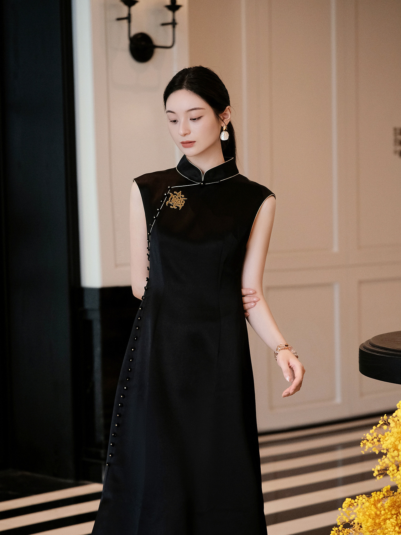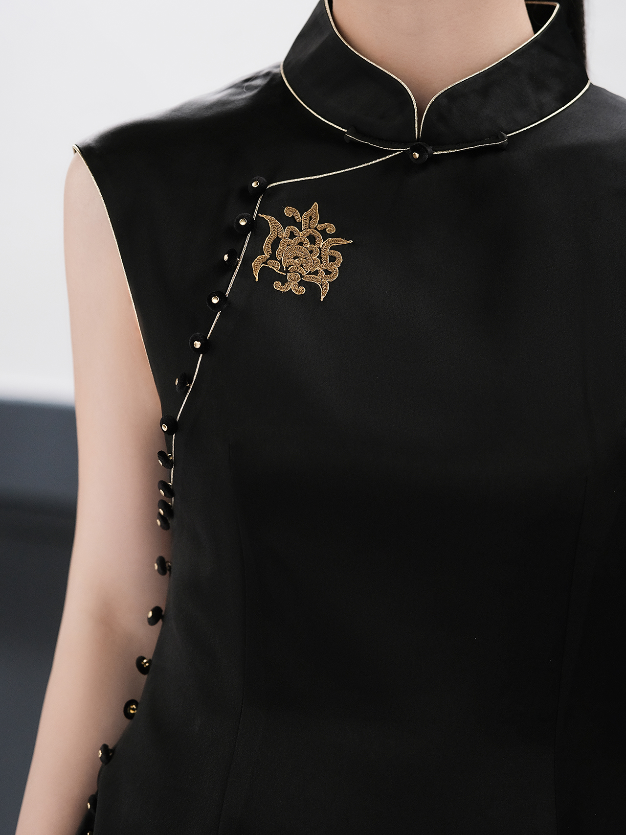 盛唐婧| 新中式立领苗绣醋酸修身连衣裙