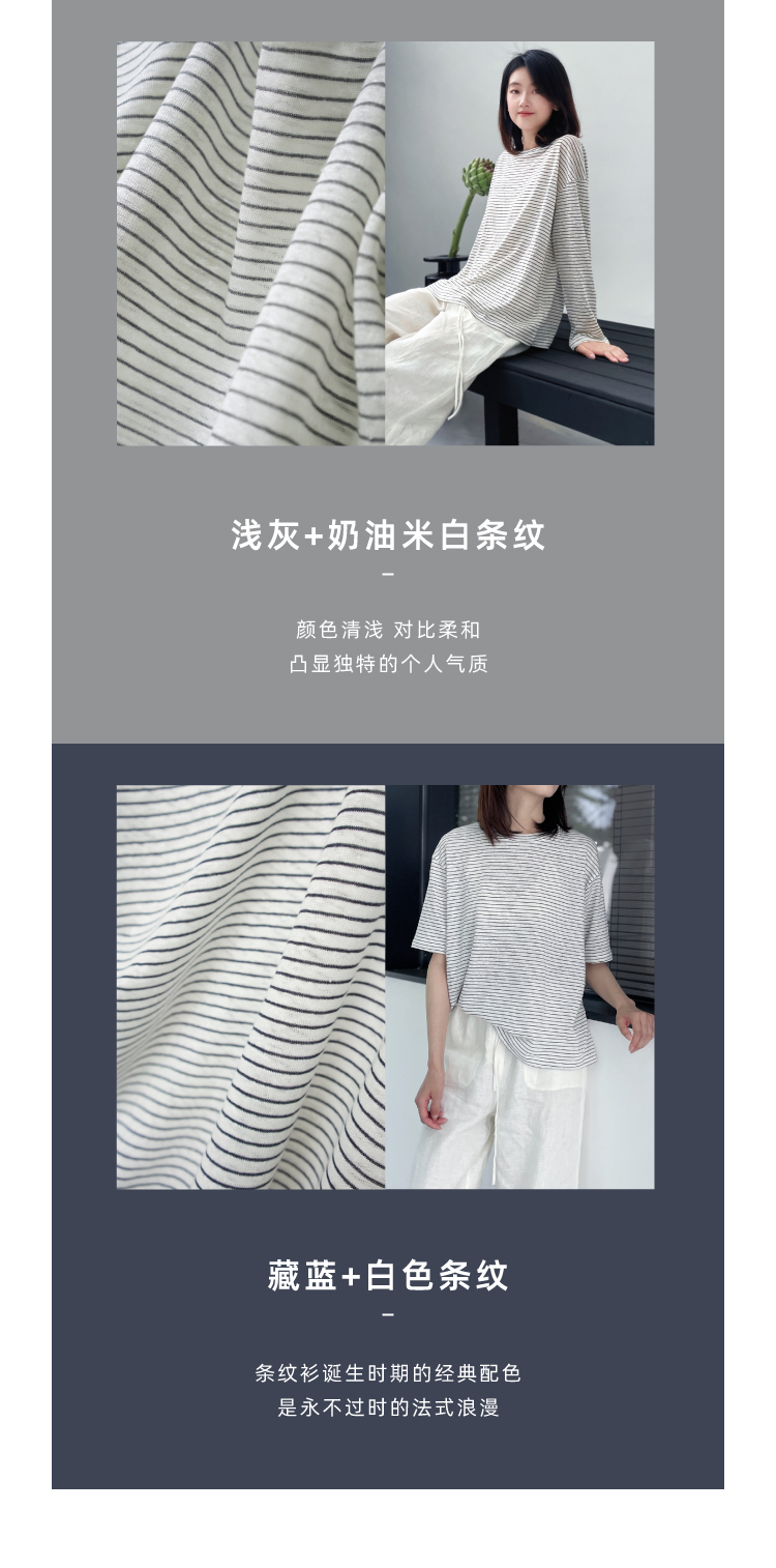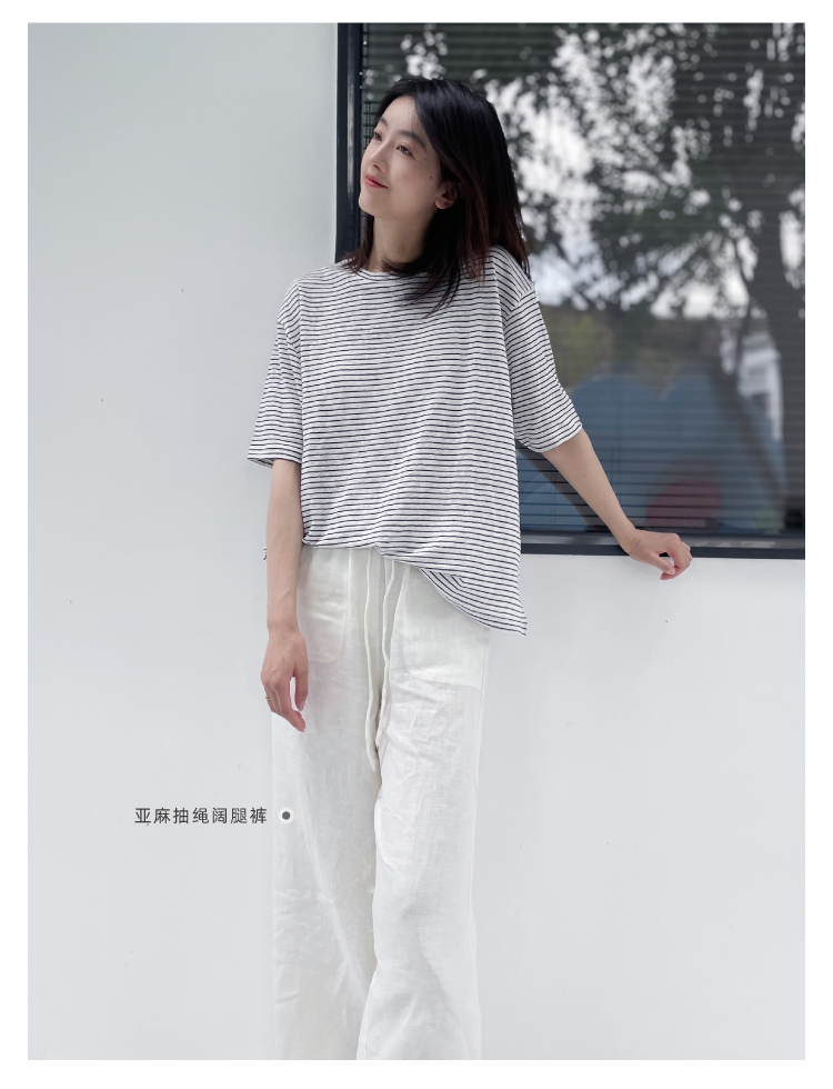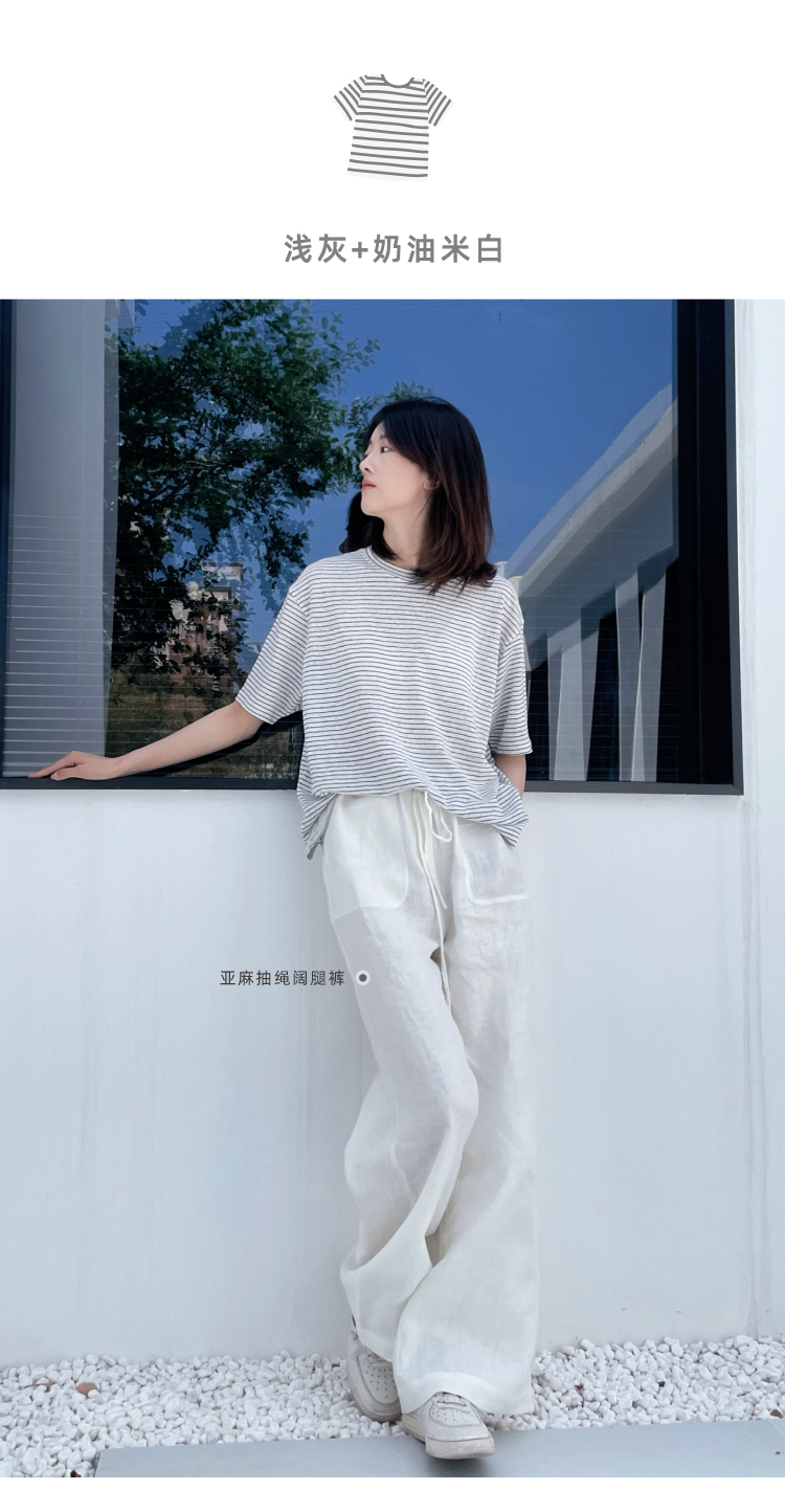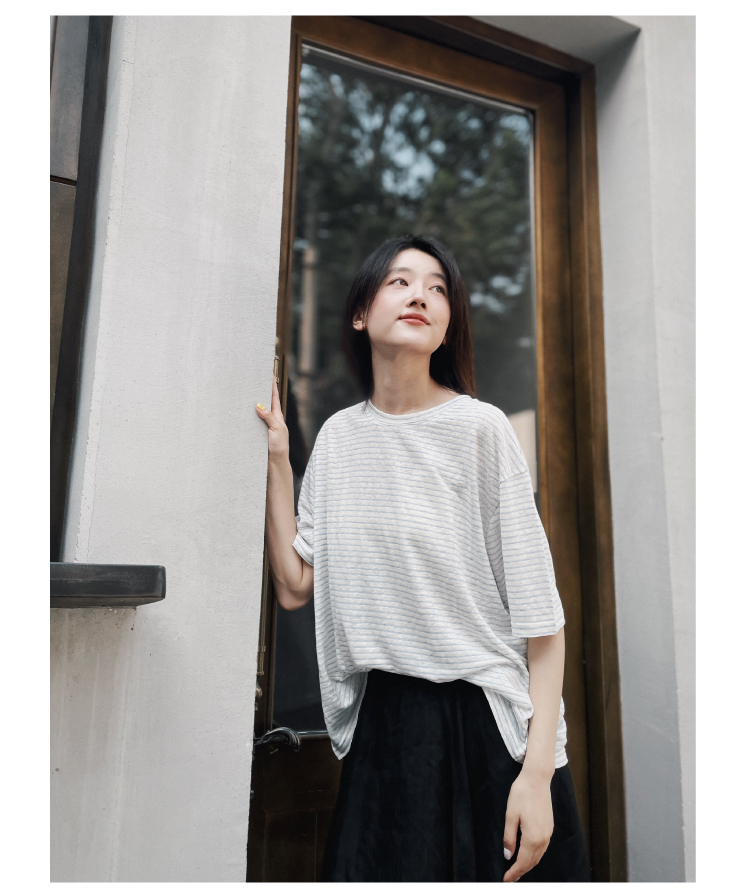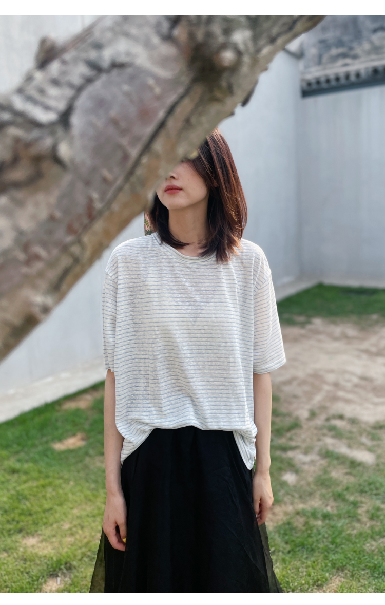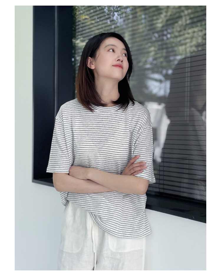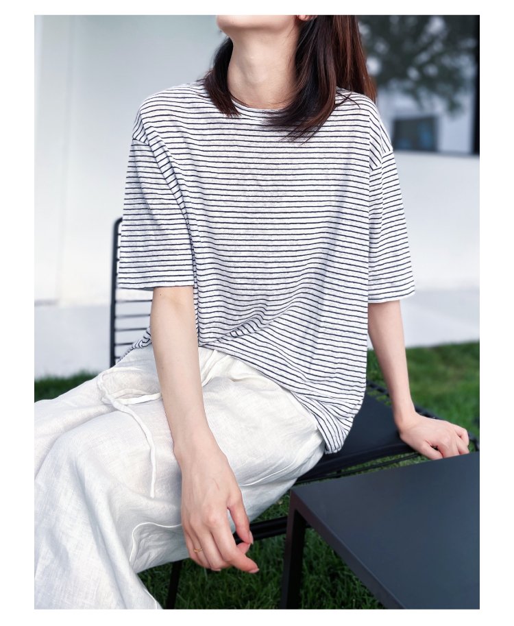 2024SS 圆领亚麻条纹T恤