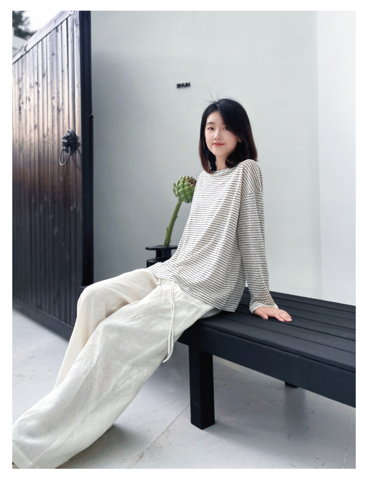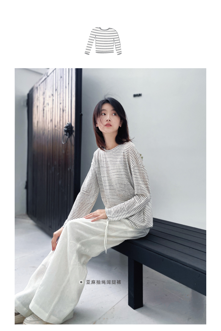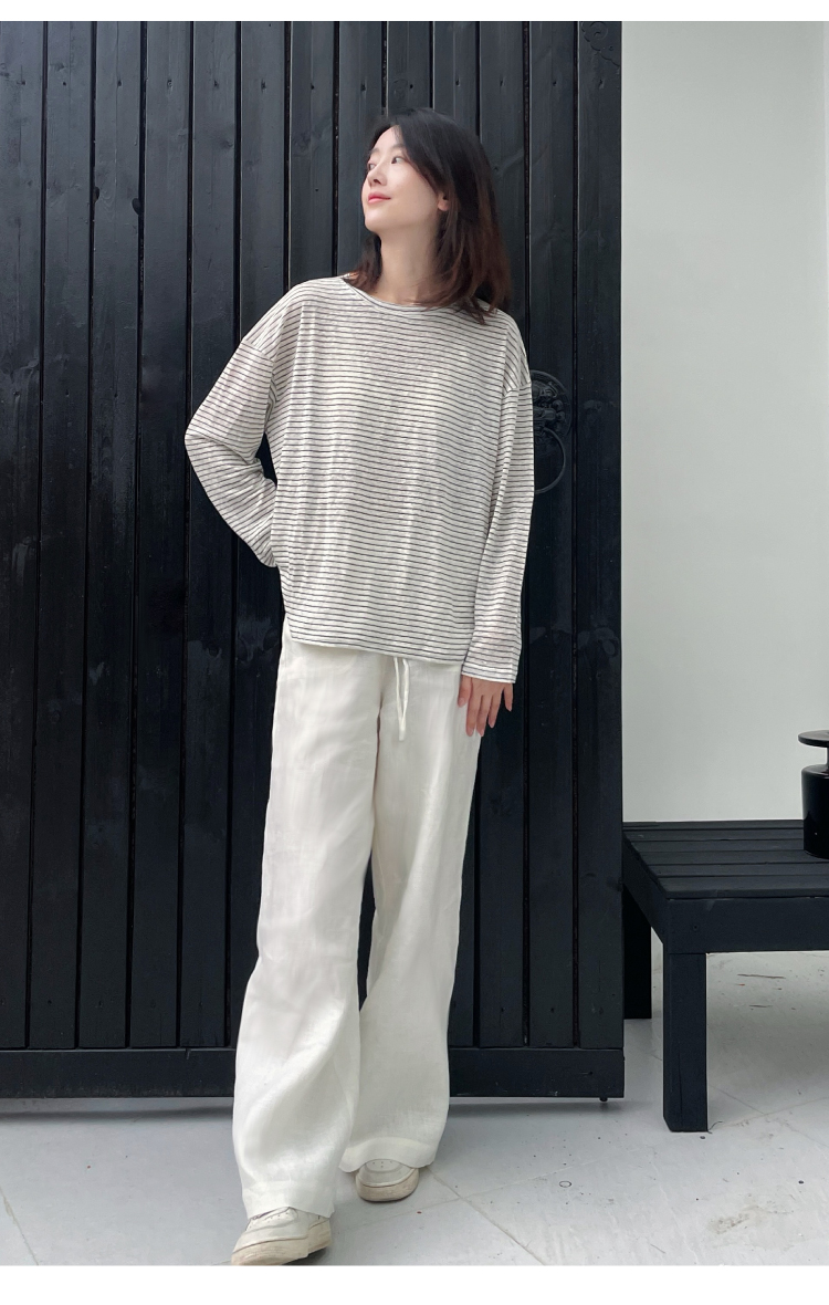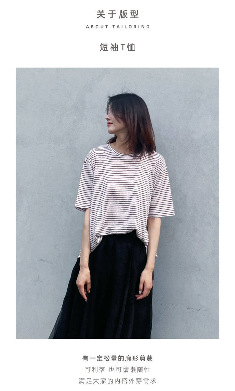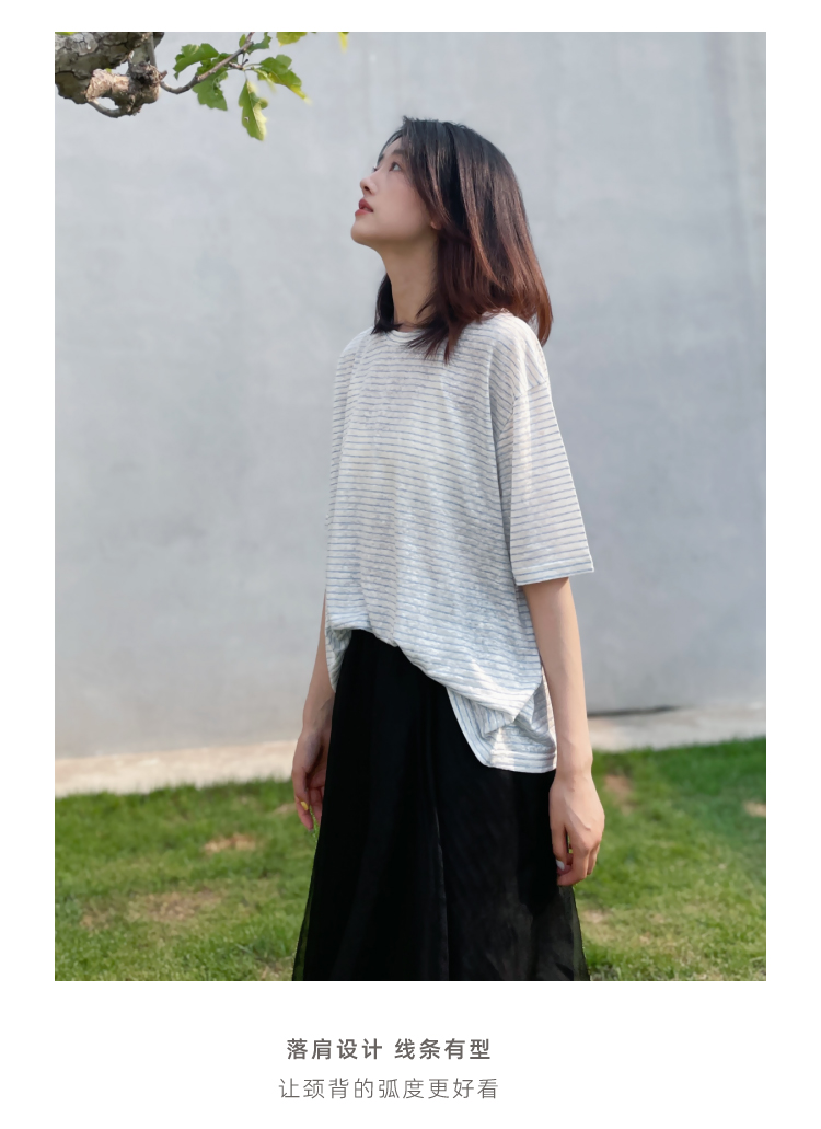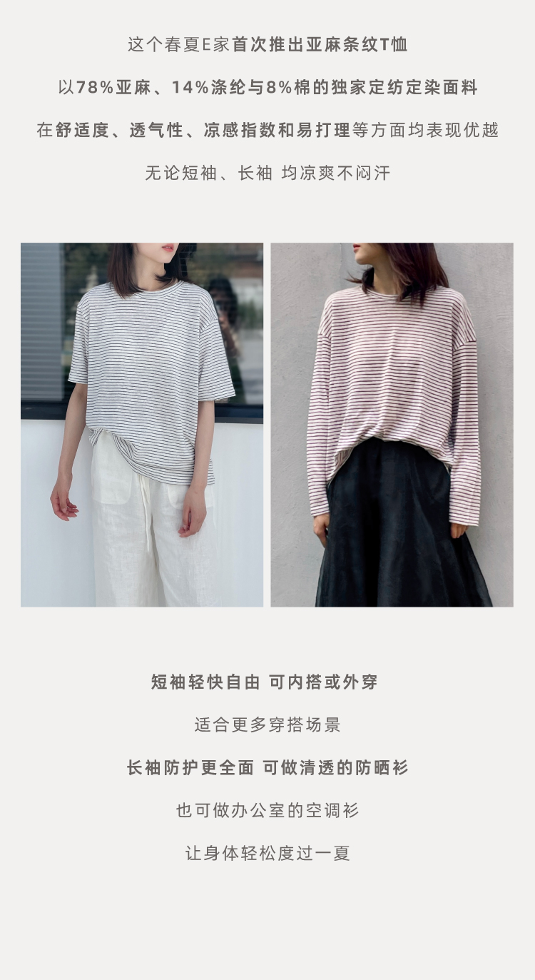 2024SS 圆领亚麻条纹T恤