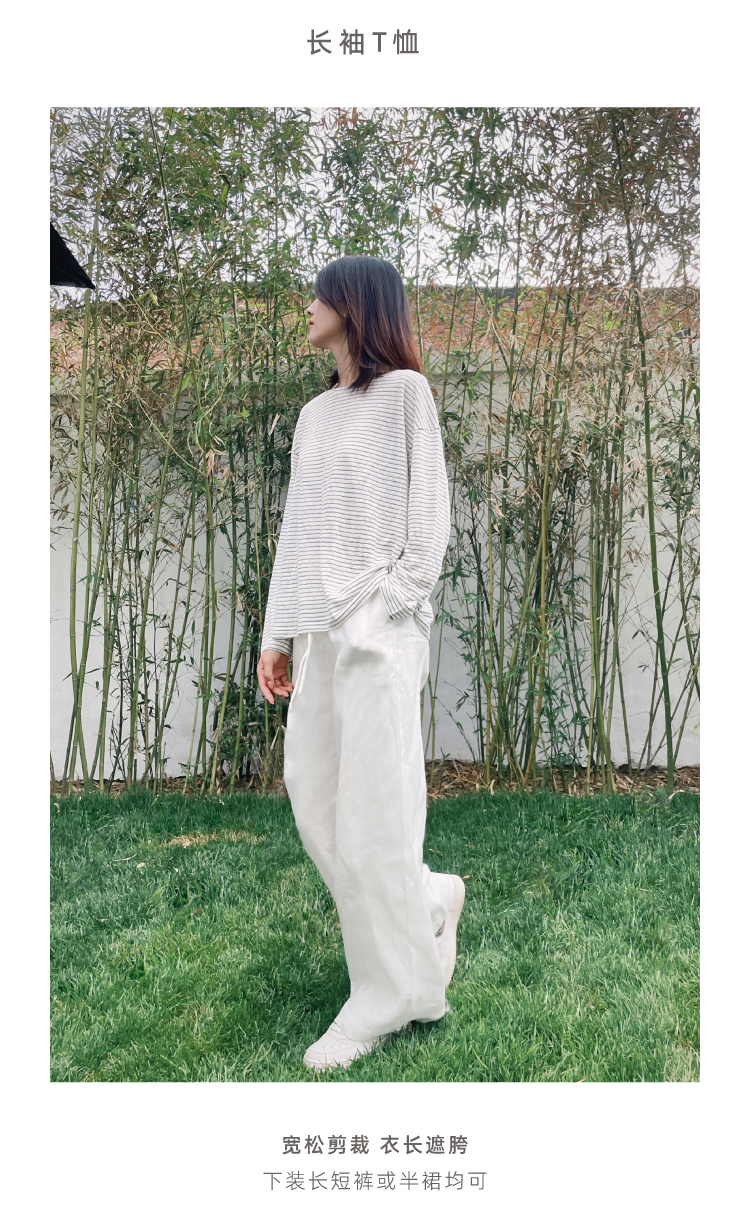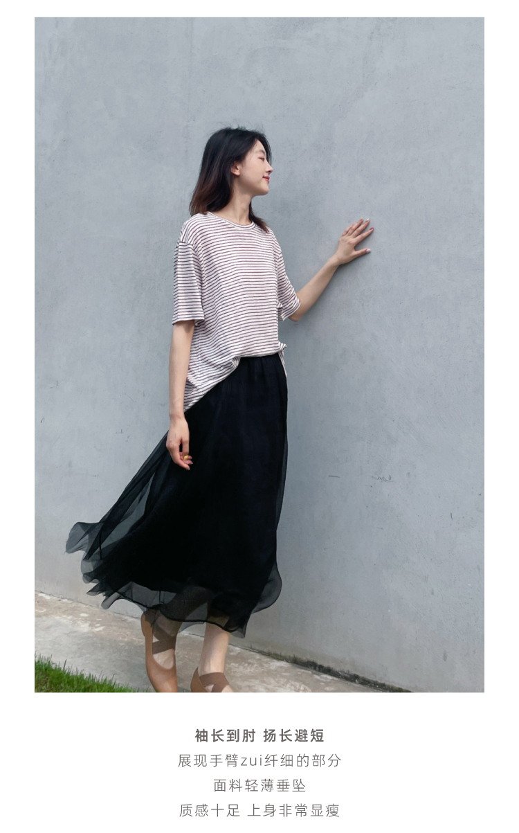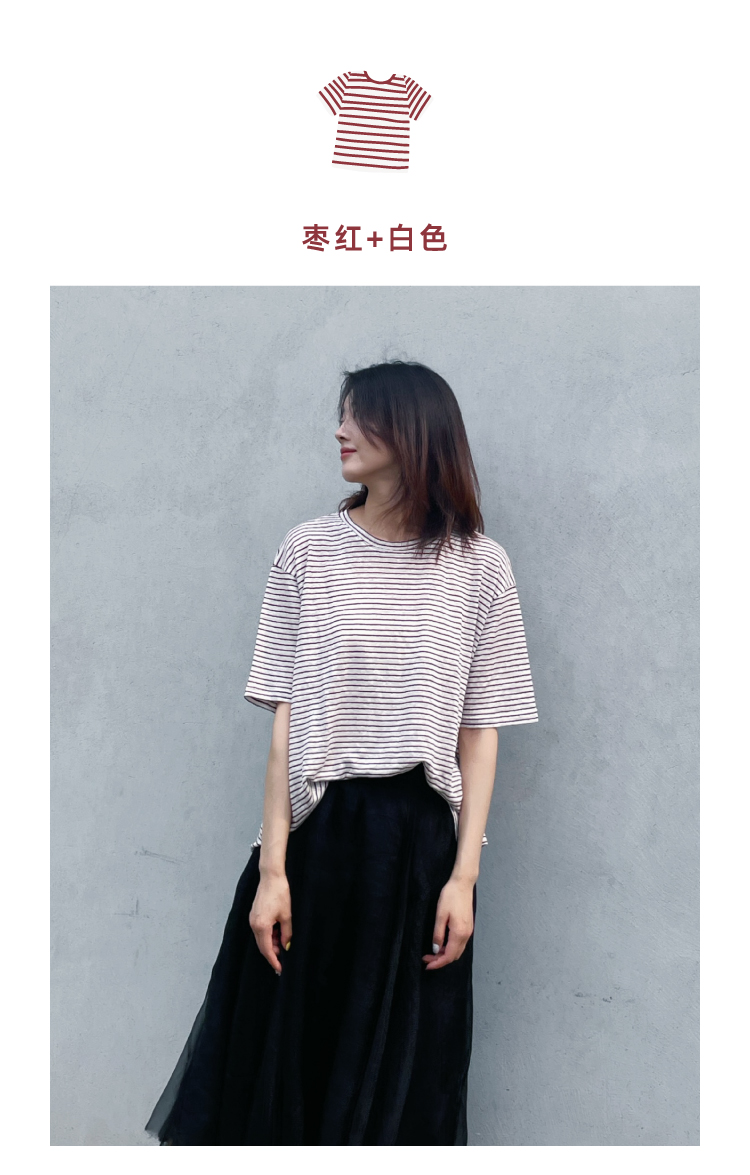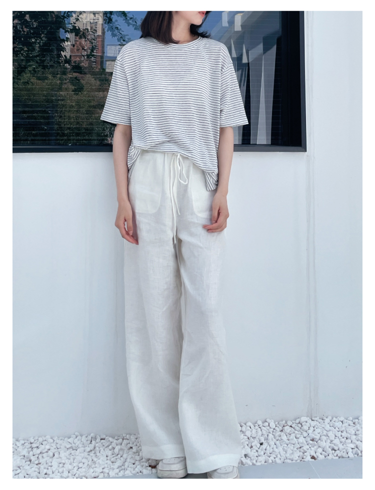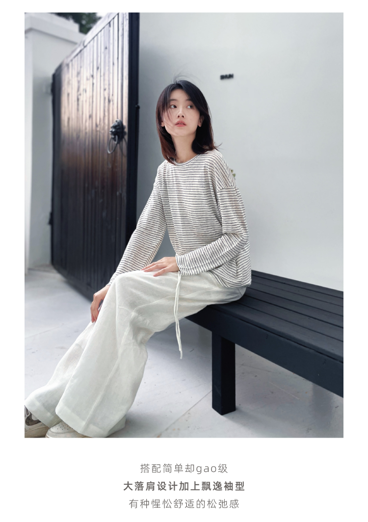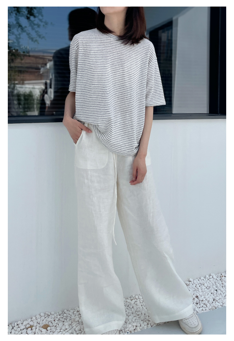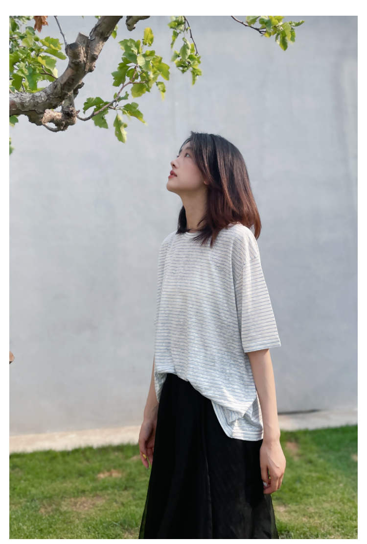 2024SS 圆领亚麻条纹T恤