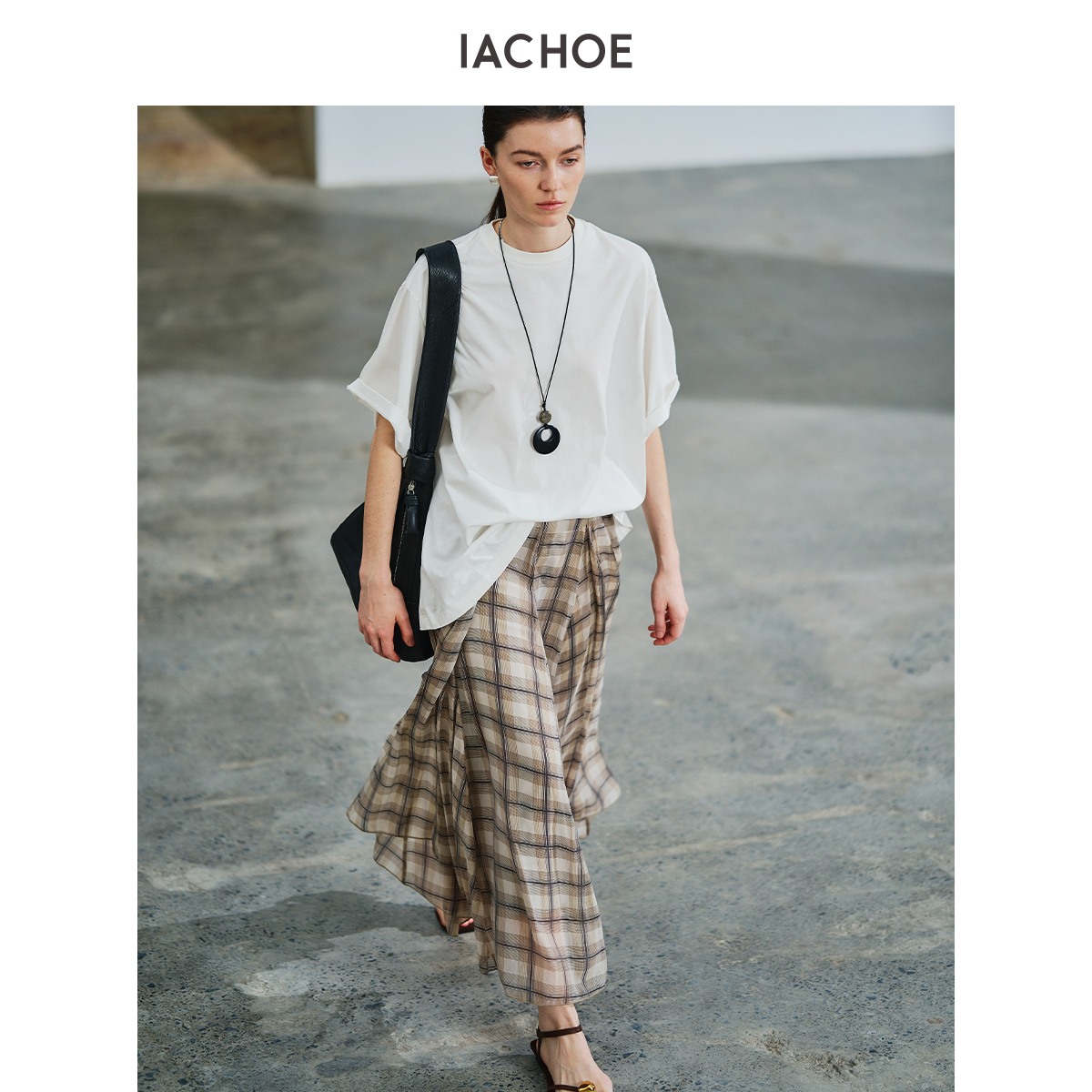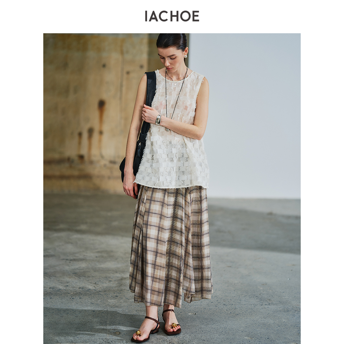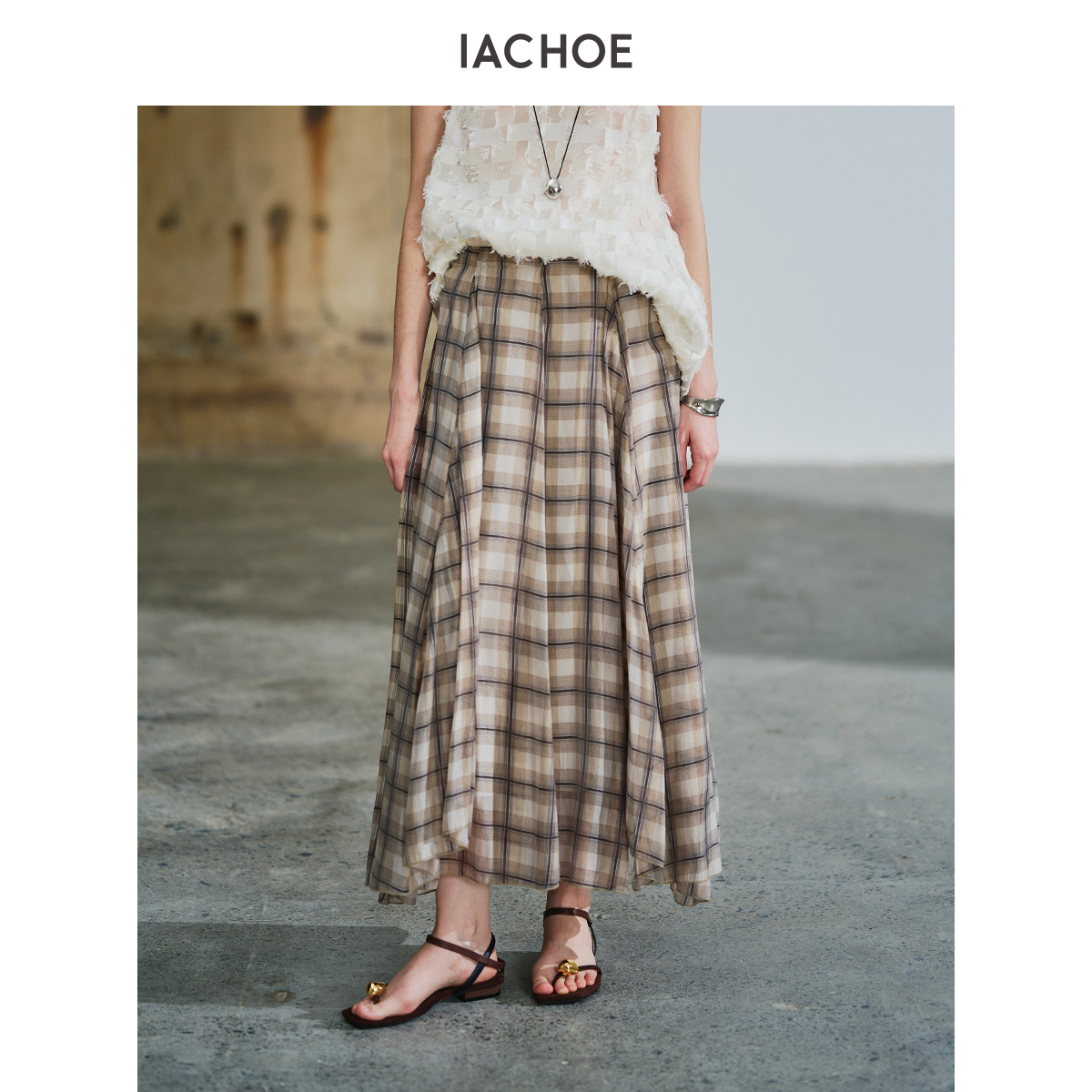棉仓3631517003-IACHOE咖色格纹半身裙